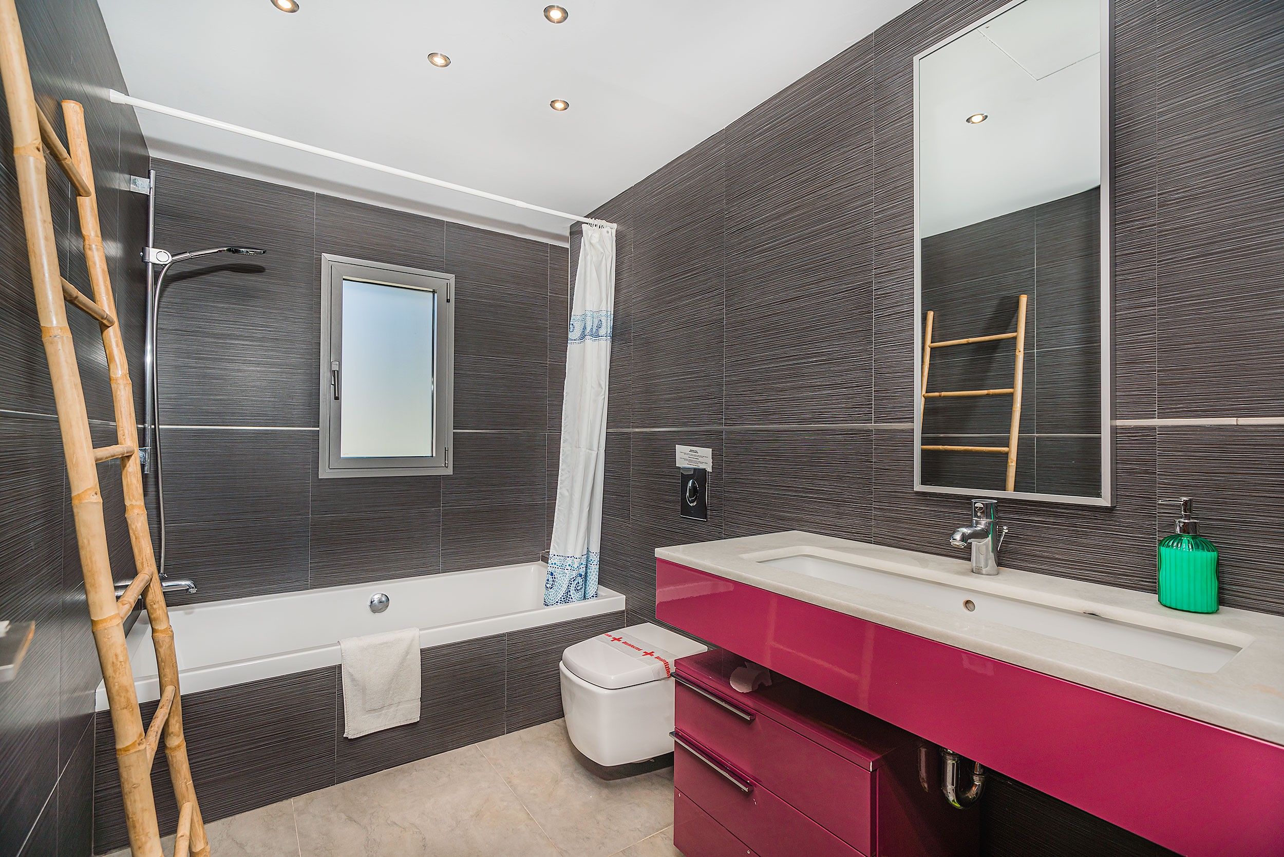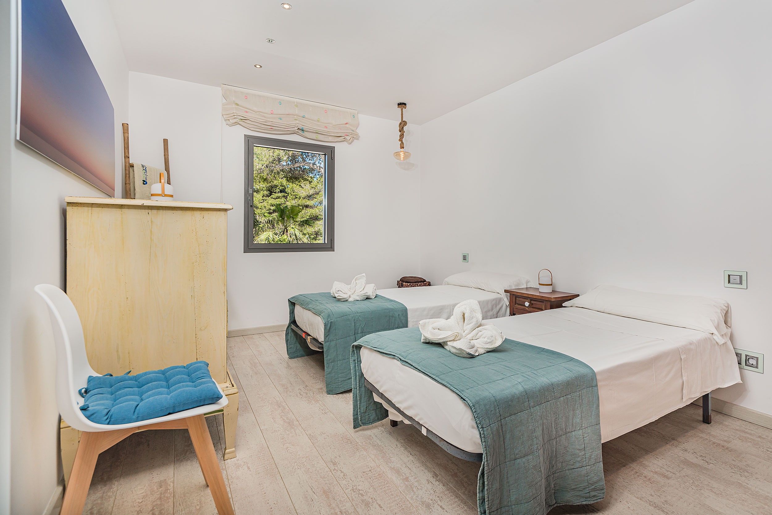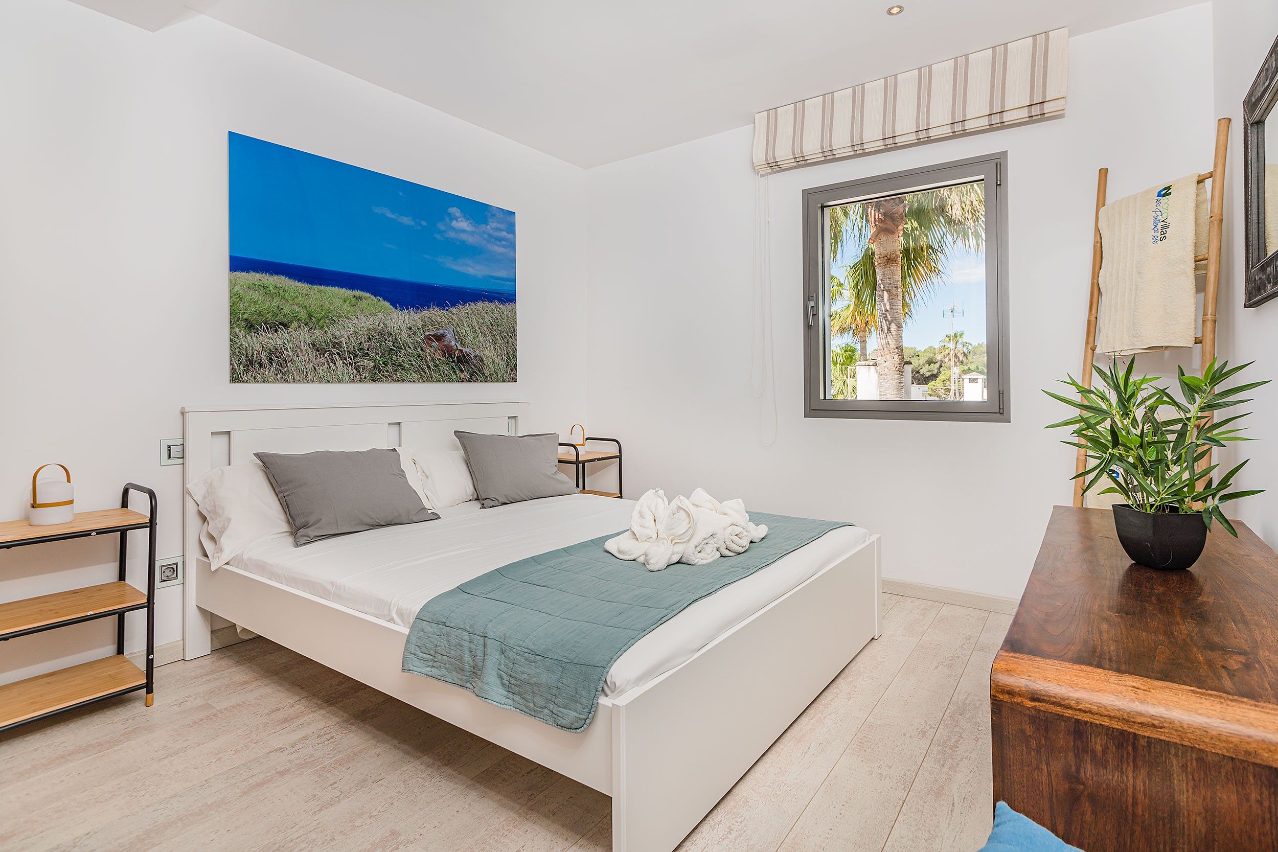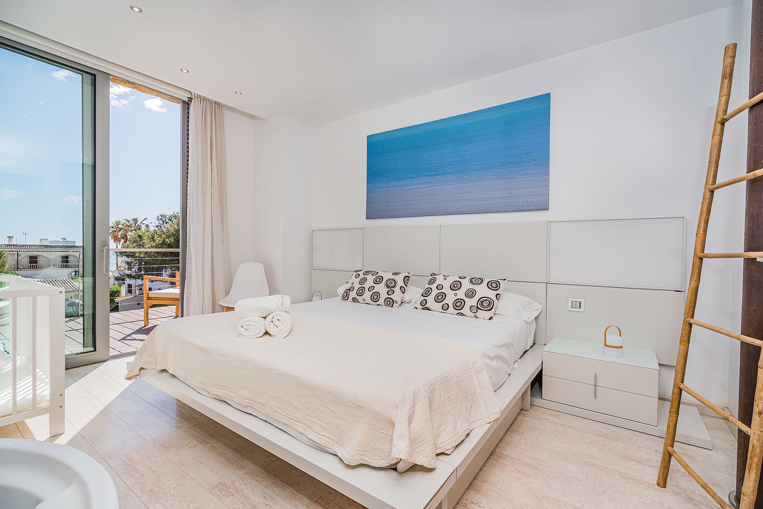 NRA: ETV/134211. 5985 Aquesta moderna vila aparellada es troba a tan sols uns metres d'una de les millors platges de Mallorca, famosa per la seva sorra fina i aigües tranquil·les. La propietat gaudeix de vistes agradables i està envoltada de comoditats com restaurants, bars, un centre mèdic i una parada de bus, tot a poca distància. La vila compta amb una piscina privada que pot ser tancada per garantir la seguretat dels nens petits, així com una zona enjardinada en la part posterior on els més petits poden jugar. Quant a les seves instal·lacions, la vila ofereix un mobiliari modern i d'alta qualitat. A la planta principal, es troba un ampli saló-menjador amb grans finestrals que ofereixen accés directe a la terrassa, que inclou un menjador d'estiu i vistes a la piscina. La cuina, d'estil contemporani, està totalment equipada amb una illa central i una taula addicional, la qual cosa la converteix en un espai funcional i acollidor. A més, en aquesta planta es troba una cambra de bany amb dutxa. A la planta superior es troben els dormitoris, tots amb aire condicionat. El primer dormitori compta amb un llit doble, mentre que el segon té dos llits individuals. Ambdós comparteixen un bany amb banyera i dutxa. L'impressionant dormitori principal és un espai de luxe amb llit doble, bany en suite de concepte obert amb una espectacular banyera rodona de massatges, dutxa i WC. Aquest dormitori també gaudeix d'una terrassa privada amb vistes al mar. La vila també compta amb una esplèndida terrassa en el terrat, equipada amb sofàs, tonones, una taula de menjador i una barbacoa de gas. Des d'aquesta terrassa, es poden gaudir de vistes panoràmiques impressionants, la qual cosa converteix aquest espai en el lloc ideal per relaxar-se i gaudir de l'entorn. Amb totes aquestes característiques, aquesta vila ofereix un refugi exclusiu i confortable, ideal per als qui busquen gaudir de la tranquil·litat i bellesa de Mallorca prop del mar.Comoditats