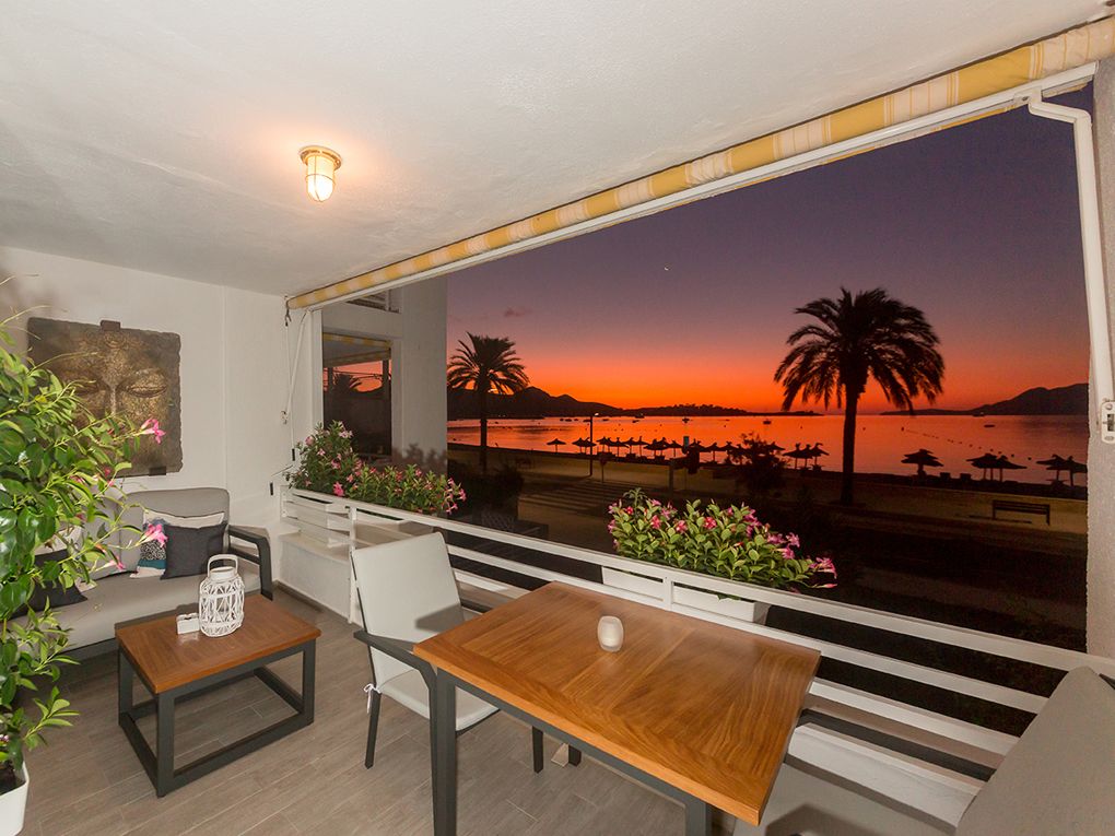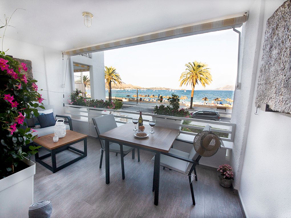 NRA: ETVPL/149996. Preus i disponibilitat: https://www.evholidayvillas.com Ref. 6699 Romàntic apartament enfront de la platja de Port Pollensa. Gaudeix d'espectaculars vistes a la badia, on tant els amaneceres com les posades de sol embelesan a qualsevol des de la seva acollidora terrassa. Decorat amb molt d'afecte i detall, ofereix tot el necessari per a unes vacances perfectes. Compta amb un dormitori doble amb ventilador de sostre i aire condicionat, una neteja amb dutxa, i una moderna cuina totalment equipada. El saló-menjador, també amb aire condicionat, disposa d'un sofà llit i accés directe a la terrassa, que està equipada amb mobles d'exterior per gaudir de les seves relaxants vistes a la platja i el mar. Una petita joia en una ubicació excel·lent, prop de totes les facilitats: platja de sorra, botigues, restaurants, escola de surf i vela, busseig... i a un pas del centre.Comoditats