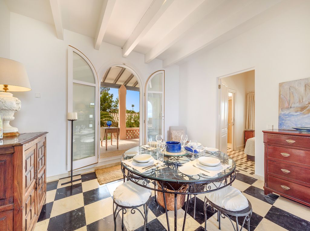 NRA: ETV/133360. Preus i disponibilitat: https://www.evholidayvillas.com Ref. 7231 Aquesta emblemàtica propietat és un autèntic refugi enfront del mar, un habitatge únic que combina bellesa, confort i una ubicació privilegiada. Amb el mar als seus peus i unes vistes impressionants i ininterrompudes de la badia de Pollensa, envoltada per la majestuosa silueta de les muntanyes de Formentor, aquest lloc és un veritable paradís. El seu entorn, excepcional i serè, és ideal tant per als amants dels esports aquàtics com per als qui busquen una retirada relaxant, amb la promesa d'enamorar-se cada dia dels seus paisatges. Reformada i modernitzada en el seu interior, la propietat ha aconseguit mantenir la seva esplendor exterior. Es tracta d'un edifici d'estil colonial tradicional, amb un encantador porxo adornat per elegants arcs i bigues de fusta vista, des d'on les vistes al mar es gaudeixen sense parar. L'habitatge està envoltat d'àmplies terrasses amb balustrades i bells patis, oferint diverses zones per prendre el sol o descansar a l'ombra, mentre es gaudeix del còmode mobiliari exterior i la refrescant brisa marina. La modernització interior ha estat realitzada amb un gust exquisit, incorporant electrodomèstics d'última generació, aixetes d'alta gamma en els banys, aire condicionat integrat i estufes de llenya que garanteixen confort durant tot l'any. El sòl original d'elegants rajoles blanques i negres ha estat conservat, i la seva combinació amb les parets blanques i el mobiliari de disseny crea una atmosfera lluminosa, acollidora i sofisticada. La casa principal compta amb tres dormitoris, dos banys complets, una àmplia cuina, un saló menjador amb estufa de llenya i una televisió. Destaca un espectacular porxo amb vistes al mar, i un altre en la part posterior que alberga un menjador d'estiu amb barbacoa, ideal per gaudir de les agradables nits a l'aire lliure. Anexa a l'habitatge, es troba un apartament independent, perfecte per oferir privacitat als convidats o als qui prefereixen un espai propi. Aquest petit refugi compta amb un dormitori, un bany, una cuina americana, un saló i una terrassa amb accés directe al mar. Sens dubte, aquesta és una propietat d'alta qualitat, en una ubicació immillorable, una llar que convida a viure intensament cada dia amb la mar com a teló de fons.Comoditats