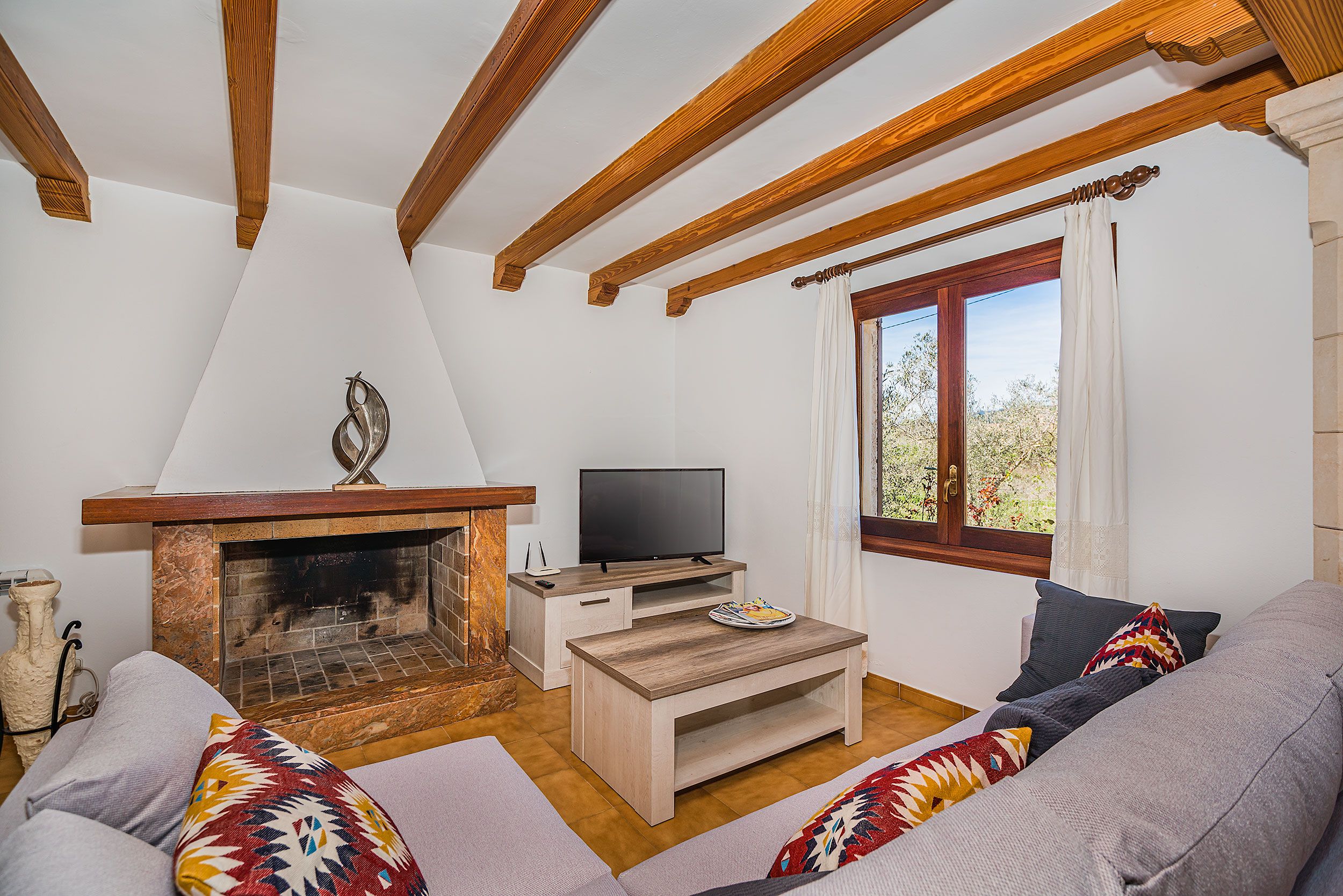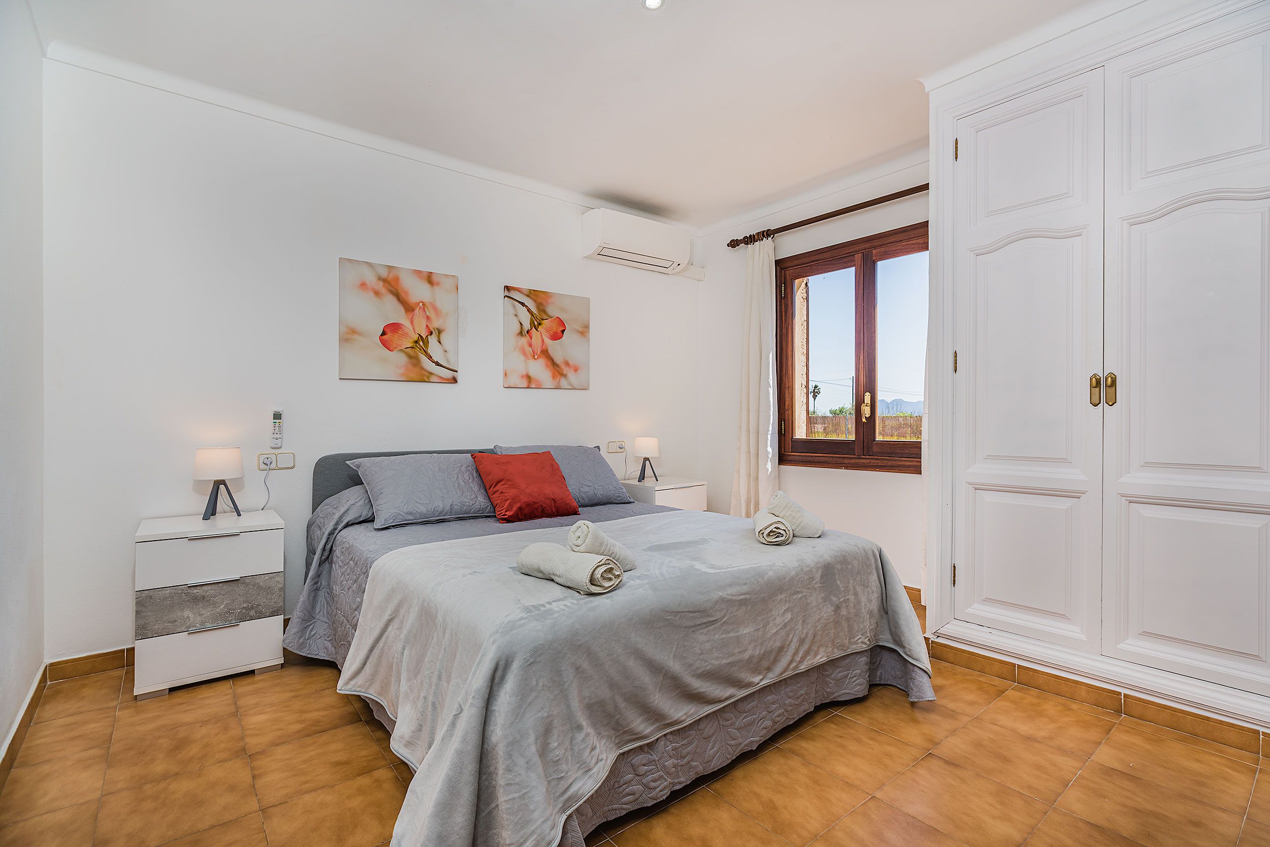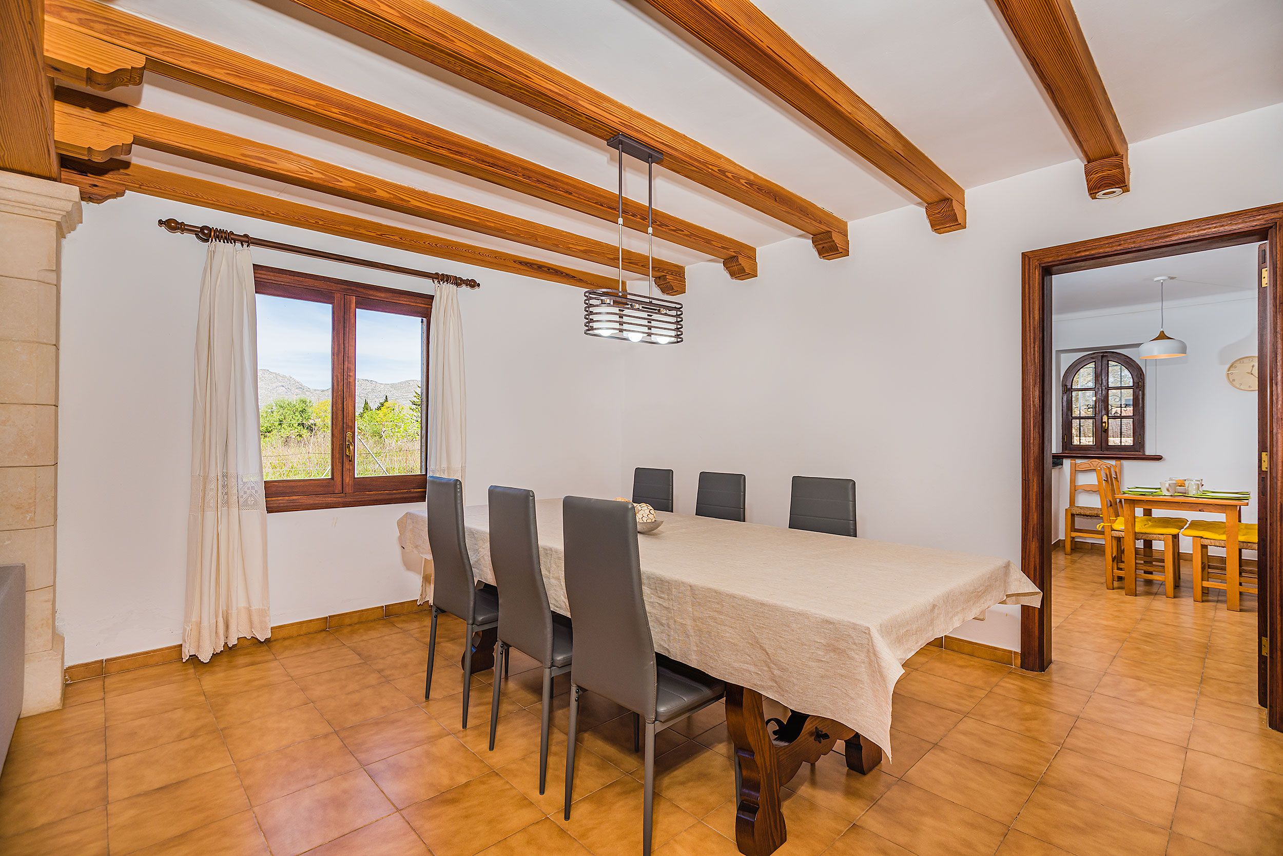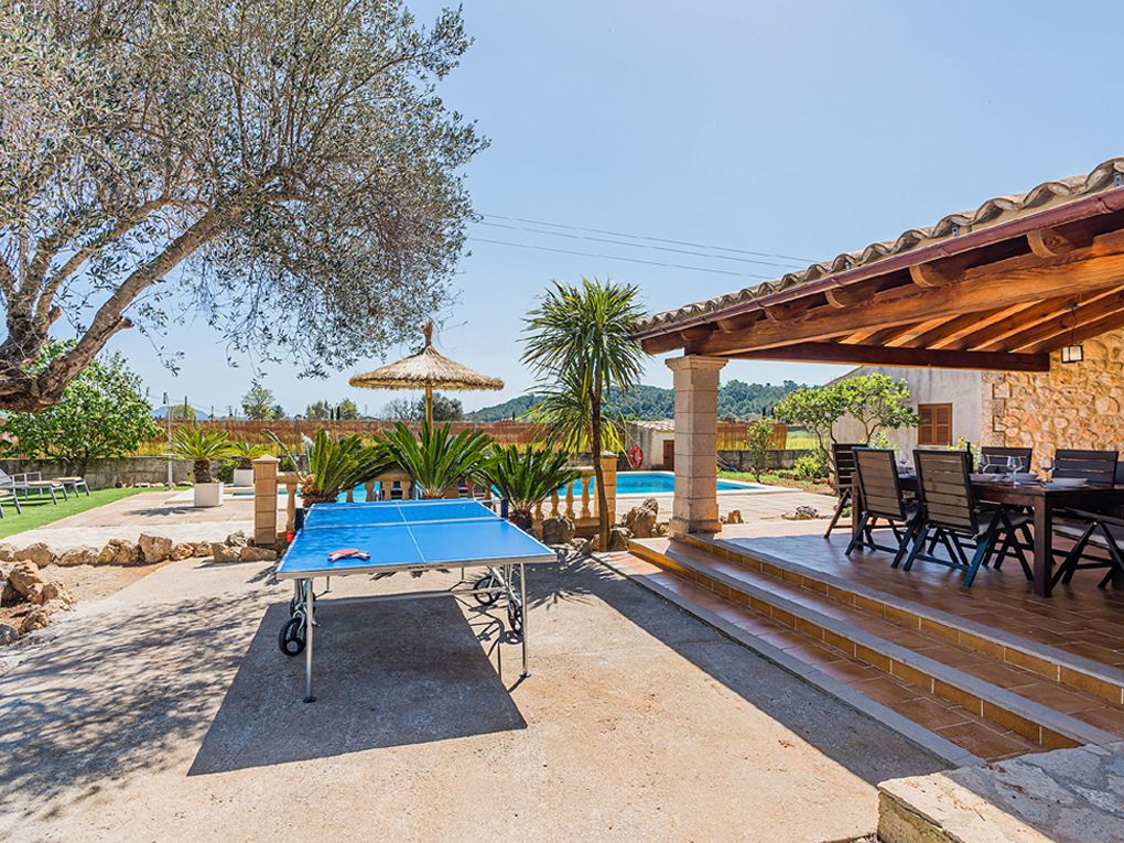 NRA: ETV/13543. 5711 Aquesta tradicional vila campestre es troba en una tranquil·la zona rural, perfectament situada entre Pollensa i Port Pollensa, la qual cosa la converteix en un refugi ideal a tan sols uns minuts en cotxe de les belles platges i del centre de Pollensa, o fins i tot a un passeig amb bicicleta. La seva ubicació permet gaudir de la serenitat del camp sense renunciar a la proximitat de tots els serveis i atractius de la zona. La vila compta amb una encantadora piscina de mosaic, amb elegants graons romans, envoltada per una espaiosa terrassa equipada amb tonnes per gaudir del sol i les vistes. La casa, construïda en una sola planta, presenta la típica façana de pedra mallorquina, amb un porxo frontal adornat amb bigues de fusta vista que aporten un toc rústic i acollidor. L'interior reflecteix un estil mediterrani tradicional, amb una decoració càlida i senzilla, destacant els robustos mobles que brinden un ambient còmode i pràctic. El saló-menjador és ampli i lluminós, amb televisió i DVD per a moments de relaxació. La cuina està completament equipada, compta amb una barra americana i una taula d'esmorzar, la qual cosa la fa ideal per compartir menjars en família. La vila disposa de tres còmodes dormitoris dobles, tots ells amb aire condicionat. Un dels dormitoris compta amb un llit doble, mentre que els altres dos estan equipats amb dos llits individuals cadascun. A més, compta amb dues cambres de bany interiors i una dutxa exterior al costat de la piscina, la qual cosa afegeix comoditat i practicitat per gaudir dels dies assolellats. Per descomptat, no falta el típic menjador d'estiu amb barbacoa, un lloc perfecte per a gaudir d'agradables sopars a l'aire lliure mentre es contempla el paisatge que envolta la propietat. Tot el necessari per a unes vacances relaxades en el camp, envoltat de naturalesa, privacitat i tranquil·litat.Comoditats