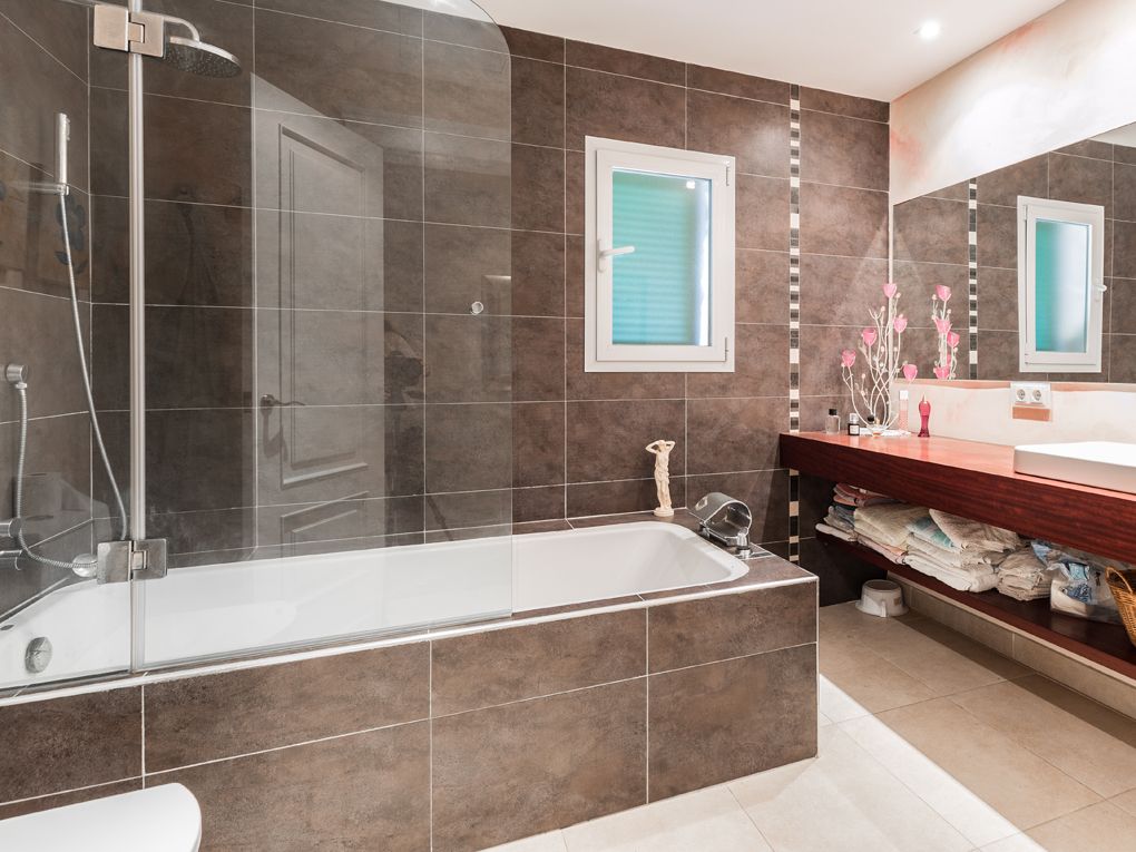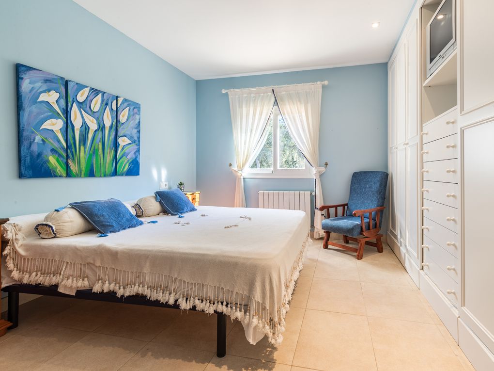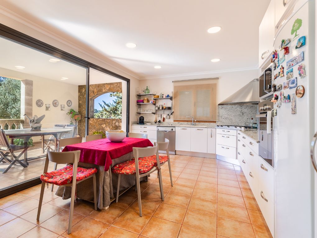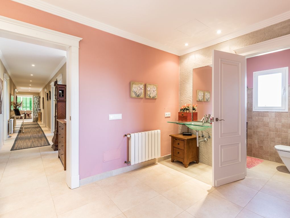 Aquesta atractiva i encantadora casa de camp es distribueix en dues plantes, cadascuna de les quals té un pis amb entrada independent. En total, la finca ofereix vuit dormitoris, sis cambres de bany i dos salons-menjadors, així com dues cuines, que es reparteixen a parts iguals entre els dos pisos. Per tant, cada pis consta de quatre dormitoris, tres banys (dos d'ells en suite), un saló-menjador i una cuina. La terrassa i el jardí amb vista a la piscina i al bell camp són el lloc perfecte per relaxar-se. Característiques addicionals: pou propi, connexió a la xarxa elèctrica, calefacció, aire condicionat, xemeneia, piscina.