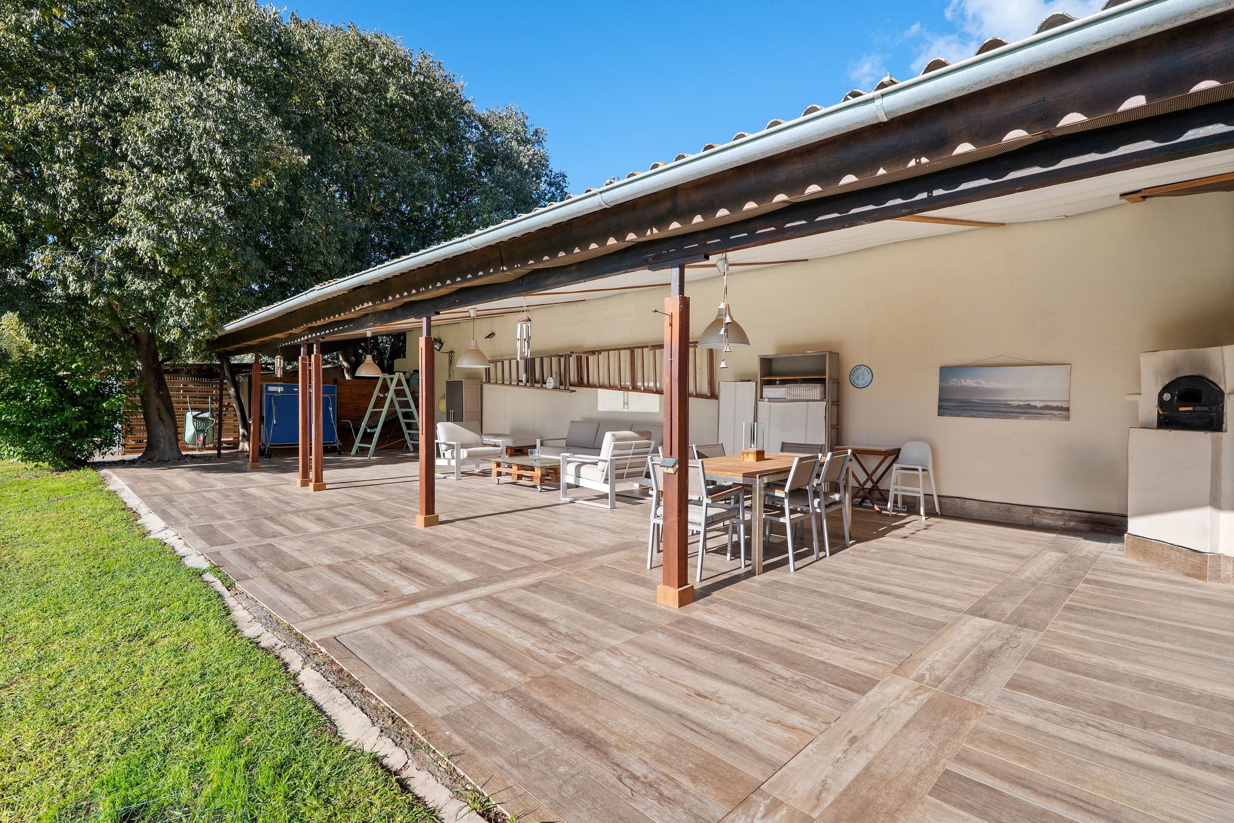 Un dels punts més destacats és la completa zona exterior: una àmplia piscina, una àrea privada de barbacoa i chill-out, jardins molt cures i assolellades terrasses que fan d'aquesta propietat un lloc perfecte per gaudir plenament de la vida mediterrània a l'aire lliure. Així mateix, un annex independent ofereix dues estades addicionals —actualment utilitzades com a dormitori i despatx— juntament amb un bany privat. Al costat d'aquest espai es troba un gimnàs d'ús exclusiu, que aporta un extra de comoditat i luxe.
