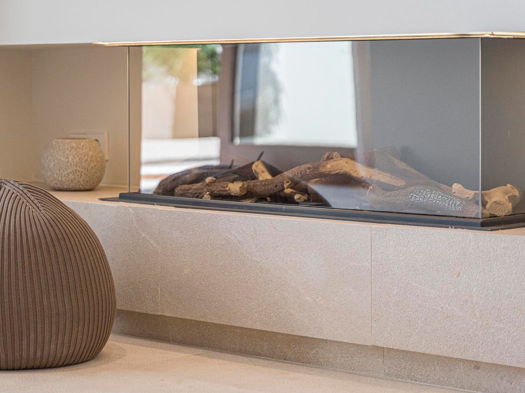 La zona d'estar ofereix una xemeneia per als 65 dies més freds restants, que proporciona comoditat i calidesa.