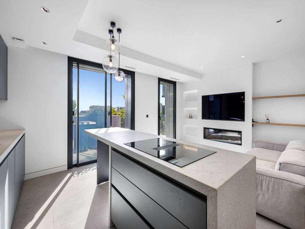 A més de comptar amb tecnologia moderna com el sistema de casa intel·ligent, s'ha posat especial èmfasi a utilitzar materials de la més alta qualitat. Les finestres de paret a paret, que van del saló al balcó privat orientat al sud, ofereixen vistes al jardí comunitari i permeten que la llum natural inundi els espais. Des d'aquí també es pot gaudir de vistes al mar.