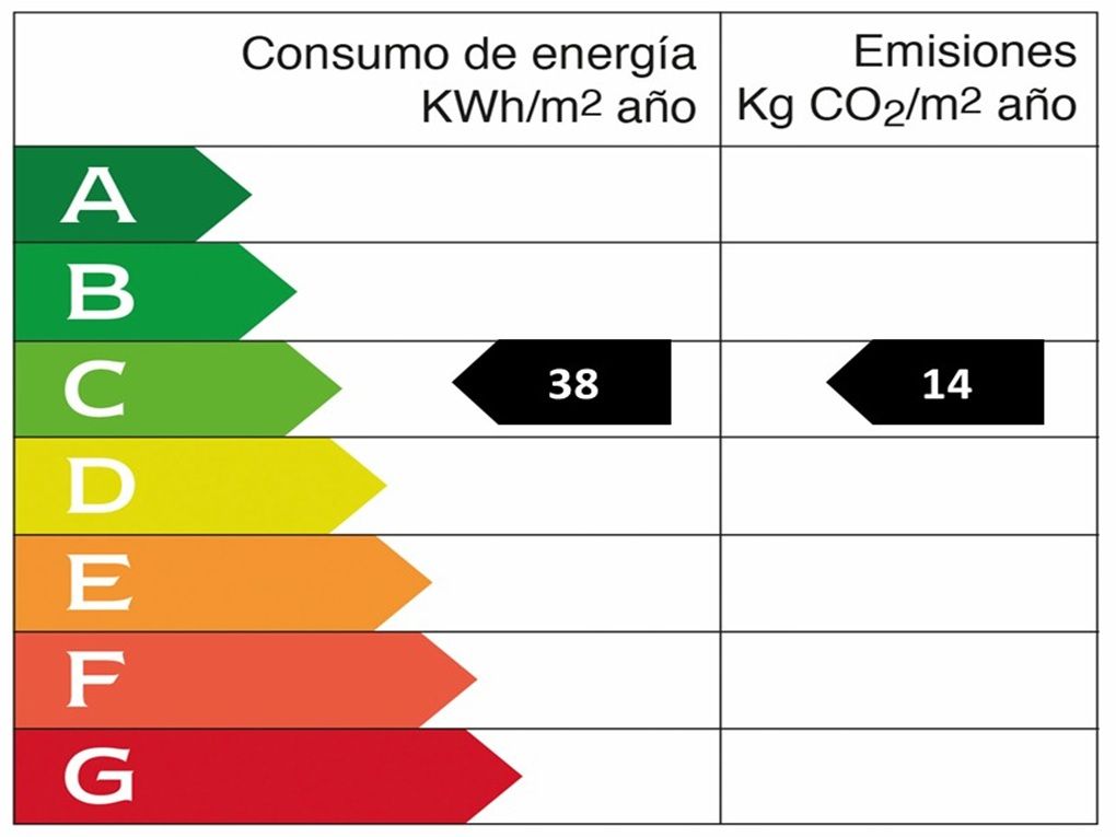 Any de construcció: 1400 • Valor de consum energètic: 37.73 kWh/(m2*a) • Emissions CO2: 14.3 kg/m2 • Escala de Emissions de CO2: C • Tipus de calefacció: Bomba de calor • Classe d'eficiència energètica: C