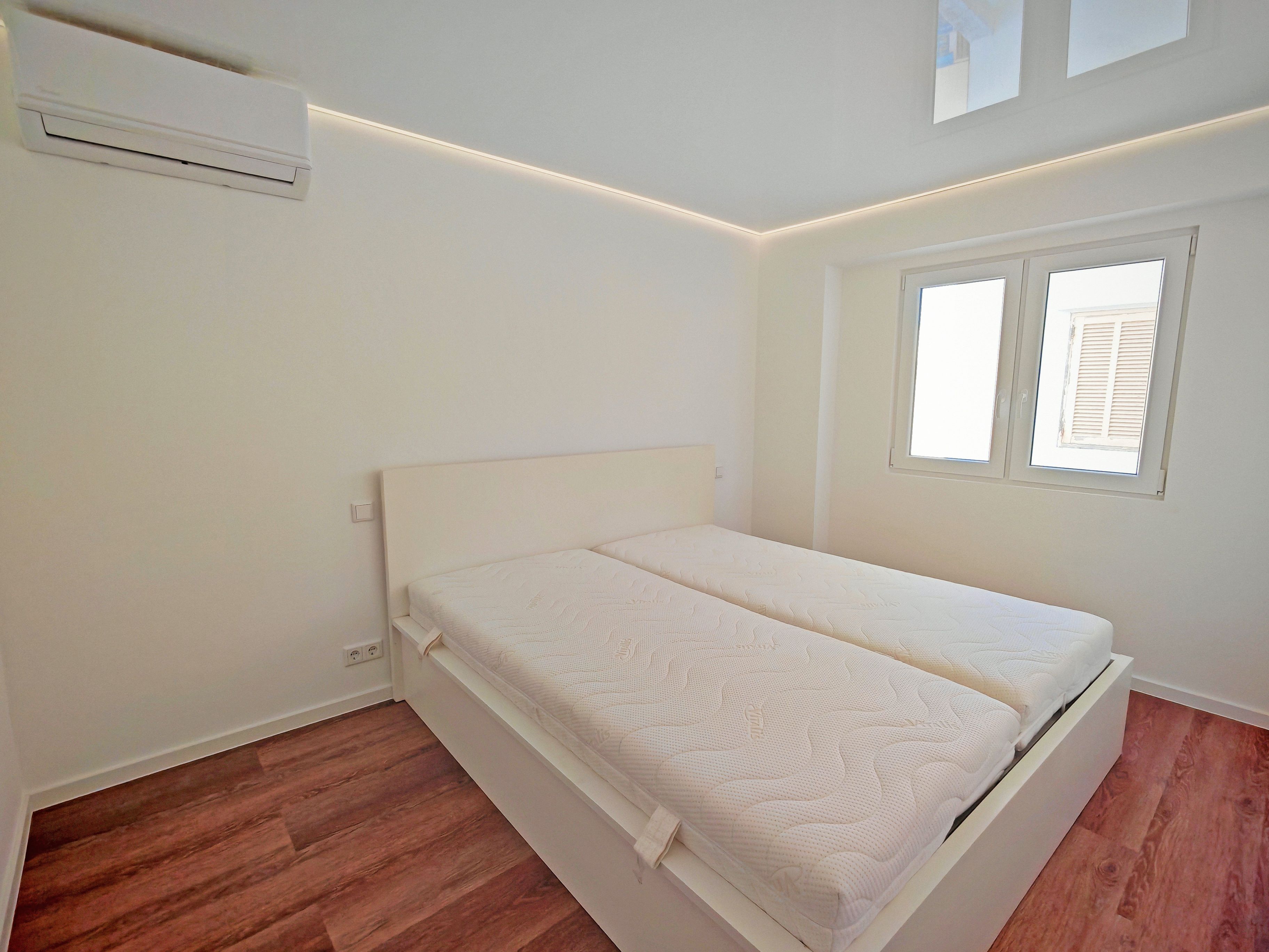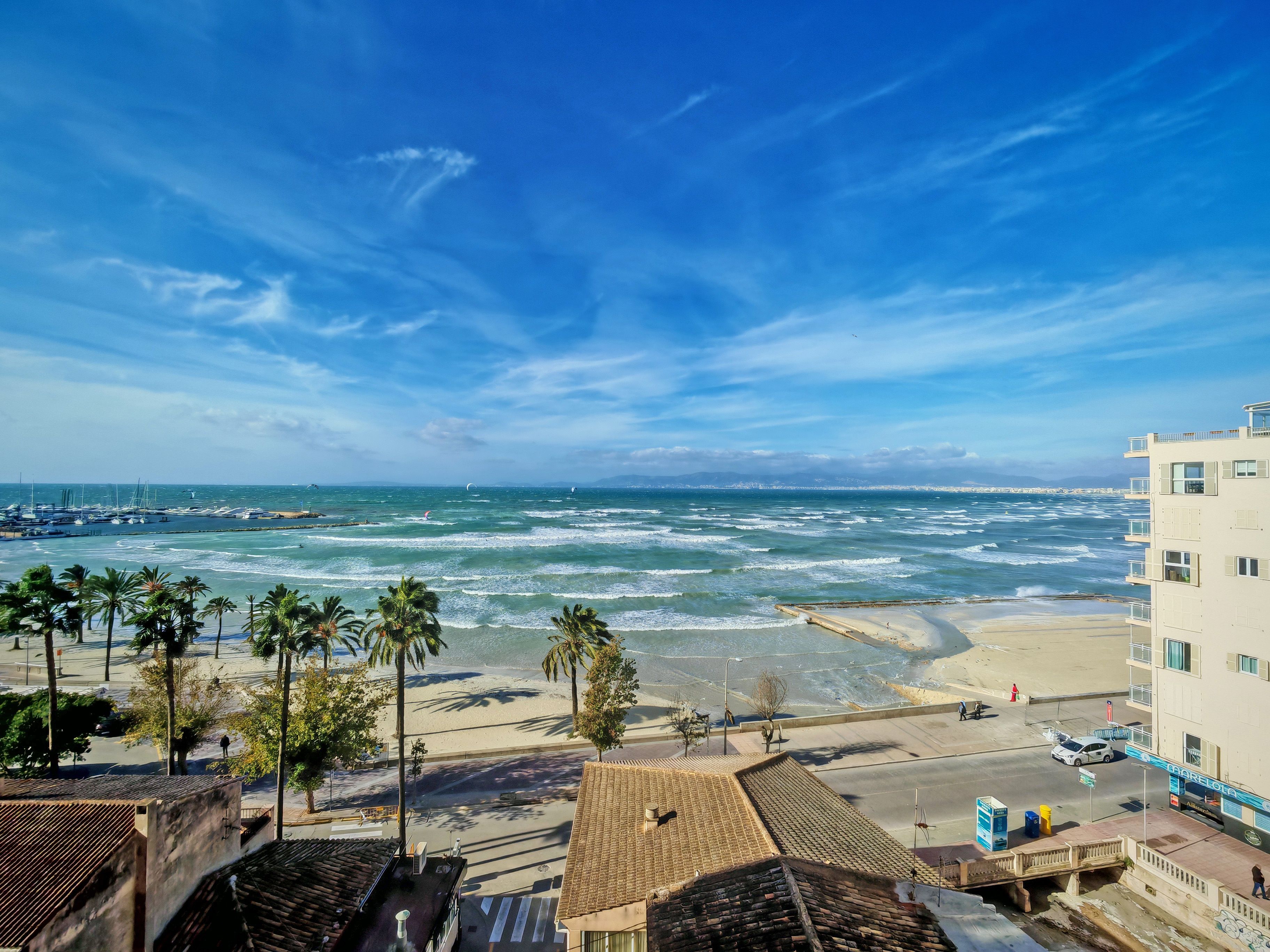 Aquest acollidor apartament, situat a tan sols 100 metres de la platja, es troba en la setena planta d'un edifici amb ascensor i únicament dos veïns per planta, la qual cosa garanteix tranquil·litat i privacitat. Encara que l'edifici és de 1970, l'habitatge va ser totalment reformat en 2025, oferint un estil modern i funcional. El pis compta amb dos dormitoris, dos banys complets amb dutxa, un vestidor i un lluminós saló-menjador amb cuina integrada. Al costat de la cuina es troba un petit racó destinat a col·laduria. El balcó envidrat permet gaudir d'unes vistes precioses al Club Nàutic de l'Arenal, la platja i el mar. Entre les seves característiques addicionals destaquen l'aire condicionat per split, finestres d'alumini amb Climalit, il·luminació LED encastada en totes les estades i un fals sostre amb efecte mirall que aporta amplitud i un toc contemporani. Un habitatge reformat amb gust, lluminós i perfectament ubicat per gaudir del mar a un pas.