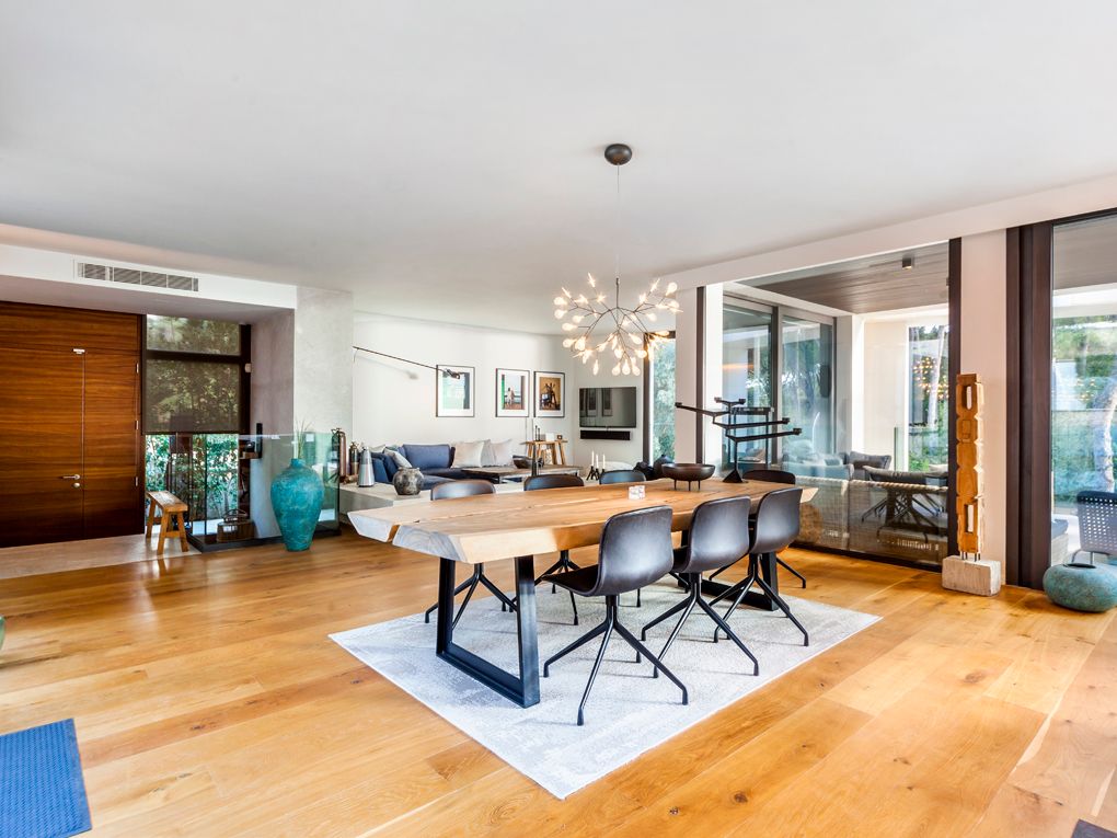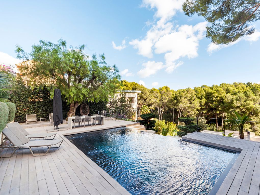 Aquesta vila bellament presentada, amb vista al mar i situada al centre de Portals Nous, ofereix un estil de vida excepcional a només 30 segons de la platja de sorra de Port Portals. La propietat compta amb àrees d'estar lluminoses i espaioses de planta oberta amb accés a múltiples terrasses, perfectes per gaudir de l'estil de vida a l'aire lliure de Mallorca. Inclou cinc dormitoris en suite, un ampli dormitori principal amb vestidor i una piscina infinita ideal per relaxar-se en els càlids dies d'estiu. La propietat també ofereix un garatge per a un cotxe i estacionament addicional per a dos vehicles més. Per a la seva comoditat, la vila està equipada amb sòls de pedra i fusta, calefacció per sòl radiant, aire condicionat i una acollidora xemeneia. Situada a poca distància a peu de les comoditats del poble de Portals Nous i de la marina de Port Portals, aquesta ubicació és perfecta tant per a famílies residents com per a vacacionistes. Si us plau, contáctenos per a obtenir més informació i concertar una visita.