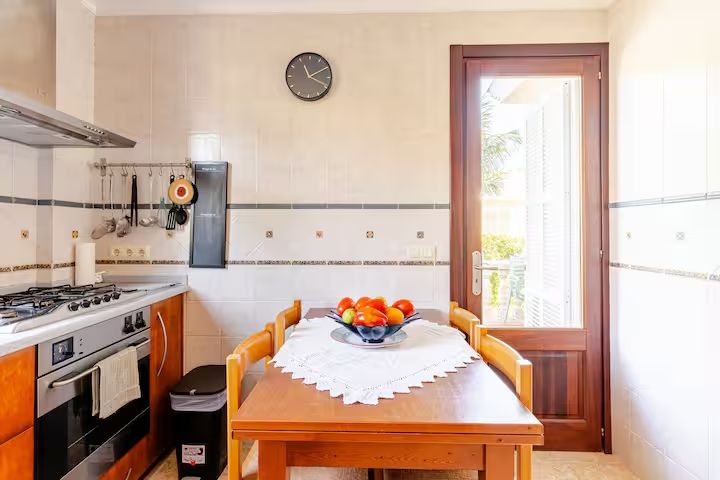 Situada en una tranquil·la i acurada urbanització de Platja de Muro, aquesta elegant casa aparellada ofereix l'equilibri perfecte entre privacitat, confort i proximitat a una de les millors platges de sorra blanca de Mallorca, coneguda pels seus extensos trams verges i aigües cristal·lines.