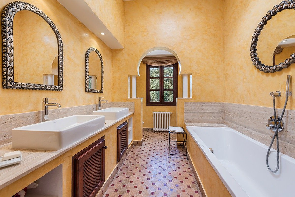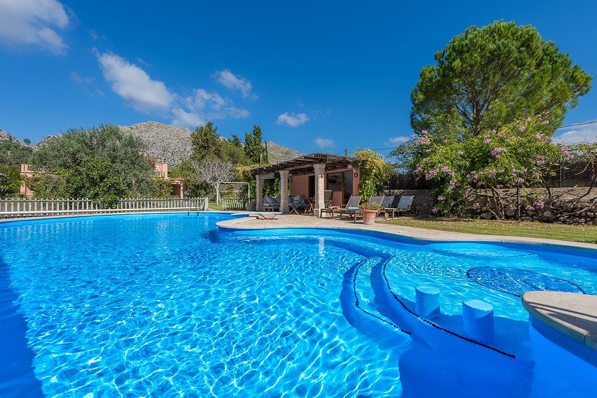 Estupenda casa de camp amb piscina climatitzada ubicada a la cobejada zona de Ternelles, Pollença. La propietat, que es troba a tan sols 5 minuts a peu del entranyable poble, disposa d'estupendes vistes de la Serra de Tramuntana a més d'un bonic jardí ben cuidat i una piscina climatitzada de bona grandària. En la propietat també trobem una casa de convidats, ideal per a tot aquell hoste que desitja una mica més de privacitat. La casa principal disposa d'un total de sis habitacions i sis banys, distribuïts per les seves dues plantes. A la planta superior trobem l'enorme habitació mestra, que disposa d'oficina pròpia a més de terrassa exterior, on s'observen les millors vistes de les muntanyes i del poble de Pollença. A la planta baixa trobem un gran saló amb xemeneia de llenya i accés a la terrassa coberta i preciós jardí. Una cuina independent de gran grandària i estil rústic que no sacrifica les comoditats de l'era moderna com ara la barra americana, que integra a la perfecció. I un segon saló menjador habilitat com a zona recreativa. Tota la casa disposa de calefacció central a més de les seves xemeneies de llenya, així que pot ser utilitzada durant l'any sencer. En definitiva, una excel·lent propietat que disposa de tot allò que es podria demanar en una casa de camp d'estil tradicional, més interessant fins i tot pel fet d'estar a tan poca distància del poble, ideal per a famílies amb nens que vulguin tenir total llibertat.
