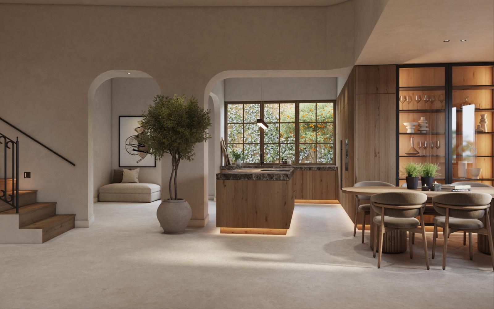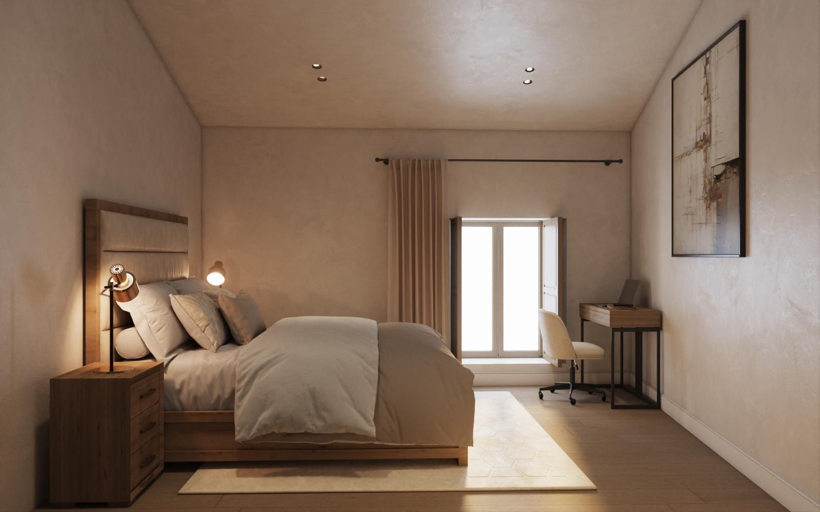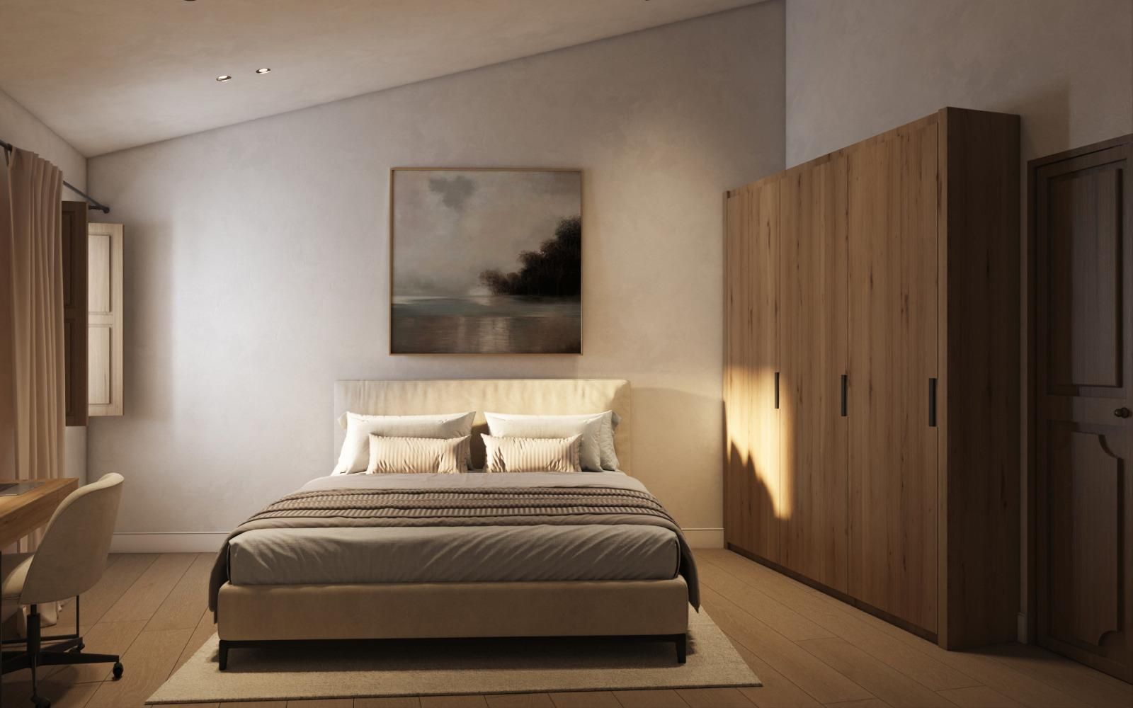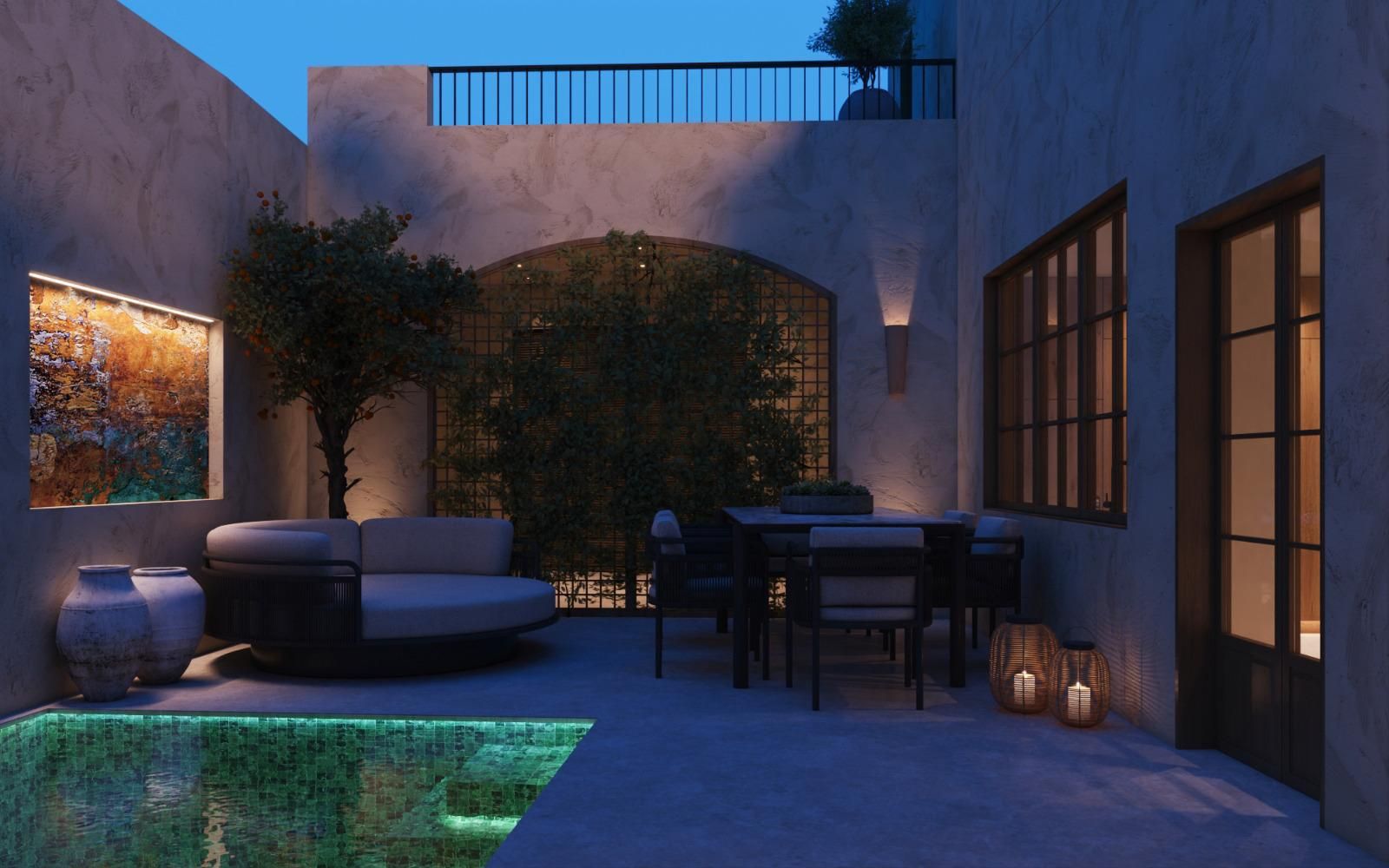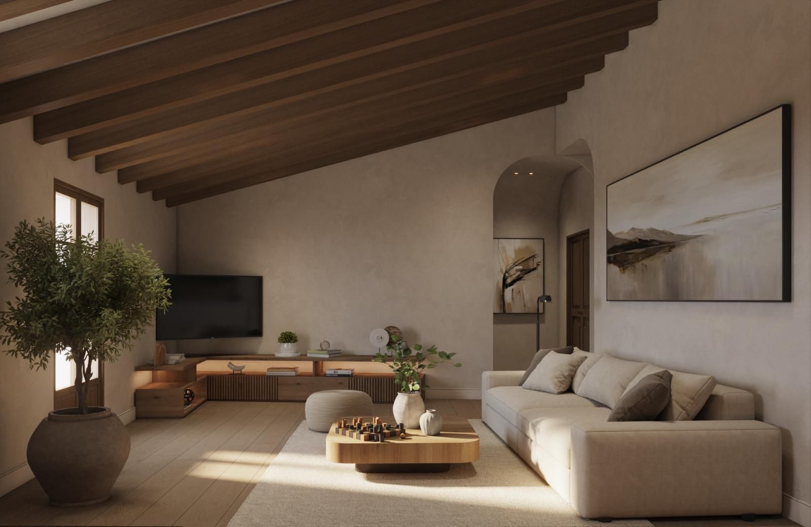 Aquesta espaiosa casa de poble està sent reformada actualment i es troba a pocs metres de la Plaça d'Espanya a Felanitx. La finalització està prevista per a finals de 2025. El promotor actual ha sabut combinar materials d'última generació amb l'entorn rural, atorgant a l'habitatge un aspecte espectacular. En la restauració de la casa s'han utilitzat materials nobles. A la planta baixa, s'accedeix a un espai obert que alberga un ampli i lluminós saló, amb la cuina com a centre de l'habitatge. A més, hi ha un despatx (o possible dormitori), un dormitori amb bany en suite i un pràctic celler. A la planta superior es troba un altre saló, que dóna accés a dos dormitoris amb bany compartit, així com a la suite principal amb vestidor, bany en suite i una bonica terrassa. Des d'aquest saló també s'accedeix a una altra terrassa. Al pati interior, es troba la piscina amb una zona chill-out contigua, així com un garatge per a un vehicle. La calefacció per sòl radiant en tota la casa amb tecnologia infraroja i l'aire condicionat fan d'aquesta propietat el lloc ideal per gaudir de la vida urbana, estant al mateix temps prop de les platges i cales més boniques durant tot l'any.