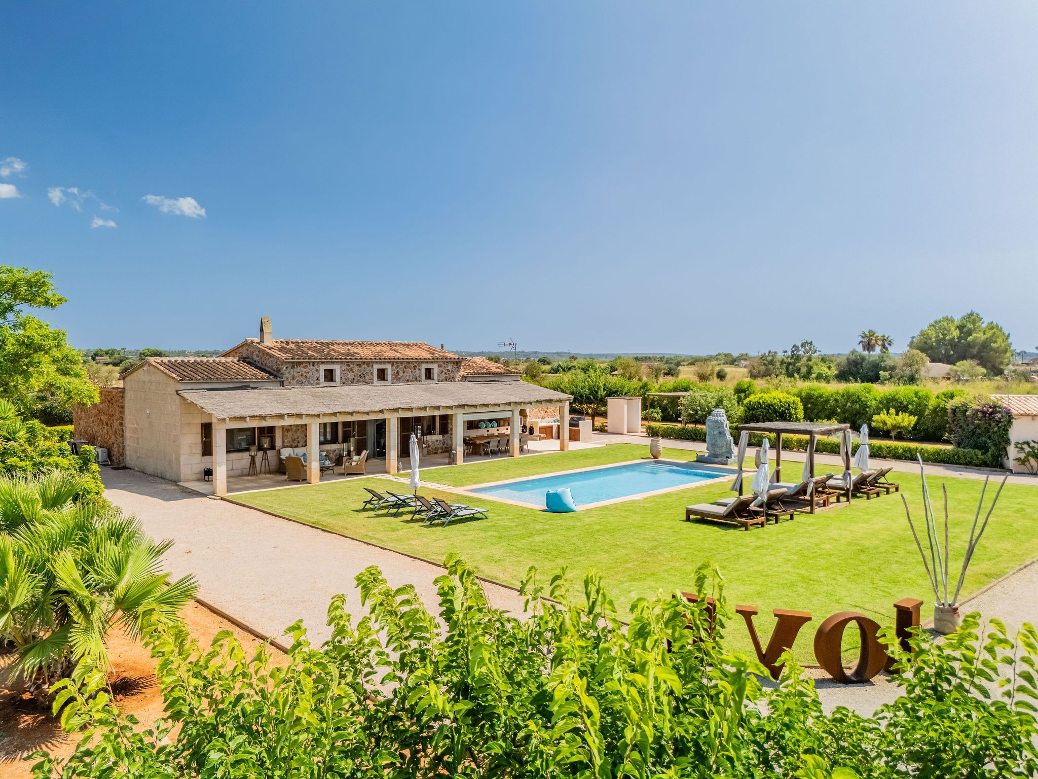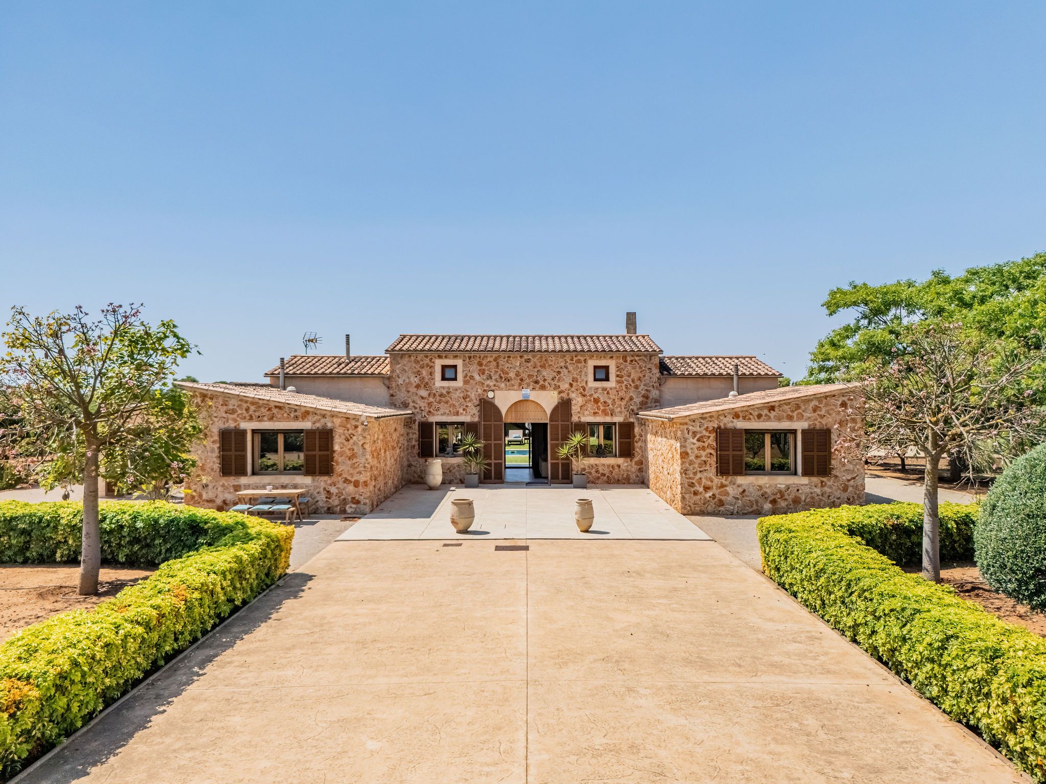 Enmig d'un entorn rural i a només uns minuts de la impressionant platja natural Es Trenc, es troba aquesta encantadora finca de pedra natural en una parcel·la de 14.720 m2. La casa està construïda completament en un sol nivell i, per tant, és accessible. El cor de la casa no només és la terrassa coberta, sinó també l'ampli saló-menjador amb una acollidora xemeneia i una cuina adjacent de disseny obert. Una sala de bugaderia separada complementa l'espai. En total, hi ha quatre dormitoris i dos banys moderns disponibles. L'àrea exterior és un veritable atractiu: a més d'una àmplia terrassa i un jardí acuradament dissenyat amb una piscina de 60 m2, hi ha una cuina exterior completament equipada amb una graella Weber d'alta qualitat. Un cobert per a cotxes ofereix espai per a tres vehicles. La casa s'escalfa mitjançant una calefacció infraroja energèticament eficient, i un modern sistema d'aire condicionat garanteix temperatures agradables en qualsevol època de l'any. El sistema de panells solars instal·lat no sols redueix els costos energètics en curs, sinó que també dóna suport a un concepte d'habitatge sostenible. La propietat està connectada a la xarxa d'aigua municipal. La casa està decorada amb bon gust i està llesta per mudar-se immediatament, ideal com a residència de vacances o per a ús durant tot l'any. La proximitat a la platja natural És Trenc, amb les seves aigües turqueses i la seva fina sorra blanca, fa que aquesta propietat sigui especialment atractiva. Al mateix temps, es gaudeix de la proximitat al port esportiu de Sa Ràpita i a l'encantador poble de Campos, amb la seva connexió ideal a l'aeroport i a Palma, tot això enmig de l'autenticitat de la vida rural mallorquina. Aquesta bella casa de camp combina l'encant tradicional amb tecnologia moderna i equipament d'alta qualitat. Un lloc per a arribar, relaxar-se i sentir-se bé, enmig de la naturalesa i, no obstant això, perfectament connectat.