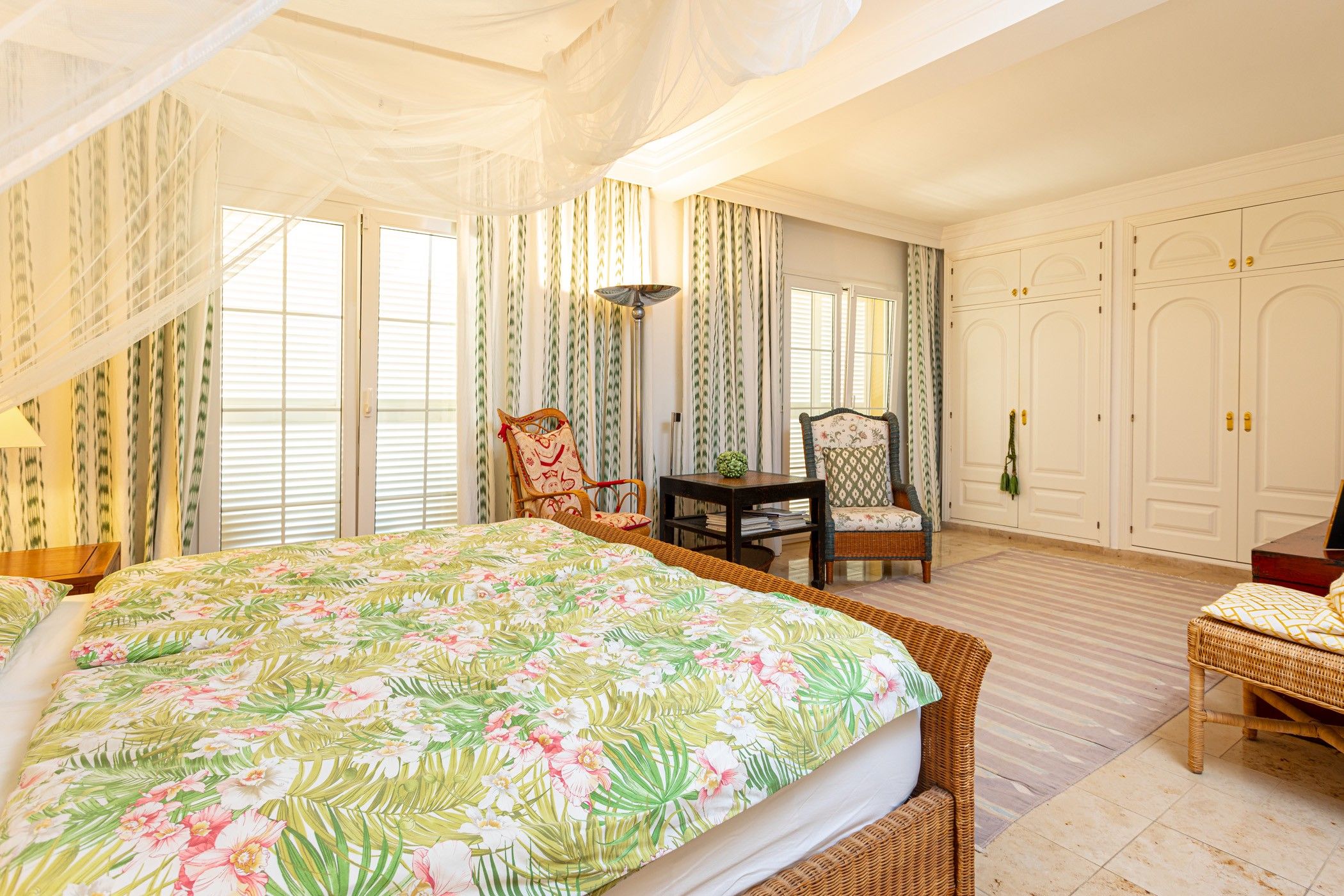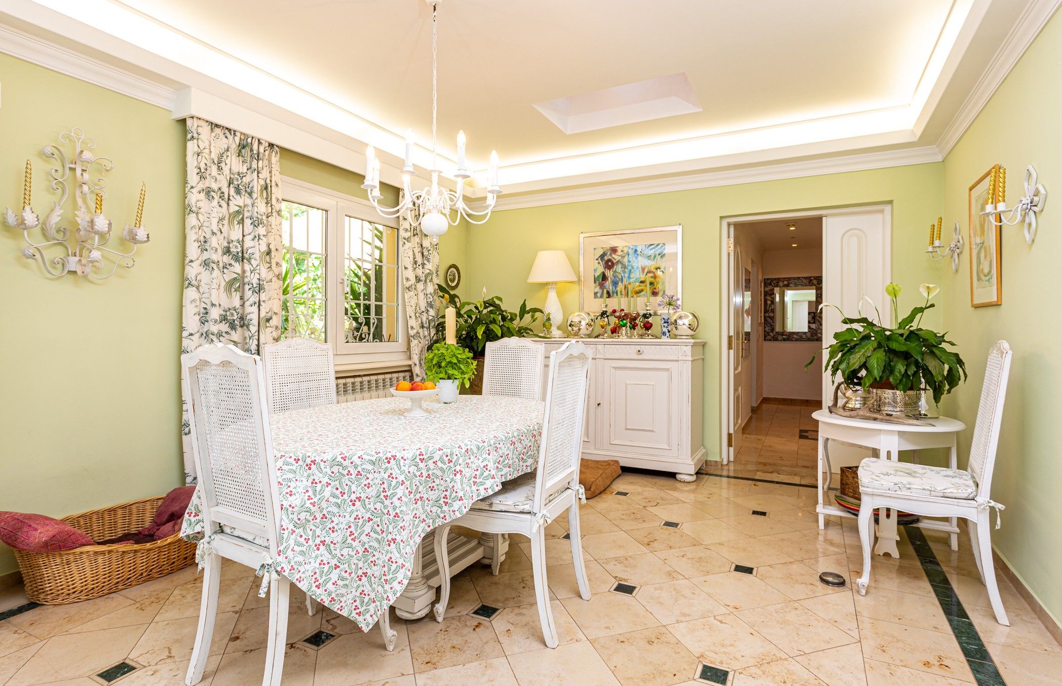 A la planta baixa, la casa disposa d'un ampli saló-menjador amb xemeneia, dos dormitoris —cadascun amb bany en suite—, una cuina completament equipada i una pràctica bugaderia. A la planta superior es troba el dormitori principal, que compta amb la seva pròpia terrassa, vestidor i un bany tipus spa. També hi ha un altre dormitori amb bany en suite i una acollidora terrassa.