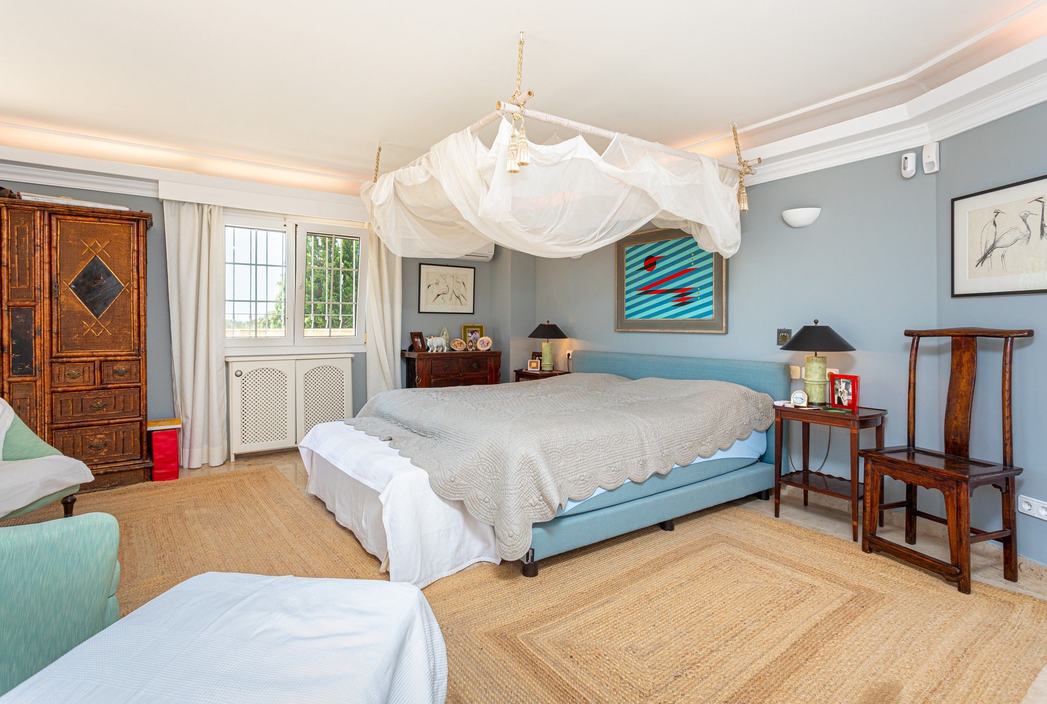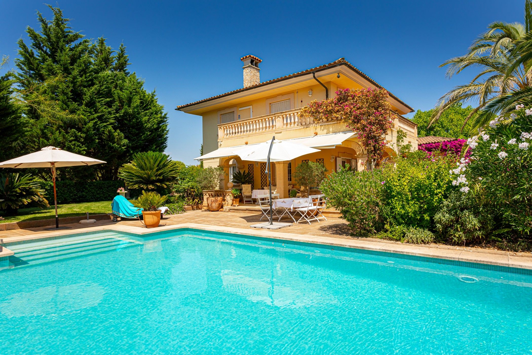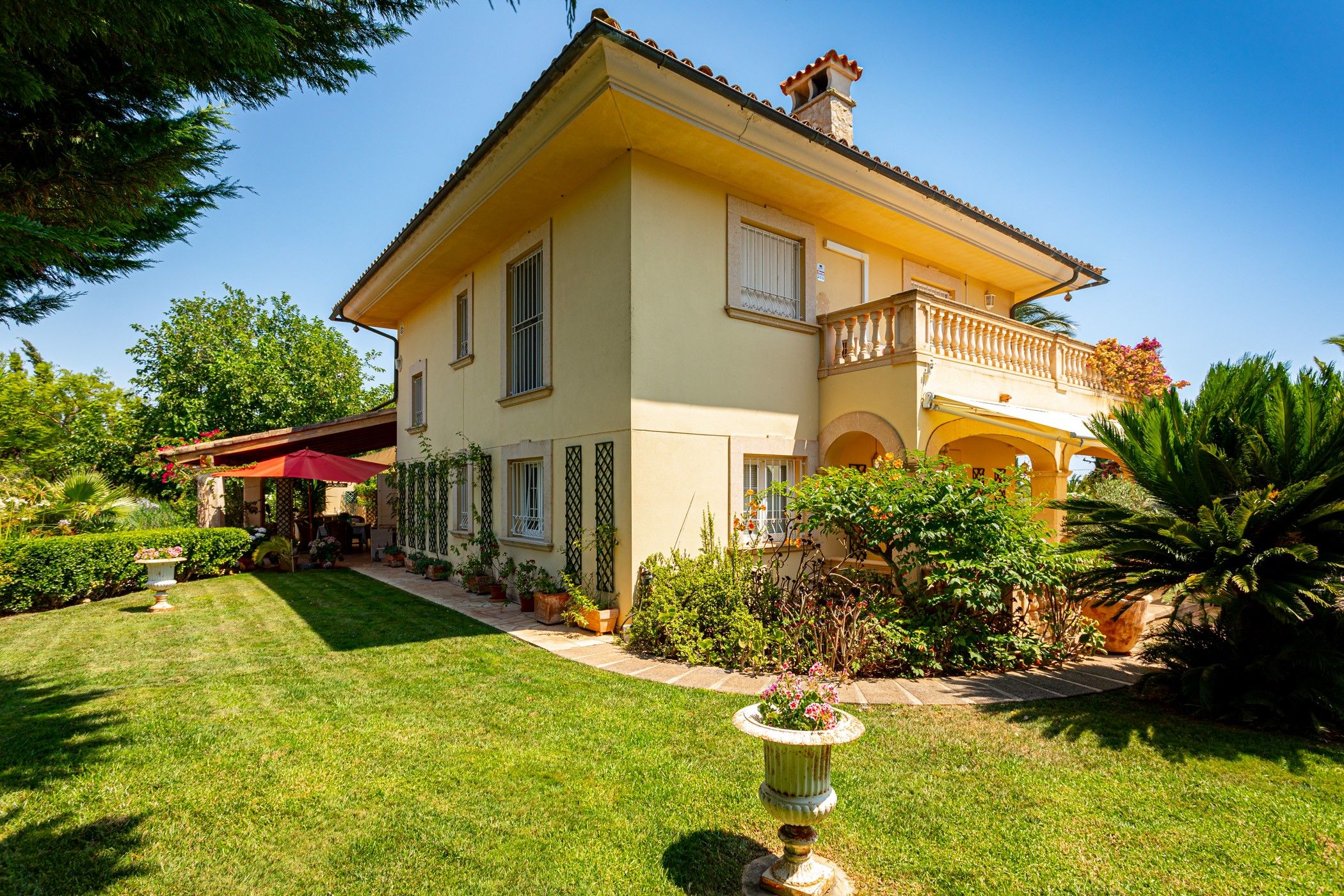 El jardí, completament consolidat, ha estat dissenyat amb molta cura i es rega mitjançant un sistema automàtic alimentat per dos aljubs d'uns 80 m3 cadascun. Aquests s'omplen tant amb aigua d'un pou privat com de la xarxa pública. Per a una major comoditat durant tot l'any, la casa compta amb calefacció central de gas, sòl radiant en diverses estades, aire condicionat, sistema d'alarma modern i connexió a la xarxa elèctrica.