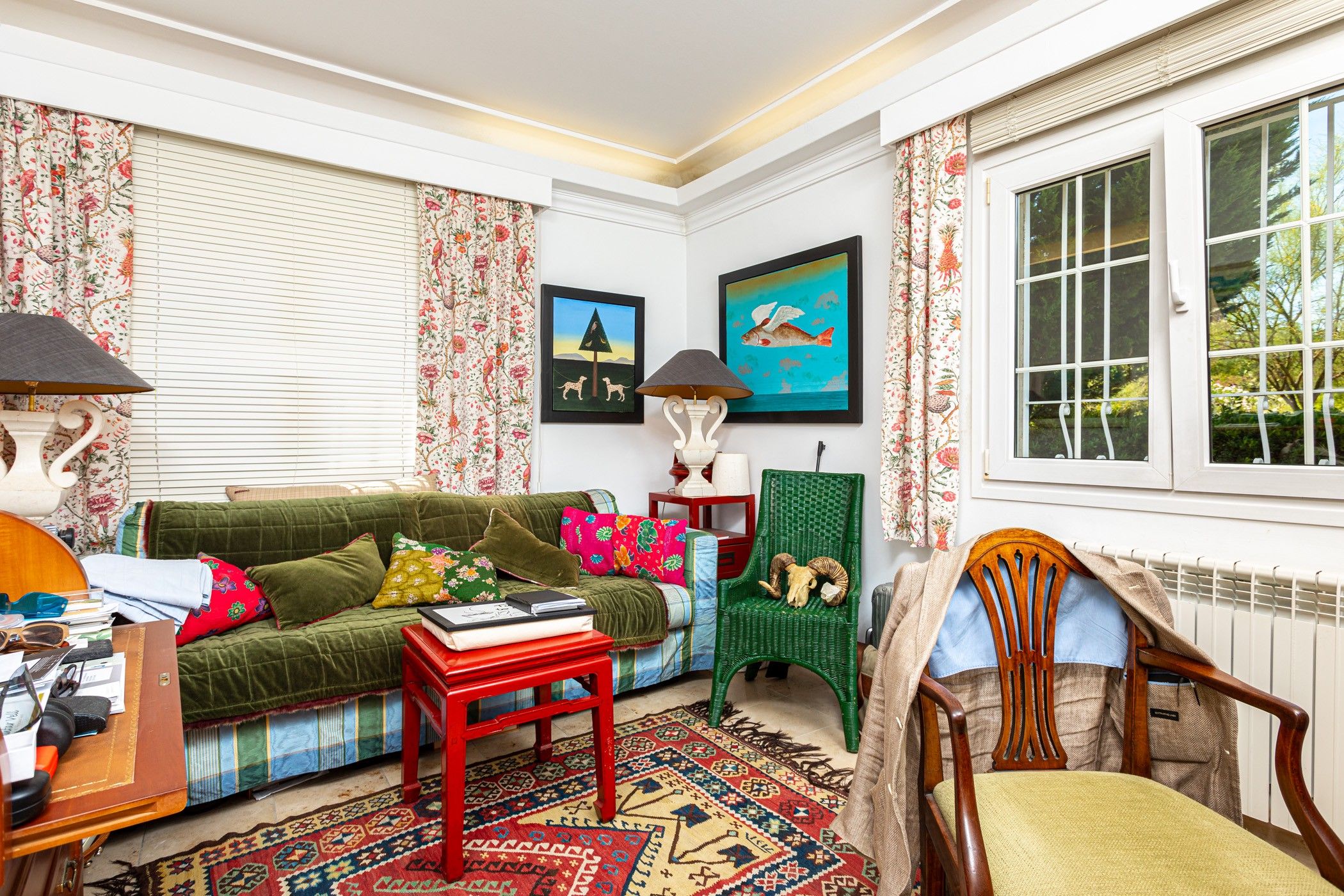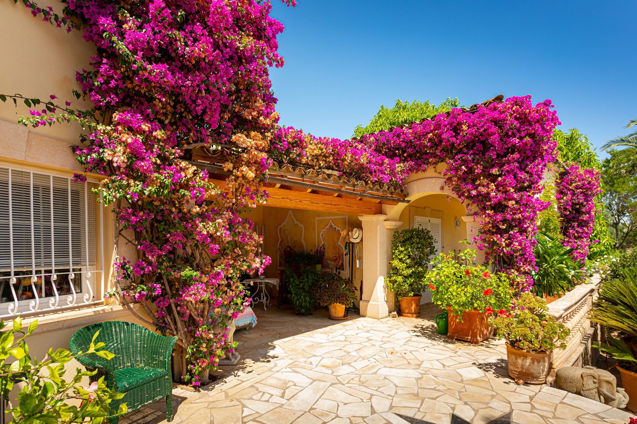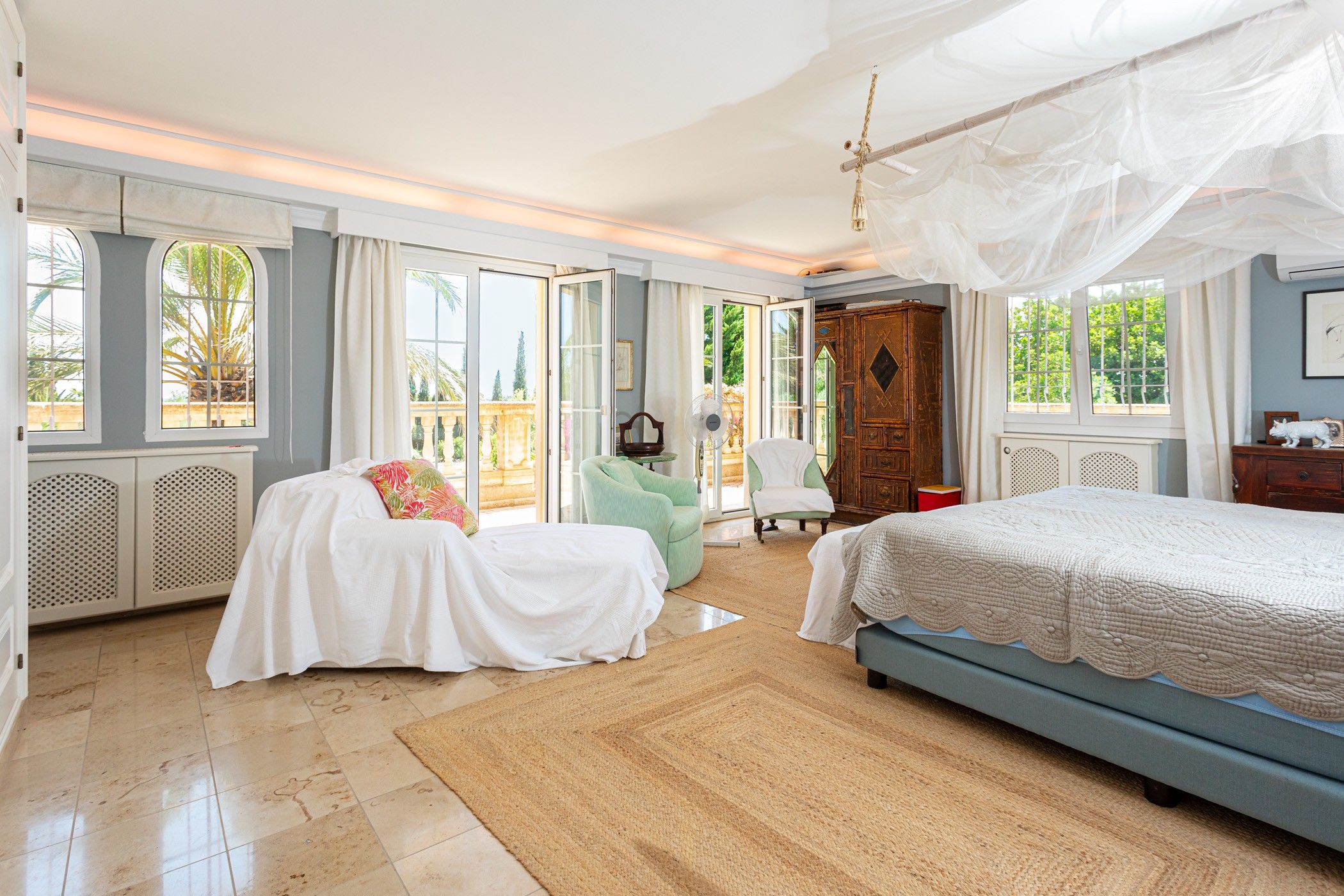 El jardí, completament consolidat, ha estat dissenyat amb molta cura i es rega mitjançant un sistema automàtic alimentat per dos aljubs d'uns 80 m3 cadascun. Aquests s'omplen tant amb aigua d'un pou privat com de la xarxa pública. Per a una major comoditat durant tot l'any, la casa compta amb calefacció central de gas, sòl radiant en diverses estades, aire condicionat, sistema d'alarma modern i connexió a la xarxa elèctrica.
