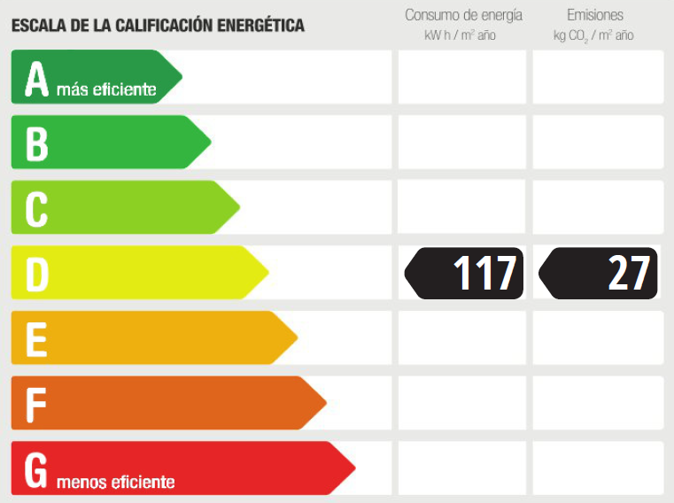 Any de construcció: 2002 • Valor de consum energètic: 117.43 kWh/(m2*a) • Tipus de calefacció: Gas • Classe d'eficiència energètica: D