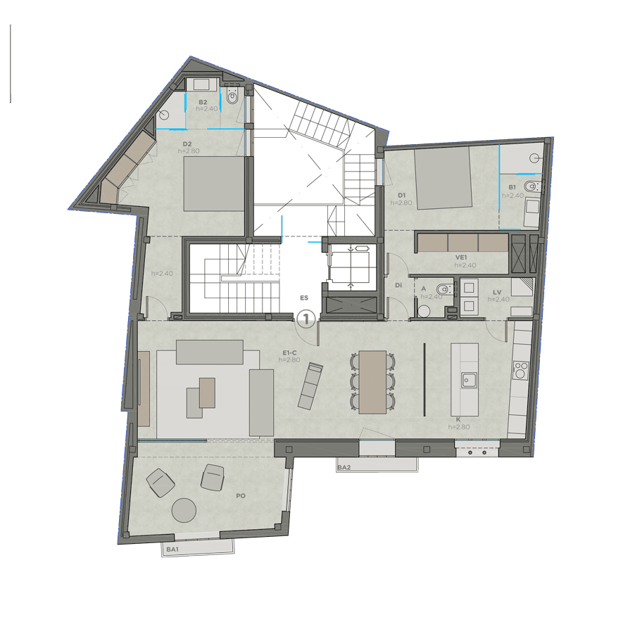 En un dels barris més antics de Palma, a «Sa Gerrería», es troba l'antic edifici Casa Baul, que data del segle XV i declarat bé patrimonial des de 1964. En 2022 s'han construït aquí quatre apartaments recentment renovats, entre els quals es troba aquesta impressionant propietat en la primera planta, que destaca per la seva perfecta combinació de disseny modern i sostenible amb elements tradicionals, com l'arc romànic i les finestres gòtiques de la façana exterior, així com la pedra natural marès, un material de construcció indissociable de les Illes Balears i la seva arquitectura. L'apartament té una superfície total de 142 m2 i consta d'un ampli saló amb balcó, una cuina americana amb menjador contigu i un altre balcó, dos dormitoris amb bany en suite (un d'ells amb vestidor), un safareig i una neteja de convidats. Altres detalls d'aquesta propietat de luxe són la domòtica, el sistema de descalcificació i osmosi, el sòl de parqué de roure, el doble envidrissament, l'aire condicionat central, la calefacció per sòl radiant i l'ascensor. Els criteris més importants del projecte són el disseny modern, la comoditat i la durabilitat, la qual cosa s'aconsegueix mitjançant materials d'alta qualitat, prestant sempre atenció a la conservació de les característiques antigues del nucli antic.