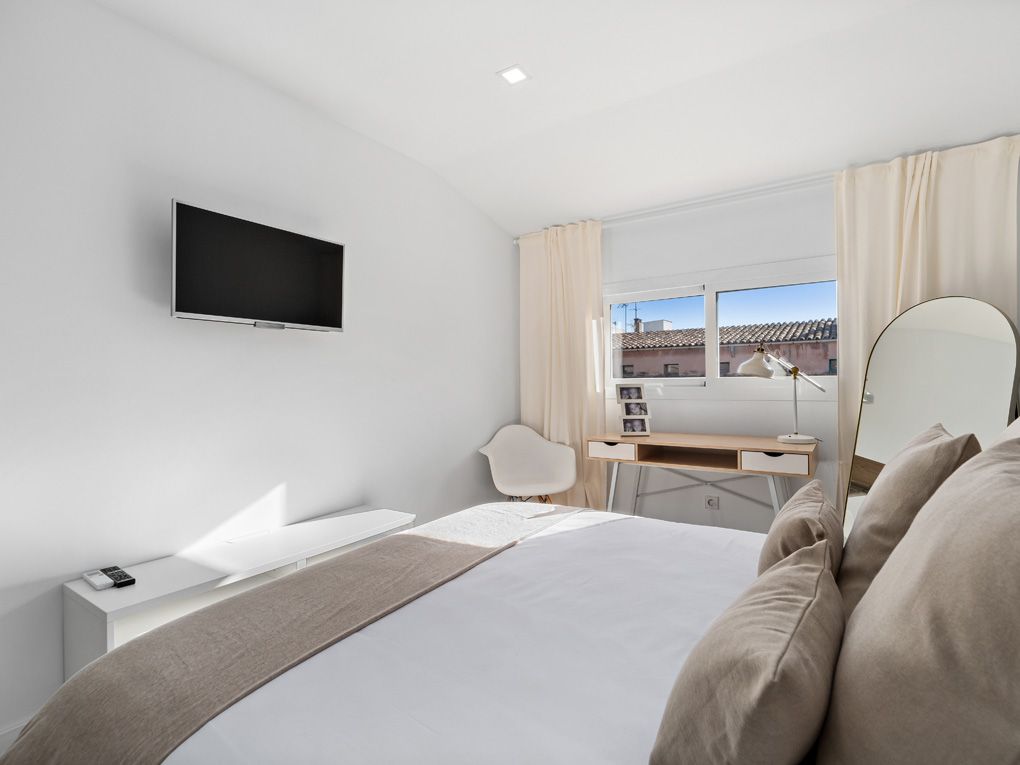 Benvingut a aquest modern apartament urbà situat en un dels carrers comercials més famosos de Palma, Jaume III. En pocs minuts a peu es troba el prestigiós Passeig Borne, Las Ramblas i, a l'altra banda, el verd Passeig Mallorca. L'exclusiu apartament de lloguer està situat en la cinquena planta i ofereix un ambient lluminós i acollidor amb totes les comoditats contemporànies. L'apartament va ser completament renovat el 2024 i compta amb una sala d'estar oberta amb una moderna cuina equipada, així com un dormitori molt lluminós i un quart de bany amb dutxa. Les comoditats inclouen aire condicionat (fred/calor), una rentadora/secadora i un elegant mobiliari. Les rajoles amb aspecte de fusta li donen a l'habitació un ambient càlid i creen una sensació agradable. Hi ha un ascensor disponible, així com el luxe d'una gran terrassa comunitària amb impressionants vistes. Gaudi d'aquest còmode apartament de lloguer, que impressiona per la seva cèntrica ubicació i les seves meravelloses instal·lacions.