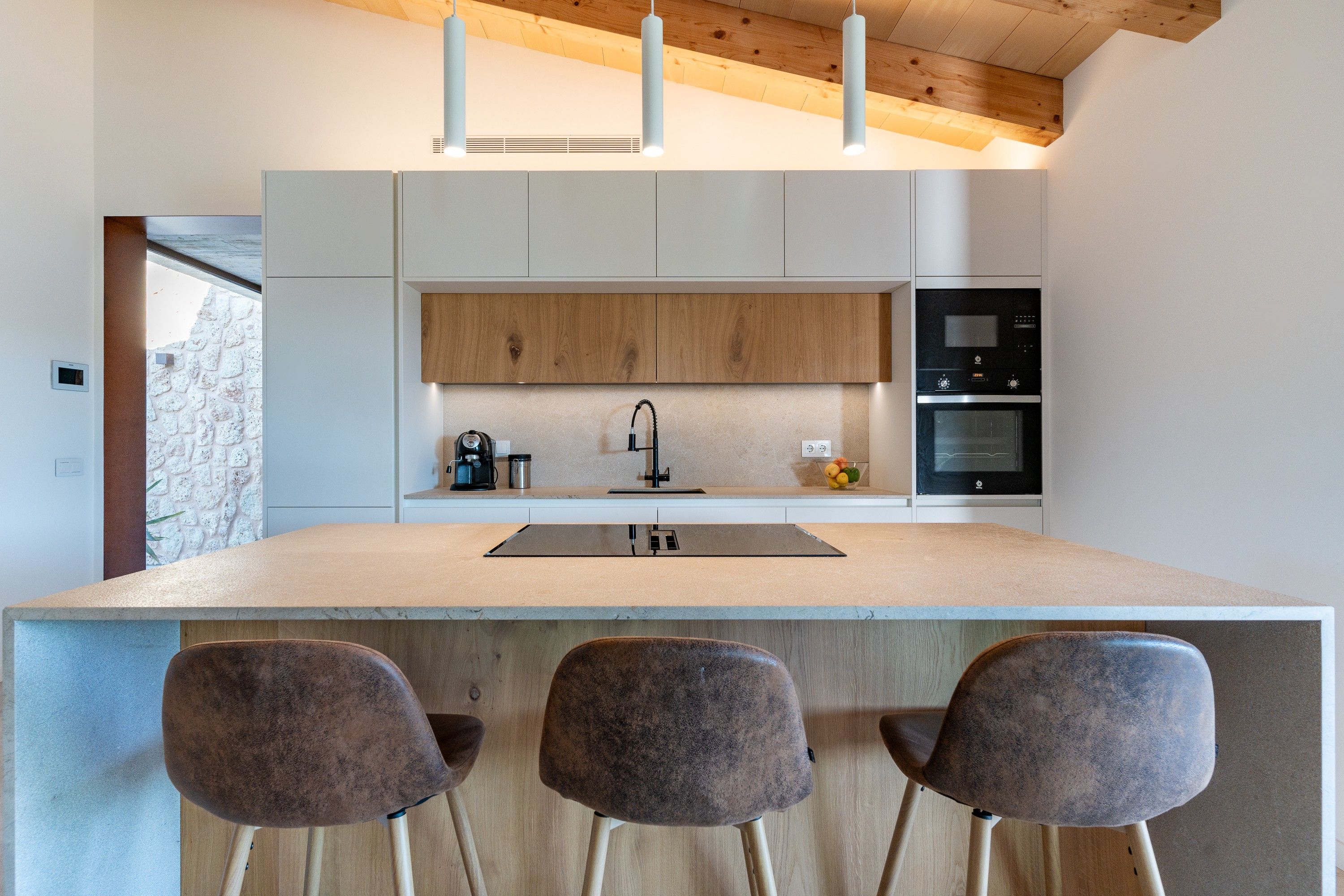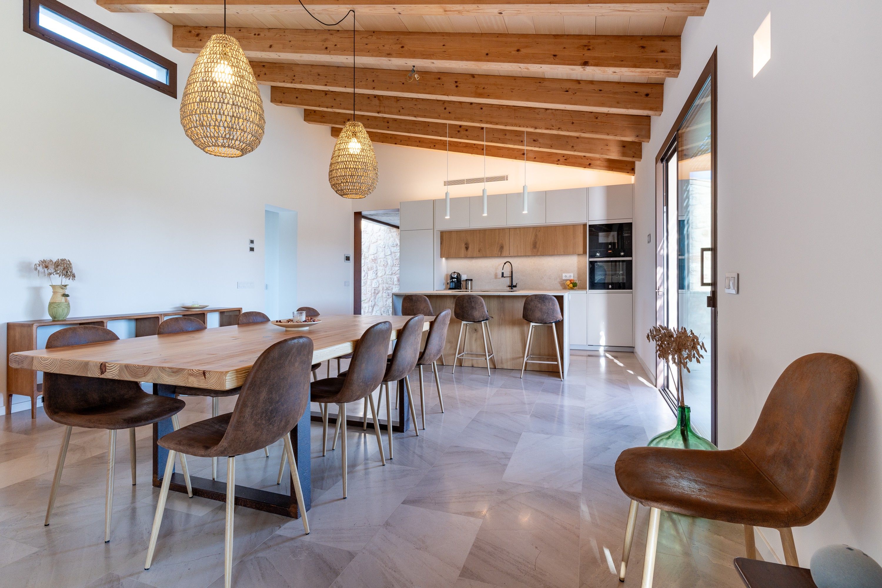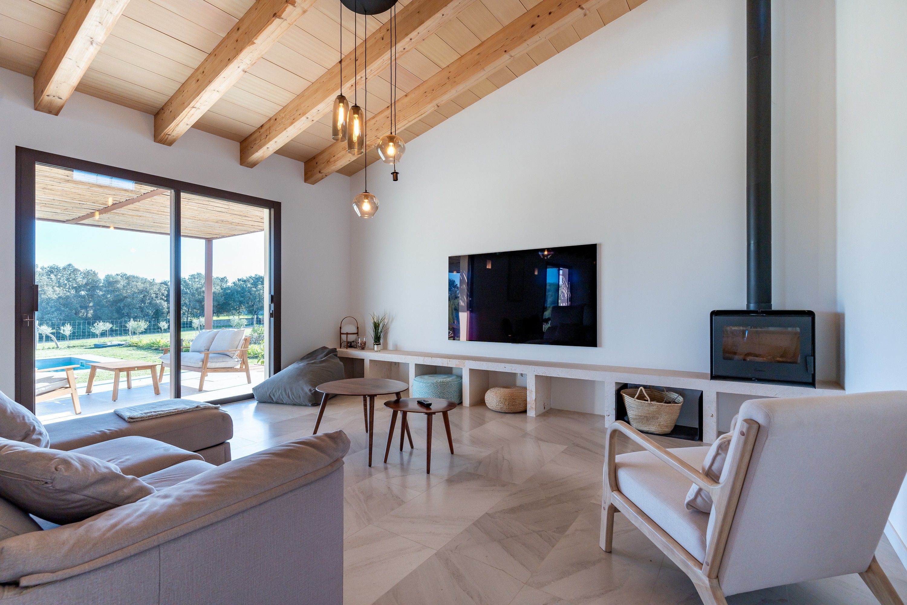 Als afores d'Inca, trobaràs aquesta encantadora casa de camp moderna, llista per rebre els seus propietaris. La casa, distribuïda en una sola planta, ha estat dissenyada acuradament per aprofitar al màxim cada espai. A la zona central, un ampli i lluminós espai obert alberga la cuina, el menjador i la sala d'estar, tots amb una gran entrada de llum natural. A l'altre costat de la casa, es troben els tres dormitoris: el principal, amb bany en suite i vestidor, i els altres dos, que comparteixen un vestidor i una neteja addicional. A més, la propietat compta amb un rebost, bugaderia i un garatge amb capacitat per a dos vehicles i espai d'emmagatzematge. La casa manté l'encant d'una autèntica finca mallorquina, amb una façana de pedra natural i bigues de fusta, combinats amb acabats moderns quant a decoració, il·luminació i sòls. A l'exterior, gaudiran d'una zona enjardinada que envolta una bonica piscina, perfecta per relaxar-se amb total privacitat i tranquil·litat. A més, la casa està envoltada per un bell camp amb oliveres i tarongers, la qual cosa la converteix en un lloc idoni per gaudir de la serenitat de l'entorn rural. Característiques: aire condicionat per conductes, bany de cortesia, sistema de reg, bugaderia, electricitat municipal, subministrament d'aigua per pou propi, heat pump, sòl radiant, xemeneia, plaques solars sense bateria, façana de pedra natural.