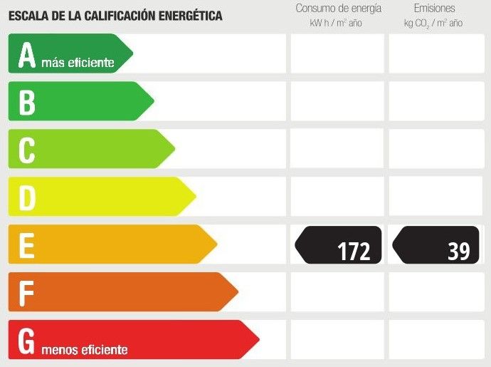 Any de construcció: 1950 • Valor de consum energètic: 172.3 kWh/(m2*a) • Emissions CO2: 39.4 kg/m2 • Escala de Emissions de CO2: E • Tipus de calefacció: Elèctrica • Classe d'eficiència energètica: E