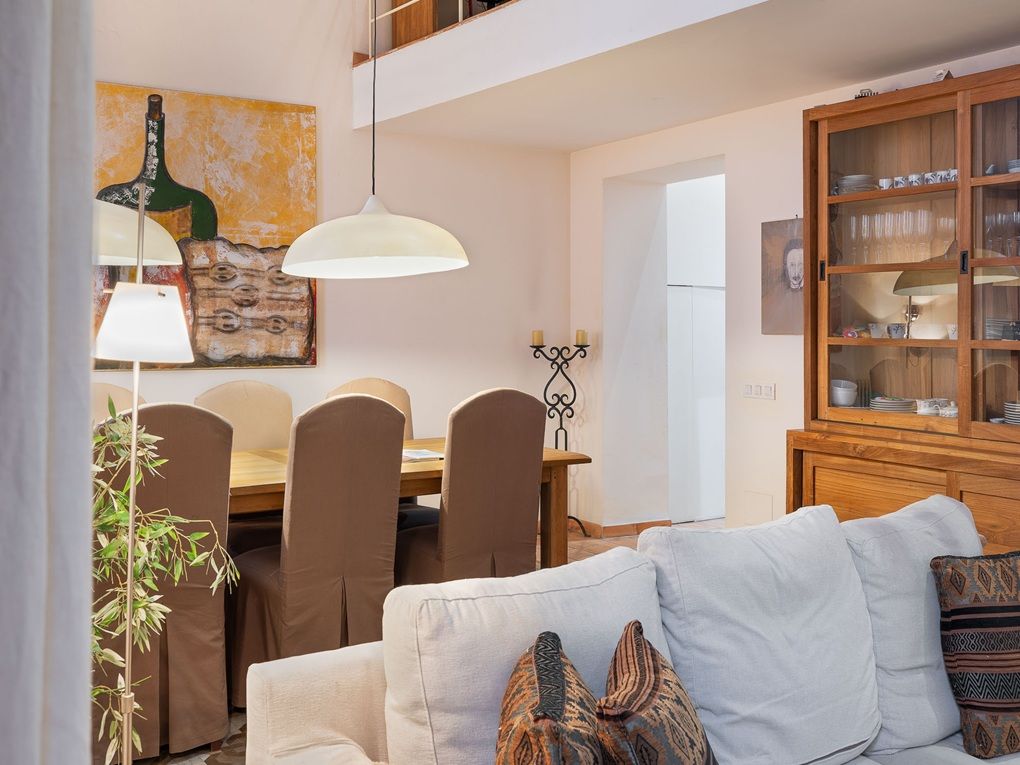 Accedit a través d'un bell pati d'estil gòtic, aquesta residència única comença la seva història amb un impressionant detall arquitectònic: una gran escala oberta que condueix a l'entrada d'aquesta joia. Està distribuït en dos nivells de vida amb un nivell addicional d'entresolat i també inclou una assolellada terrassa en el terrat que ofereix un espai exterior tranquil i idíl·lic per gaudir del càlid clima mediterrani. En entrar en el primer nivell, et rep una àrea de recepció, a la teva esquerra, trobes una cuina lluminosa que s'obre a un encantador balcó que dóna a l'històric pati de l'edifici, i just enfront trobas l'espaiós saló i menjador amb sostres impressionantment alts i clàssiques finestres de pis a sostre que donen al carrer, omplint l'espai de llum natural. Un nivell d'entresolat amb una barana de metall afegeix caràcter i podria servir com una inspiradora oficina a casa o racó de lectura. Aquest nivell també inclou una neteja de convidats i un quart de bugaderia. En el segon pis trobaràs tres acollidores habitacions que compten amb les típiques bigues de fusta en el sostre que afegeixen encara més caràcter a les habitacions. La suite principal inclou un bany privat i una habitació contigua amb armaris encastats, perfecta com a vestidor o emmagatzematge addicional. Un segon bany és compartit entre les altres dues habitacions. Des d'aquest nivell, també pots accedir a l'encantadora terrassa que dóna al pintoresc pati de baix, oferint moltes possibilitats, com una tranquil·la vetllada romàntica amb una ampolla de vi o una animada barbacoa amb família i amics. Els elements històrics, com les tradicionals parets de pedra de mars, els elegants sostres alts, les bigues de fusta i les rajoles hidràuliques marquen aquesta propietat amb la rica història que té Palma. És una única oportunitat de crear una llar amb encant en un palauet històric.