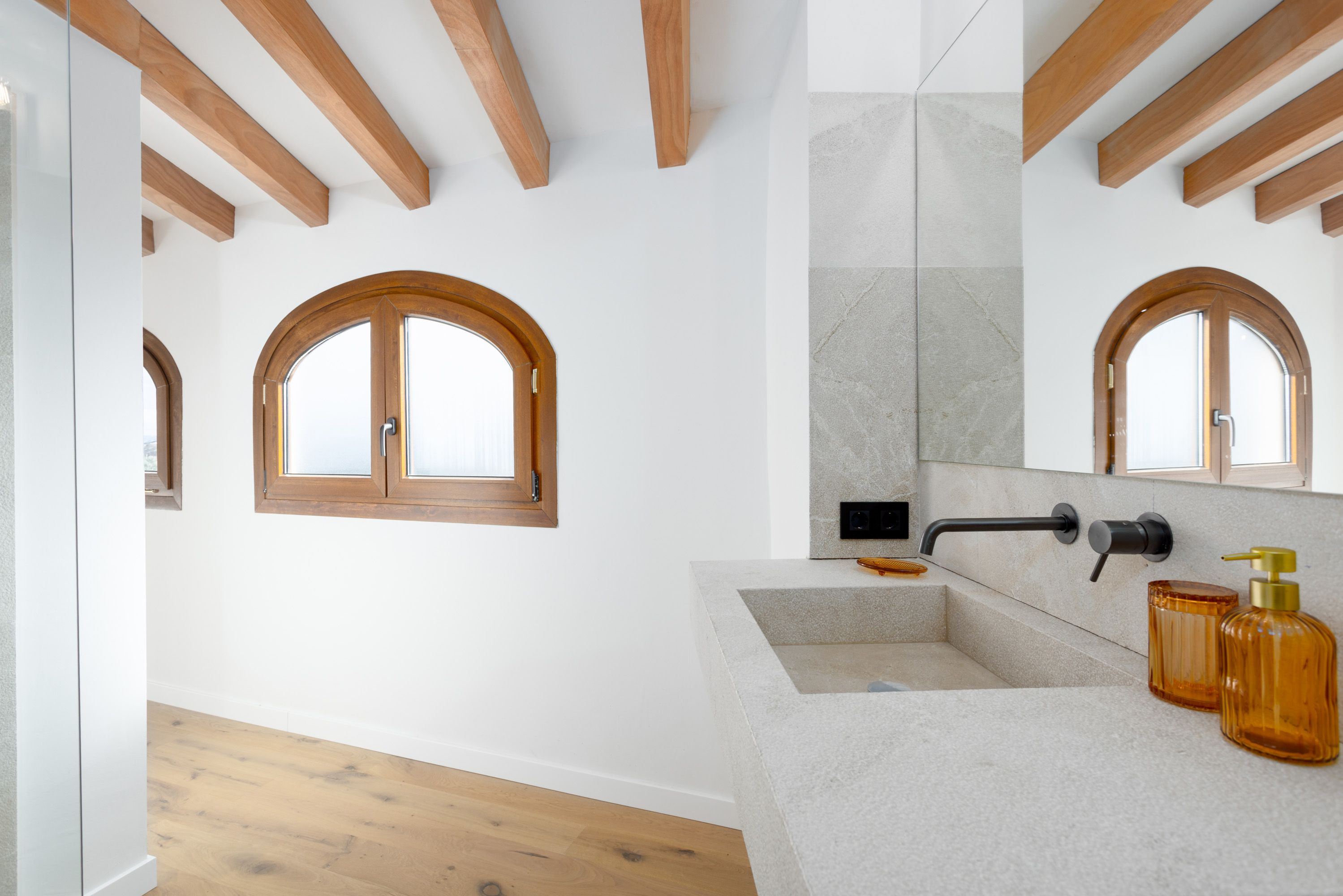 La casa disposa de 3 àmplies i lluminoses habitacions i 3 banys complets, dissenyats per oferir màxima comoditat i funcionalitat. A la planta principal es troben dues habitacions al costat del saló i la cuina, mentre que a la planta superior se situa un espaiós altell independent amb el dormitori principal i bany en suite. Des d'aquesta estada es gaudeixen agradables vistes a la Serra de Tramuntana, aportant un toc especial i privat.