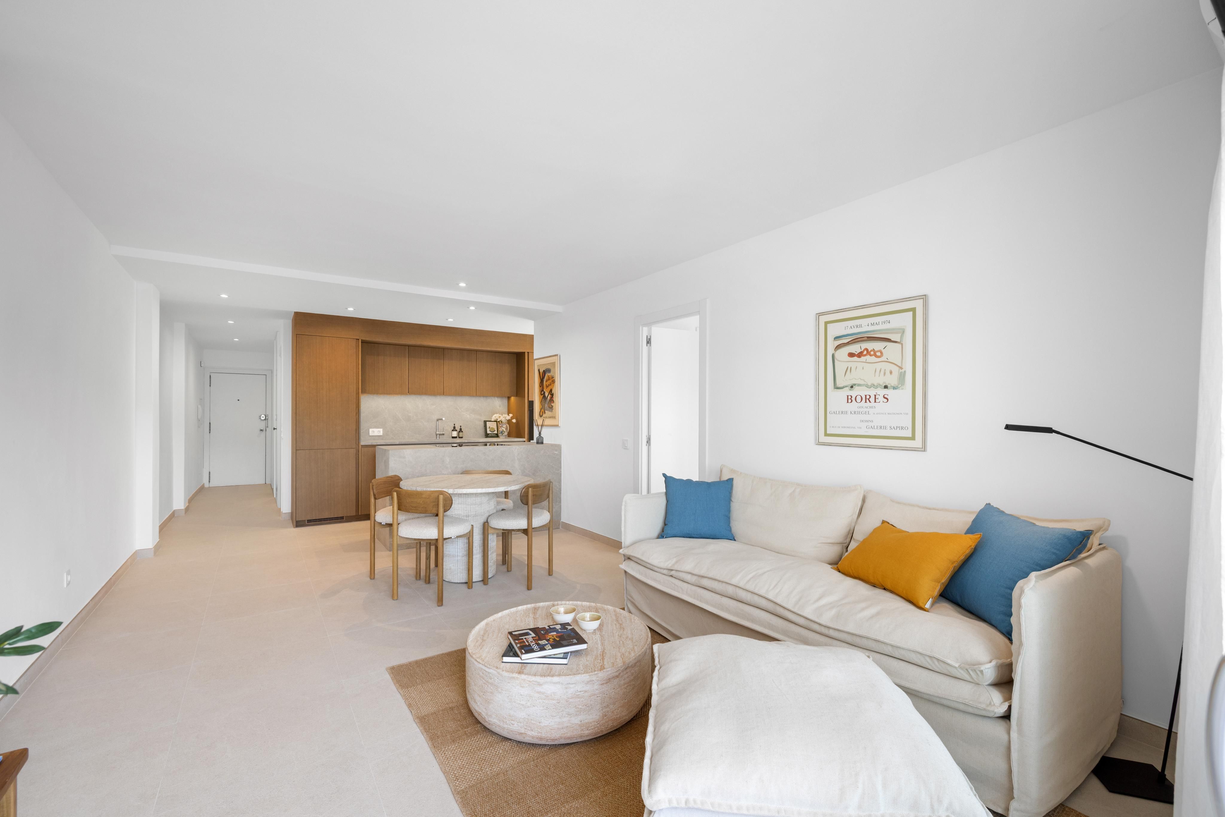 Aquest apartament completament renovat combina un estil de vida elegant amb una ubicació incomparable. Des de l'àmplia terrassa es pot gaudir d'unes vistes de somni al mar, al port i a les muntanyes circumdants. El port esportiu està a només uns passos i es pot arribar fàcilment a peu. Les habitacions lluminoses, els materials naturals i un concepte d'espai ben pensat creen un ambient acollidor. La cuina oberta, amb equipament d'alta qualitat, és el cor de l'apartament i convida a gaudir d'agradables vetllades en companyia. L'apartament té un total de tres dormitoris i dos moderns cambres de bany. El dormitori principal té accés directe a la terrassa i un bany en suite. Un altre dormitori està equipat amb un pràctic racó d'oficina, el que permet treballar des de casa. A més, hi ha una altra habitació que es pot utilitzar de manera flexible com a habitació de convidats, habitació infantil o refugi per a necessitats individuals. La cuidada distribució garanteix la privacitat i converteix aquest apartament en un refugi perfecte, ja sigui com a residència principal exclusiva o com a elegant propietat vacacional. Un safareig independent dins de l'apartament ofereix un confort addicional. Una plaça d'aparcament privada completa l'oferta.