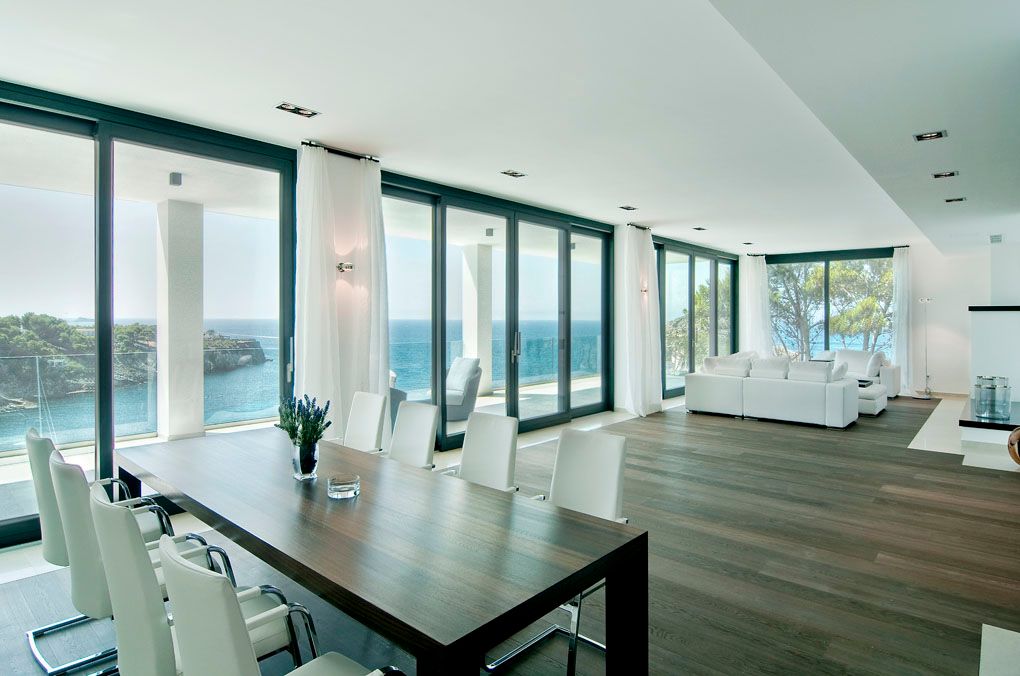 Aquesta elegant vila amb vistes al mar d'estil mediterrani-modern es troba en una ubicació privilegiada a Santa Ponsa, als voltants del mar, i ofereix impressionants vistes panoràmiques sobre la badia i la línia costanera. Les vistes buidades al mar creen una experiència residencial especial a qualsevol hora del dia i, especialment a la nit, es converteixen en un fascinant joc de llums. La vila destaca per la seva distribució ben pensada, estades plenes de llum i una harmoniosa combinació d'arquitectura moderna i estil de vida mediterrani. Àmplies zones d'estar de concepte obert amb una moderna cuina integrada formen el cor d'aquesta vila amb vistes al mar, mentre que la xemeneia aporta un ambient acollidor durant els mesos més frescos. A la planta principal també es troben un despatx, una neteja de convidats i un còmode dormitori amb bany en suite. Un ascensor garanteix un alt nivell de confort i fa que la propietat sigui ideal també per a persones amb mobilitat reduïda. A la planta superior li esperen dos dormitoris amb banys en suite, així com l'espaiosa suite principal amb vestidor i un elegant bany; tots els dormitoris gaudeixen d'espectaculars vistes al mar a Santa Ponsa. Un dels grans atractius és la planta de la piscina amb una àmplia terrassa coberta, que ofereix un agradable espai fresc per relaxar-se fins i tot en els calorosos dies d'estiu. La cuina exterior totalment equipada amb barbacoa és perfecta per a vetllades agradables amb familiars i amics. L'oferta es completa amb un apartament de convidats independent amb dos dormitoris i banys en suite, que garanteix un alt nivell de privacitat. La calefacció per sòl radiant (bomba de calor per aerotèrmia), l'aire condicionat fred/calor, dos garatges i la proximitat a camps de golf, ports esportius, platges i col·legis internacionals converteixen aquesta exclusiva vila a Santa Ponsa en una residència ideal per a tot l'any a Mallorca.