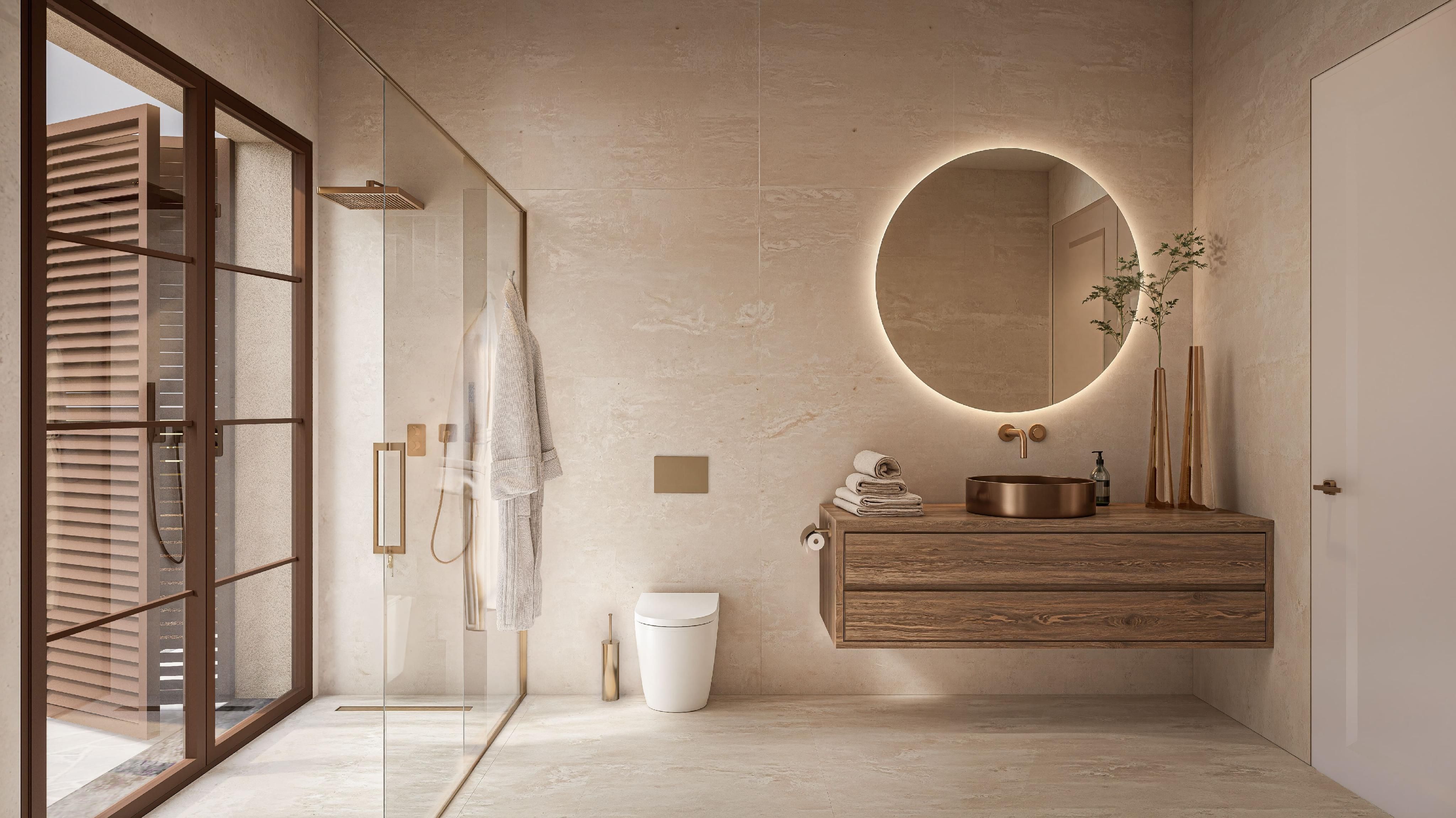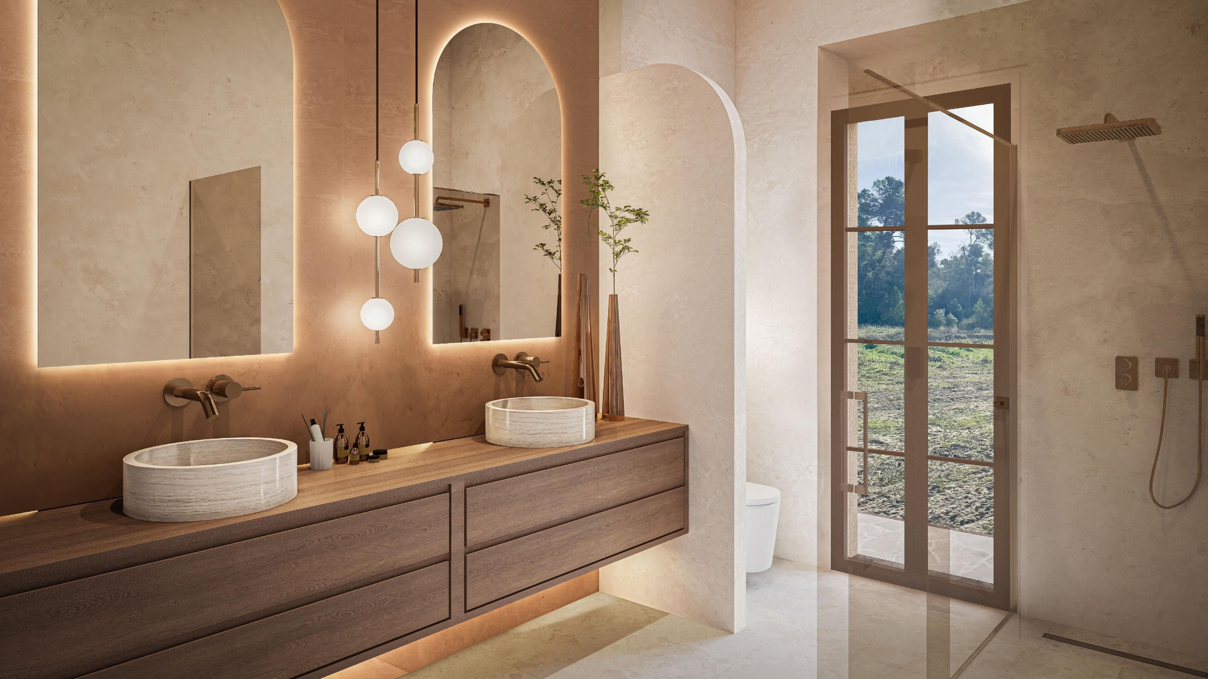 L'habitatge, de 264 m2 construïts, presenta una arquitectura mediterrània funcional i ben proporcionada. L'espai principal l'ocupa un ampli saló amb xemeneia, connectat a una cuina oberta d'alta gamma amb illa central i electrodomèstics Bosch Blackline. La distribució inclou una suite principal amb vestidor i dos dormitoris de convidats, tots amb bany en suite. A més, un segon saló amb xemeneia ofereix un espai addicional que pot adaptar-se com a quart dormitori si es desitja.
