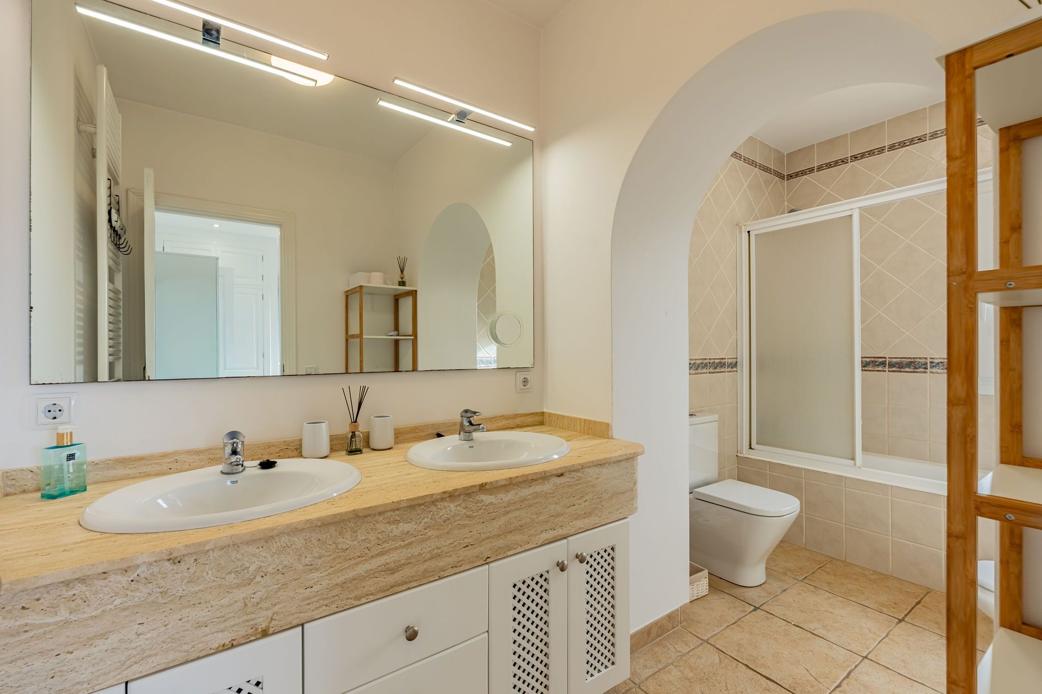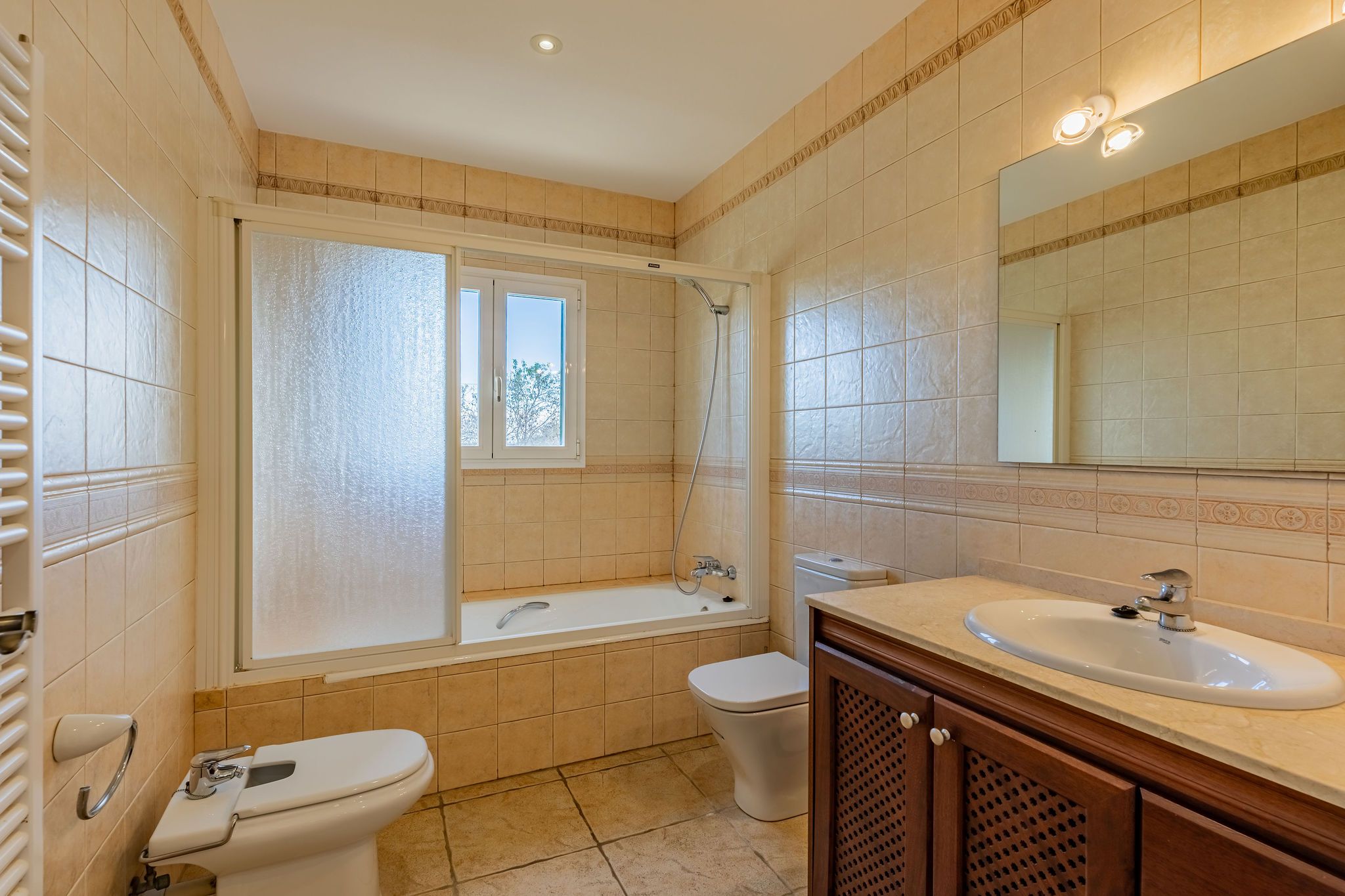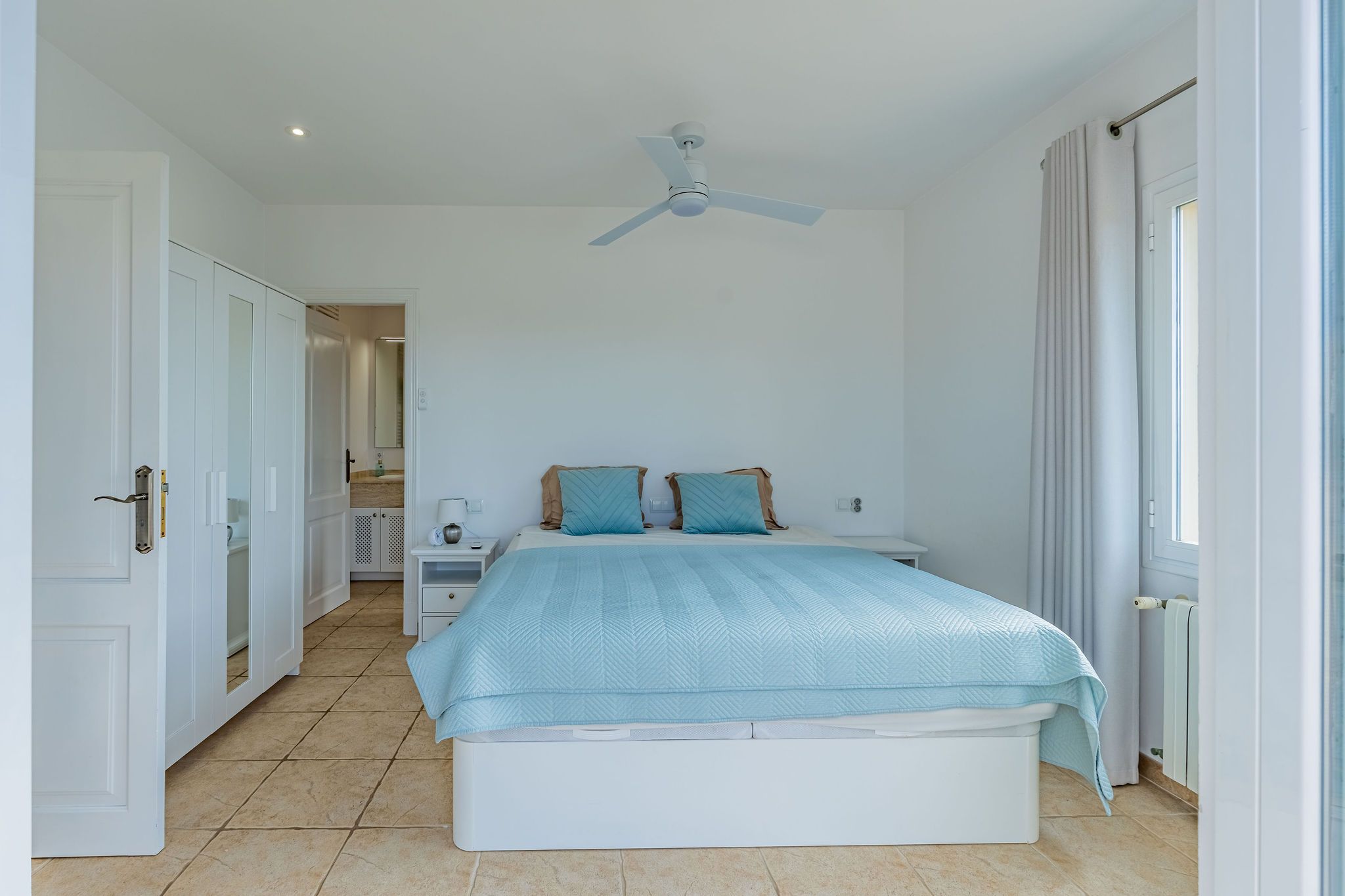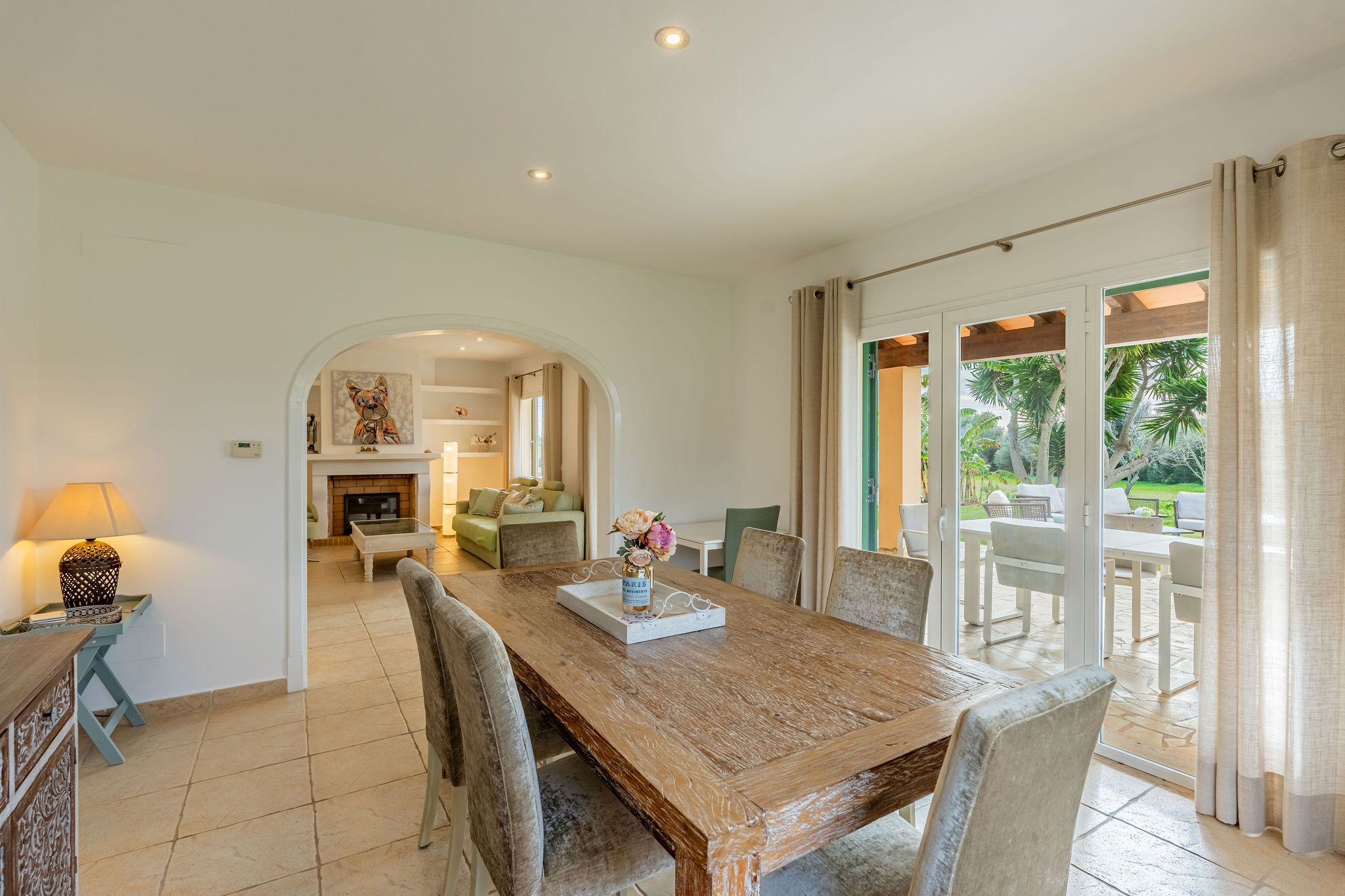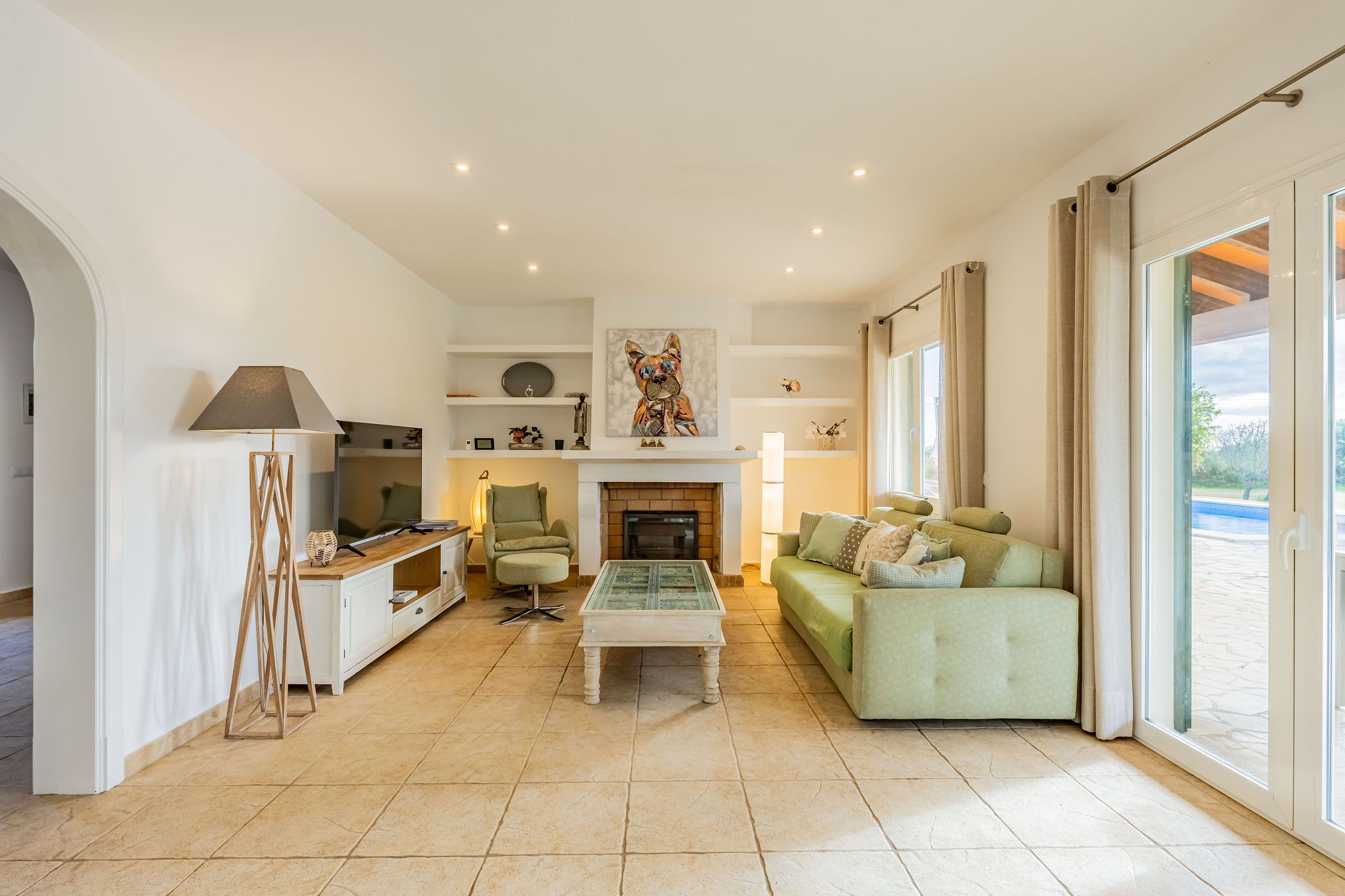 Aquesta finca es troba entre Calonge i Cala d'Or en un terreny d'aprox. La superfície total d'al voltant de 192 m2 es distribueix en dos nivells i destaca per un disseny funcional i harmoniós. Una cobdícia llicència ETV per fins a set llits també fa que aquesta propietat sigui ideal per a lloguers vacacionals. En entrar a la finca, a la dreta es troba la sala d'estar i menjador oberta, que està inundada de llum a través de grans finestrals i ofereix accés directe a la terrassa. La cuina està dissenyada de manera individual i compta amb una illa de cuina acollidora. La terrassa parcialment coberta estén l'espai habitable a l'aire lliure i condueix directament a la zona de la piscina. L'ala esquerra de la planta baixa alberga dos dormitoris i dos banys, oferint un retir agradablement separat. A la planta superior, trobarà el dormitori principal amb bany en suite, així com una altra habitació que actualment s'utilitza com a dormitori. Des d'aquest nivell, també es pot gaudir d'una bella vista al mar sobre el paisatge circumdant. Les característiques tècniques inclouen calefacció per sòl radiant i unitats d'aire condicionat de tipus split, assegurant un clima interior agradable durant tot l'any. Un garatge proporciona comoditat i espai d'emmagatzematge addicional. Aquesta finca combina arquitectura clàssica, un pla ben pensat i una ubicació privilegiada entre Calonge i Cala d'Or, ideal com a residència privada o com una propietat vacacional d'alt rendiment.