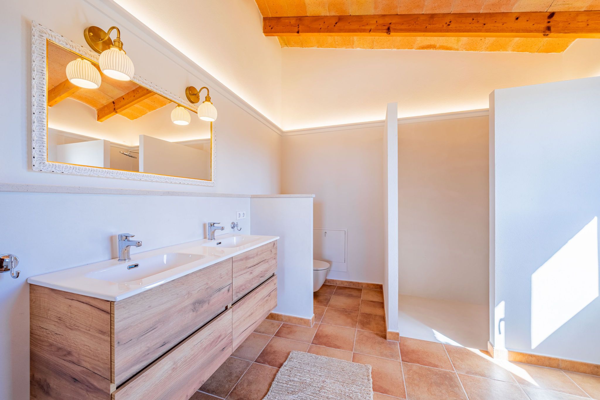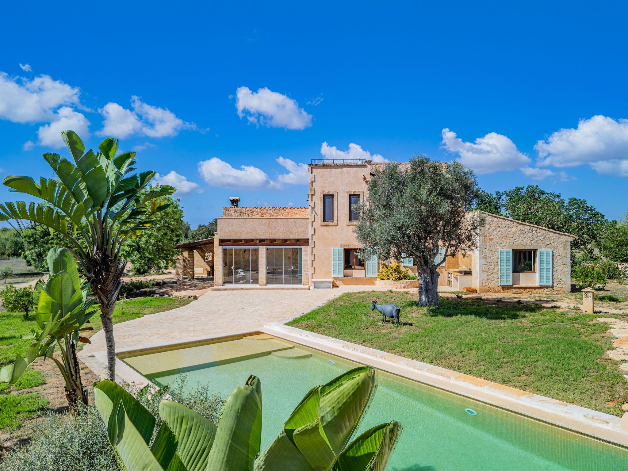 Incrustada en el tranquil paisatge del sud-est de Mallorca, es troba aquesta finca excepcionalment bella que combina l'encant tradicional amb el confort modern. La propietat va ser construïda el 2004 i completament renovada el 2025; amb molt d'amor pels detalls, es va mantenir el caràcter original i al mateix temps es va actualitzar a l'estàndard actual de la cultura de vida mediterrània d'alta qualitat. La casa principal impressiona per la seva arquitectura generosa i lluminosa: el cor és l'ampli saló-menjador amb doble altura de sostre, grans finestrals i xemeneia oberta, que proporciona a l'espai una atmosfera càlida i acollidora; la cuina adjacent s'integra harmoniosament en el concepte de l'espai i ofereix molt espai per cuinar i gaudir. A la planta baixa hi ha dos còmodes dormitoris i un bany dissenyat amb bon gust. A la planta superior es troba el dormitori principal amb bany en suite i balcó privat, des del qual s'obre una magnífica vista sobre la propietat i el paisatge circumdant, un lloc ideal per retirar-se, començar el dia amb una perspectiva àmplia o relaxar-se al capvespre. La casa d'hostes separada complementa la finca amb una àrea d'estar independent amb sala d'estar, dormitori i bany, oferint privacitat per als hostes o sent adequat com a àrea de treball o estudi. L'àrea exterior destaca per la seva generositat mediterrània i un jardí acuradament dissenyat amb oliveres i arbres fruiters; en la part de l'entrada, un bell pati interior protegit rep als visitants i transmet immediatament una sensació de llar gràcies a la seva tranquil·litat i atmosfera. Diverses terrasses al voltant de la casa ofereixen llocs assolellats i ombrejats per relaxar-se, mentre que la piscina forma el centre de la vida exterior, un lloc ideal per gaudir plenament de la tranquil·litat de la naturalesa i el clima mediterrani. Aquesta finca combina l'arquitectura mallorquina, materials naturals i confort contemporani de manera harmoniosa, i és un lloc on la tradició i la modernitat, la naturalesa i l'elegància estan en perfecte equilibri, una llar que emana qualitat de vida, estil i autenticitat.