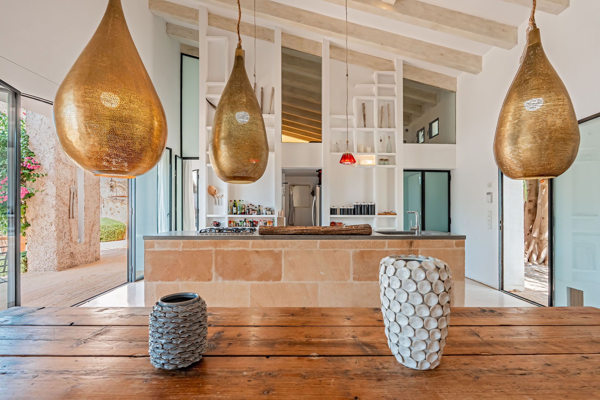 Aquesta finca única destaca per la seva arquitectura especial i el bell jardí mediterrani que l'envolta. Les dues parts de l'edifici estan disposades en forma de L al voltant de la piscina i compten amb terrasses que les envolten. A la finca principal, a la planta baixa, hi ha un dormitori amb bany en suite i una sala d'estar contigua. A la planta superior hi ha tres dormitoris addicionals, cadascun amb bany en suite. Un pràctic quart a la planta baixa ofereix molt espai com a traster per a tots els equips esportius i de jardineria. A la segona part de l'edifici es troba la cuina oberta i moderna amb un gran saló tipus loft i xemeneia oberta. A més, a la planta baixa hi ha un altre dormitori amb bany en suite i una neteja per a convidats. A través d'una escala s'accedeix al golf condicionat que actualment també s'utilitza com dormitori. Tots els dormitoris estan equipats amb aire condicionat. Un porxo cobert amb àrea de barbacoa es connecta directament a la sala d'estar. El bell jardí mediterrani alberga una pista de petanca, una pista de voleibol, un trampolí encastat i una pista de tennis. Un pou proveeix d'aigua a la finca, i un sistema fotovoltaic garanteix el subministrament elèctric autònom. Aquesta finca destaca per la seva atmosfera especial i no deixa cap desig sense complir per a tots els amants de l'esport.