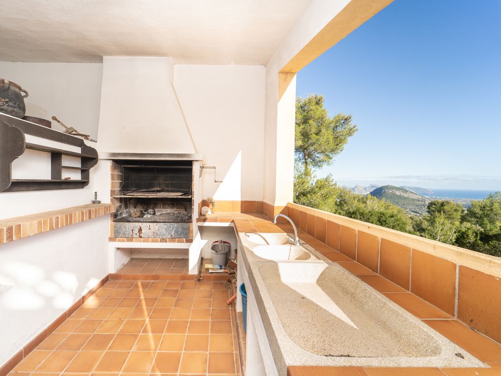 Located in the prestigious valley of Vall de Colonya, for sale, a super house that not only has unique views across the countryside but also has spectacular views over the bay of Pollensa. Offering absolute privacy the property has 6.4 ha. of land in one of the most beautiful valleys in the north of Mallorca and the potential to be a stunning country villa. Despite being in need of a reform it is simply charming, with a well thought through layout that makes the most of its fantastic position. On the lower level is a rustic kitchen with a huge dining area that opens to a big terrace and spectacular scenery, on the terrace there is also a separate covered grill area and summer kitchen. A perfect venue for summer entertaining with family and friends! Off the kitchen is an enchanting little sitting room with an open fireplace and natural stone details. To the rear of the house on this level are two bedrooms, one has an on suite bathroom and there is also a family bathroom. On the upper floor is a third bedroom with on suite bathroom and a grand living room opening to a further terrace and even more incredible vistas. It is a truly privileged position to discover the stars and night sky, romantic sunrises and sunsets and a magical full moon. Features of the house include central heating throughout, solar fired electricity and a rain water collection system. At the rear of the house is a water deposit that could be converted in to a pool with natural water perfect for freshening up in the summer. This property has the makings of a beautiful retreat surrounded by nature whilst not being remote.