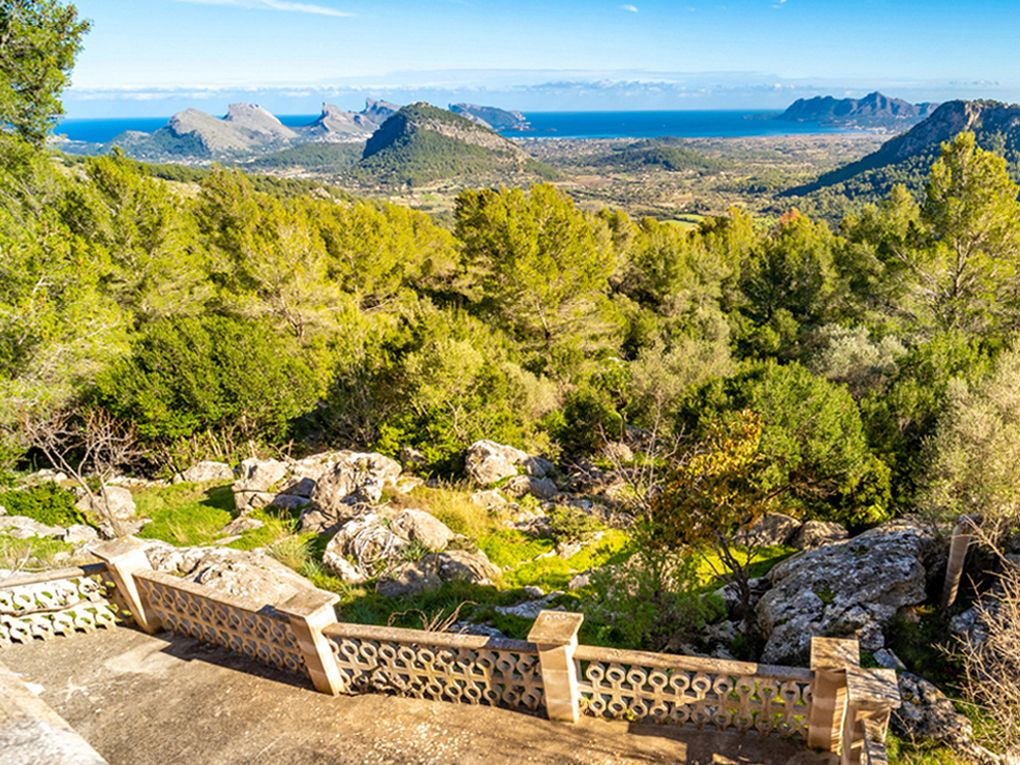 The beautiful old town of Pollensa has a population of more than 16,000 and is part of the Municipality of Pollensa, that also includes Puerto Pollensa and Cala San Vicente. The town is 6 km from the coast and 58 from the airport and the capital Palma de Mallorca. The old town is characterised by narrow streets and the old market square. The town has a medley of cafes, bars, eateries and small hotels. Pollensa offers a special insight into the Mediterranean lifestyle that has evolved over the centuries, it is a town with history that values its traditions and customs. In the early 1920s, Pollensa became a popular destination for famous painters, writers and musicians who visited the island. Today Pollensa continues to be important to the cultural and art worlds promoting and hosting concerts and exhibitions of relevance, such as the International Music Festival held during the summer months. The event calendar is busy in Pollensa the most notable occasions being the festivals of Sant Antoni in January the Easter celebrations and the week-long festivities of the patron saint ‘La Patrona Mare de Déu dels Àngels’ from the 26th July to and including the 2nd of August. Also well worth visiting is the wine fair in April and the Sunday markets held every week. Points of interest include the convent on the Puig de Maria, where there are fantastic 360º views and a great cafe, and if you book you can even sleep there for a small sum. There is a Roman Bridge, which probably is not Roman and the 365 steps of the Calvario, here too there is a great little cafe at the top to recover from the climb and relish the huge views to both the bays of Pollensa and Alcudia.