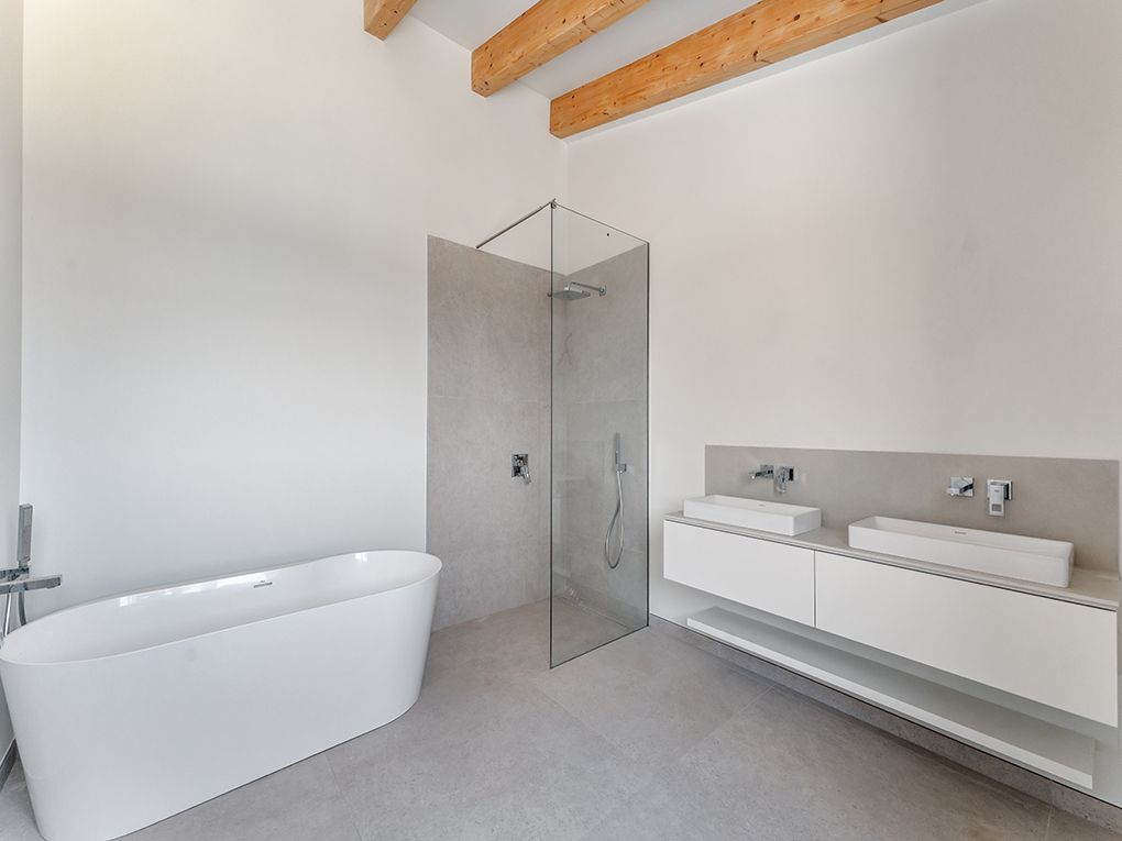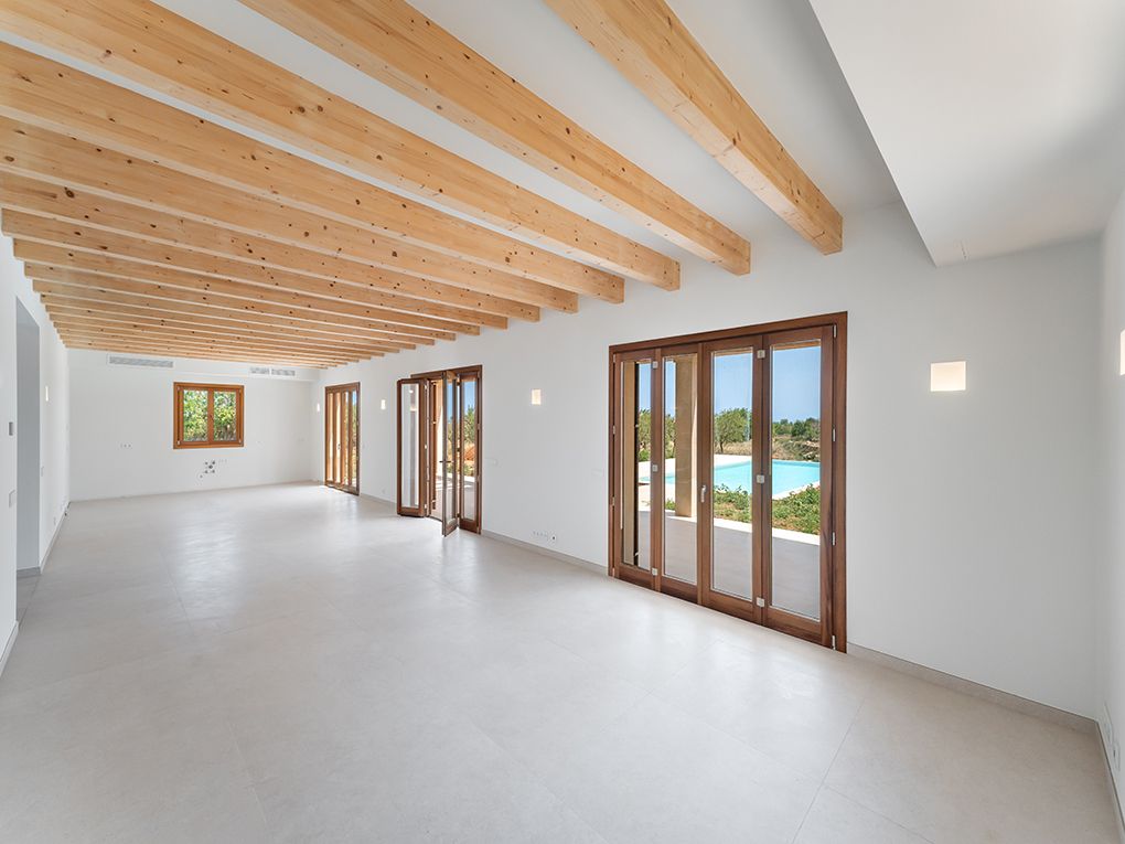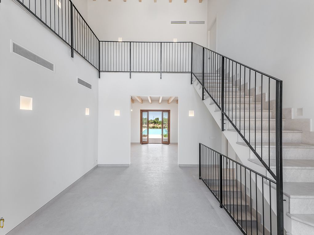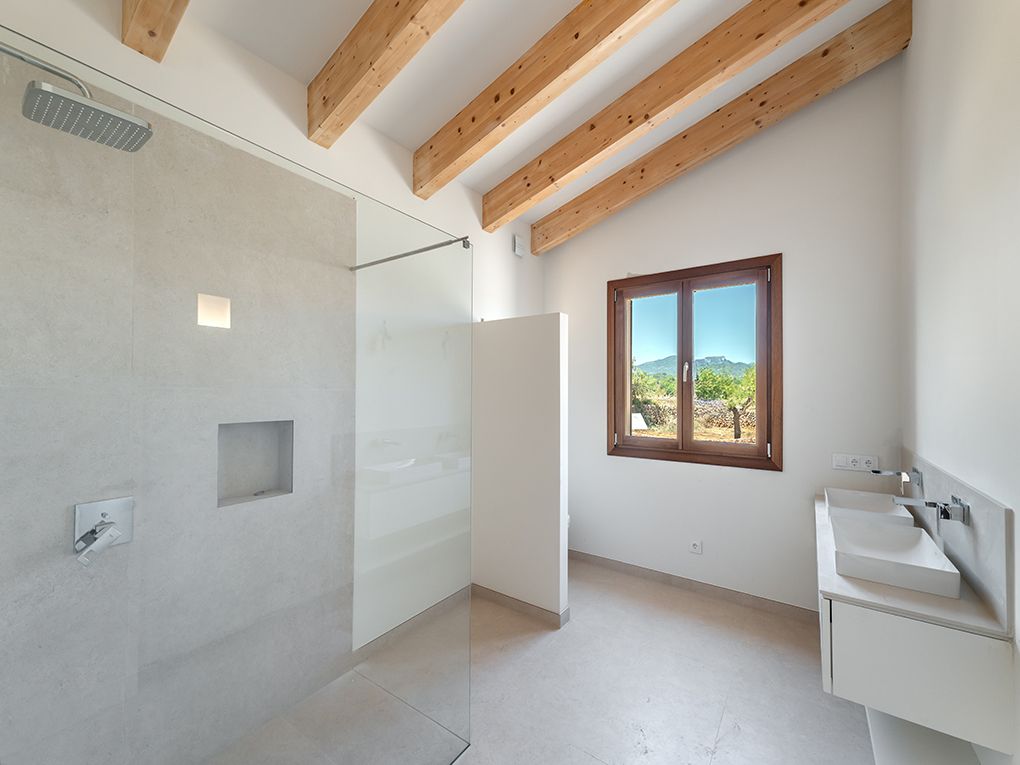 Aquesta finca de nova construcció es troba en una parcel·la d'aproximadament 16.870 m2, en una zona tranquil·la amb boniques vistes a les muntanyes i al paisatge natural dels voltants. El disseny combina elements mediterranis a l'exterior amb un interior modern i funcional, creant un ambient actual i acollidor. L'habitatge es distribueix en tres nivells i compta amb una superfície construïda d'uns 420 m2. En accedir, un vestíbul lluminós condueix a un espai obert amb saló, menjador i cuina. Grans finestrals permeten l'entrada d'abundant llum natural i connecten amb una terrassa parcialment coberta, el jardí i la piscina d'uns 60 m2: un lloc ideal per relaxar-se i gaudir de l'entorn. La planta baixa disposa de tres dormitoris amplis, cadascun amb bany en suite. A la planta superior es troben dos dormitoris addicionals, també amb bany en suite i vestidor; un d'ells inclou una terrassa privada amb vistes buidades. La planta soterrani ofereix una zona de bugaderia, un gimnàs i un garatge ampli. A més, la propietat inclou una casa de convidats independent, perfecta per allotjar familiars o visites. Una finca ideal per als qui busquen tranquil·litat, privacitat i qualitat de vida a l'entorn natural de Mallorca.