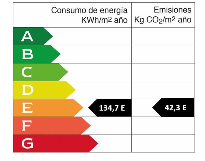 Any de construcció: 2025 • Valor de consum energètic: 134.7 kWh/(m2*a) • Emissions CO2: 42.3 kg/m2 • Escala de Emissions de CO2: E • Tipus de calefacció: Bomba de calor • Classe d'eficiència energètica: E