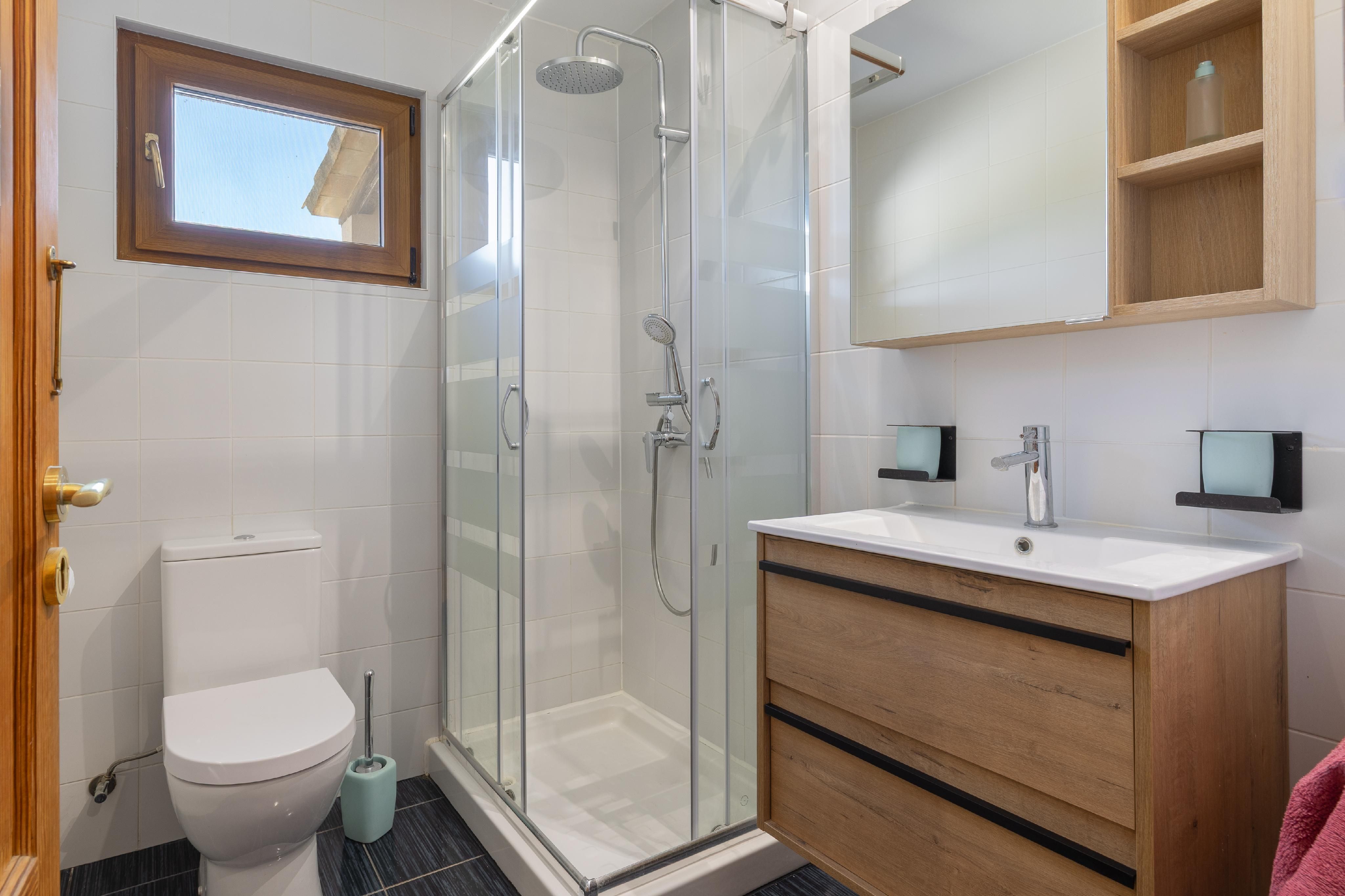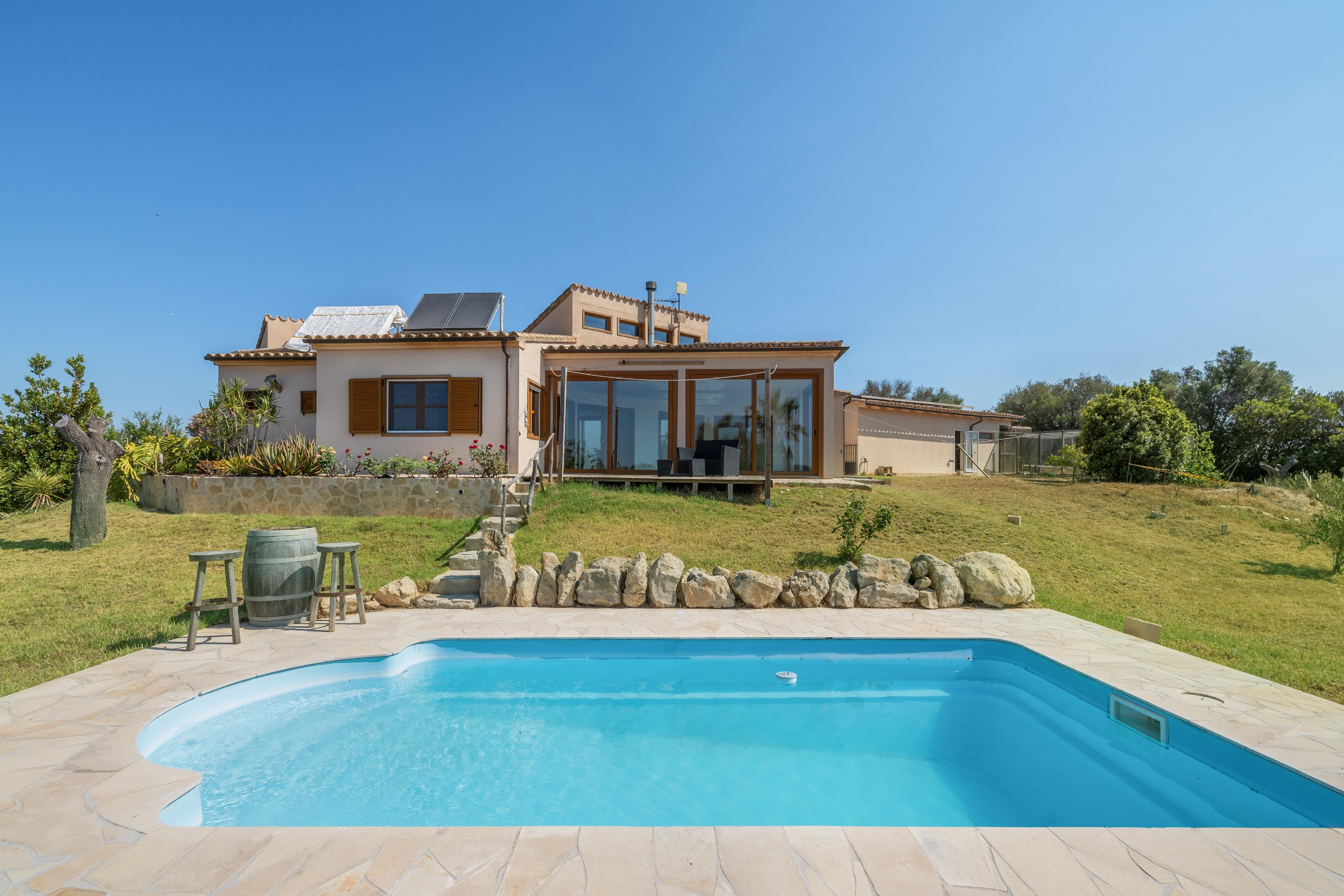 Aquesta preciosa propietat està situada en un turó, s'accedeix perfectament i ofereix unes vistes meravelloses de l'illa. La casa compta amb tres dormitoris i dos banys, una sala d'estar amb estufa de llenya, una cuina totalment equipada amb menjador i la gran terrassa tancada, que també s'utilitza com a sala d'estar. L'electricitat se subministra mitjançant connexió a la xarxa elèctrica i mitjançant un sistema fotovoltaic. L'aigua prové del seu propi pou profund i proveeix tant a la casa com al sistema de reg del jardí. La propietat també té un garatge doble, portó elèctric d'entrada, aire condicionat fred / calor i calefacció central de gasoil. Aquesta gran propietat es completa amb una zona de barbacoa i la piscina climatitzada mitjançant bomba de calor amb solarium.