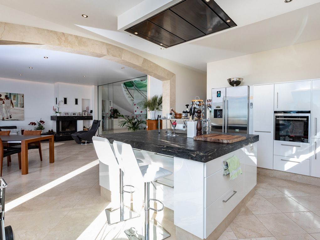 Aquesta espaiosa vila ofereix totes les comoditats imaginables, com una sauna, una piscina d'aigua salada, calefacció per sòl radiant i materials d'alta qualitat. L'orientació sud ofereix molta llum i li permet a un gaudir de les vistes a la badia de Palma i al mar Mediterrani. La propietat disposa de quatre dormitoris i tres banys, un en suite i amb vestidor. També compta amb una àrea obert com un loft a la planta superior, que es podria usar com a segona sala d'estar.