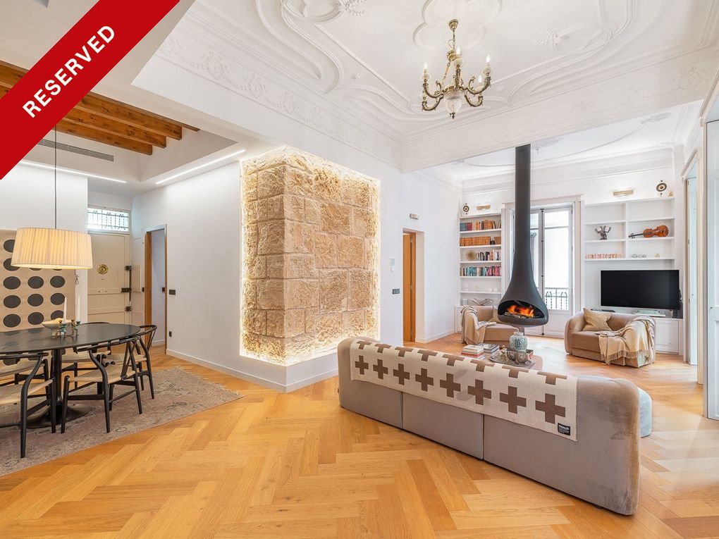 Tipus: Apartament • Regió: Palma • Any de construcció: 1900 • Darrera restauració: 2019 • Superfície total: 201 ㎡ • Dormitoris: 3 • Banys: 3 • Espai habitable: 181 ㎡ • Balcons: 2 • Cuina • Xemeneia • Aire acondicionat • Lavabo de cortesia • Tipus de calefacció: Sòl radiant, Totalment climatitzat • Tipus de calefacció: Bomba de calor • Revestiment del sòl: Rajoles, Parquet