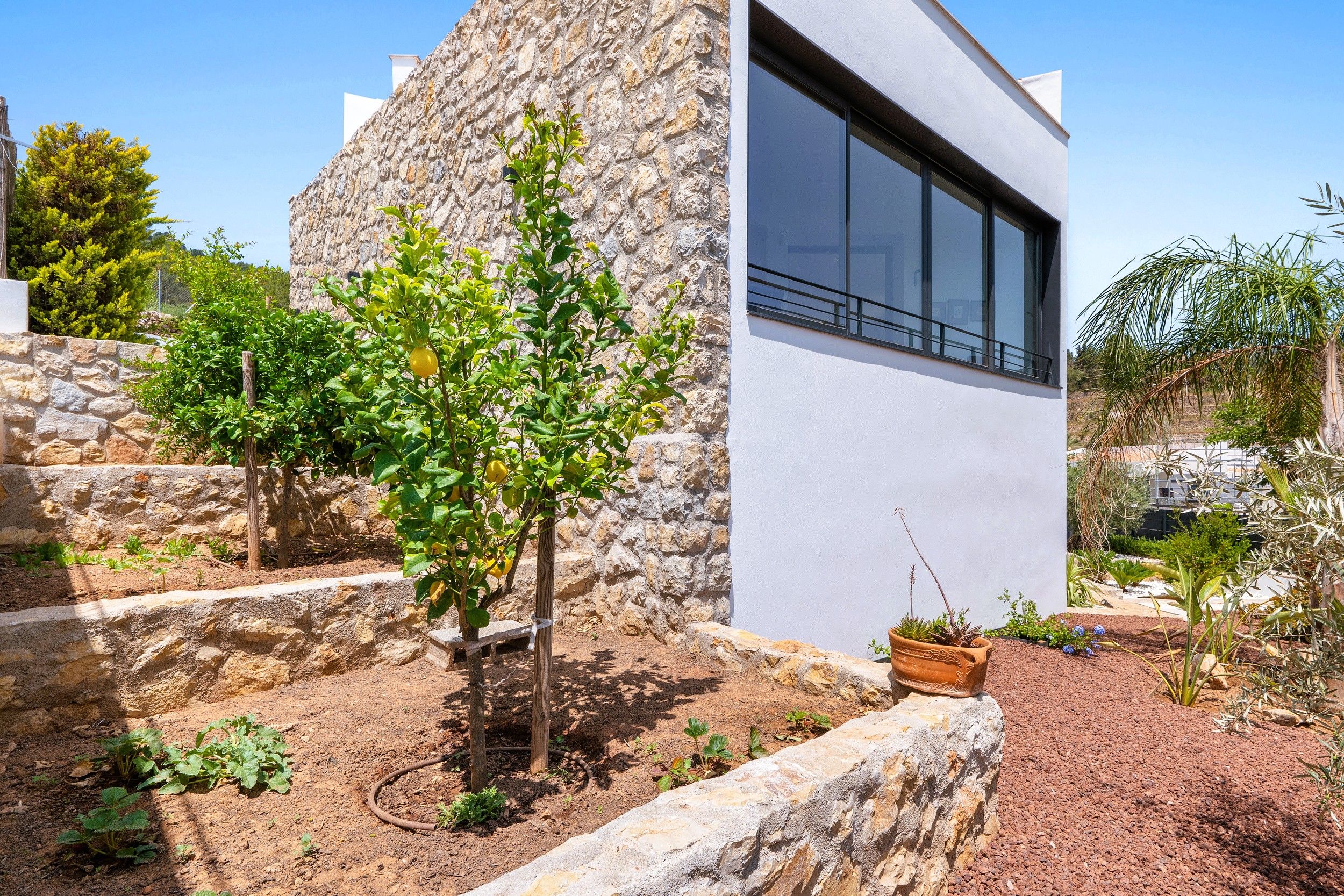 La zona exterior ha estat dissenyada amb especial cura i inclou una àmplia terrassa parcialment coberta, menjador a l'aire lliure i una piscina de 12,74 m2, ideal per relaxar-se sota el sol mallorquí. Una escala exterior condueix a un hort privat amb impressionants vistes a la muntanya, perfecte per als qui desitgen integrar l'estil de vida mediterrani amb la producció dels seus propis aliments.