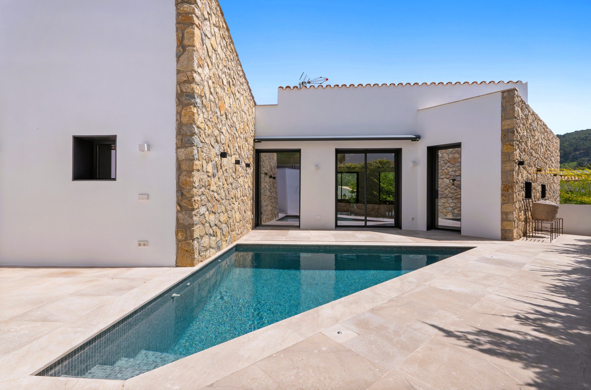 Construïda en 2020, l'habitatge destaca per la seva cuidada distribució en una sola planta. Compta amb dos amplis dormitoris, dos moderns banys i una lluminosa zona d'estar-menjador de concepte obert, amb accés directe a àmplies terrasses i a la zona de piscina. Els grans finestrals inunden els espais de llum natural i aconsegueixen una connexió fluida entre l'interior i l'exterior.