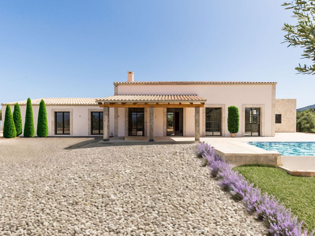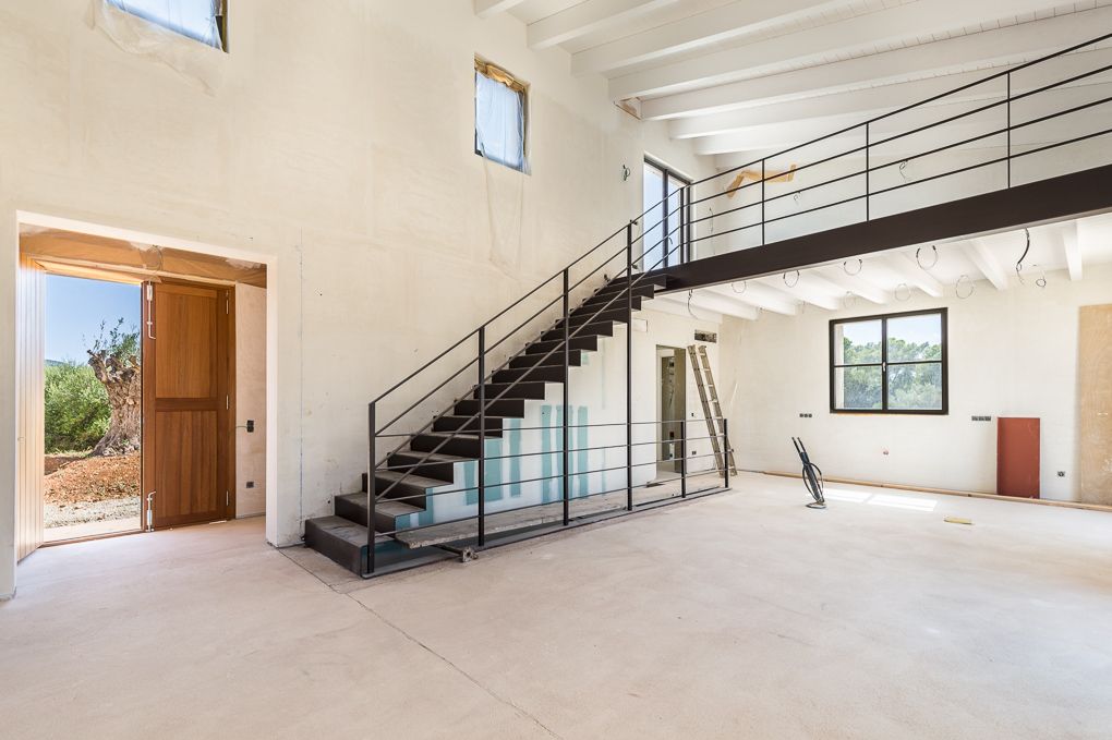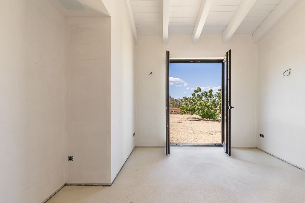 Informació important: algunes fotografies han estat decorades virtualment per a una millor representació de la propietat finalitzada. Aquest projecte de nova construcció amb mobles moderns i elements mediterranis d'alt nivell de qualitat s'està completant actualment. En un nivell es troba l'ampli saló-menjador de planta oberta i una cuina equipada d'una coneguda marca. Els quatre dormitoris estan al costat de la zona d'estar. La casa té un dormitori doble amb bany en suite, dos dormitoris individuals i la suite principal amb vestidor i bany en suite. A la primera planta hi ha un estudi d'uns 20 m2 que ofereix espai per a ús individual. Des d'aquí també es pot accedir a la gran terrassa solàrium. La zona exterior està dissenyada amb plantes mediterrànies amb una gran piscina en el costat oest de la propietat, ideal per gaudir de les posades de sol. Les comoditats inclouen calefacció per sòl radiant mitjançant bomba de calor i un sistema d'aire condicionat descentralitzat per al funcionament en fred i en calent. El subministrament d'electricitat és proporcionat per un sistema fotovoltaic, i la propietat té un pou propi. Tot el projecte està dirigit per una empresa constructora de renom que utilitza qualitats alemanyes.