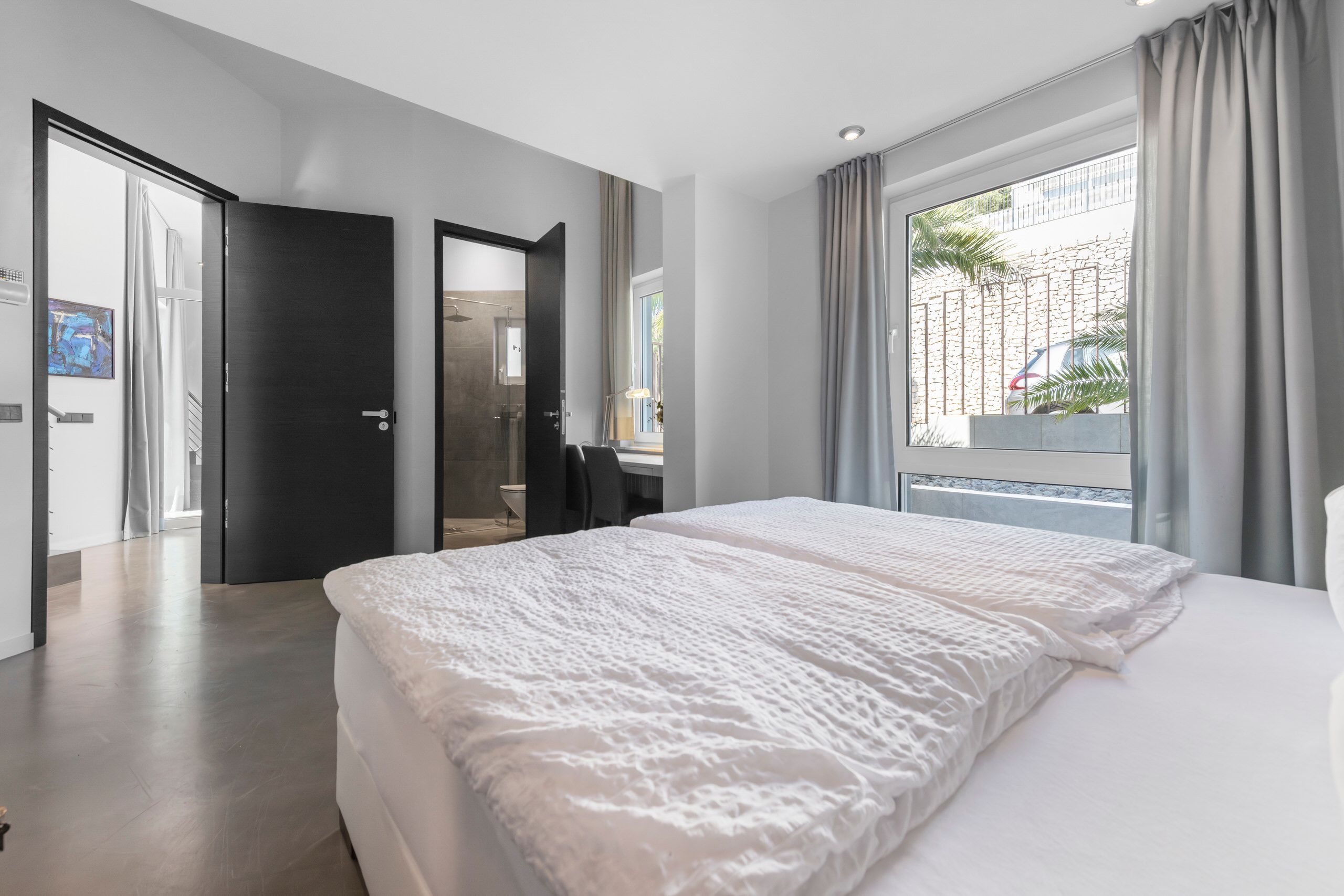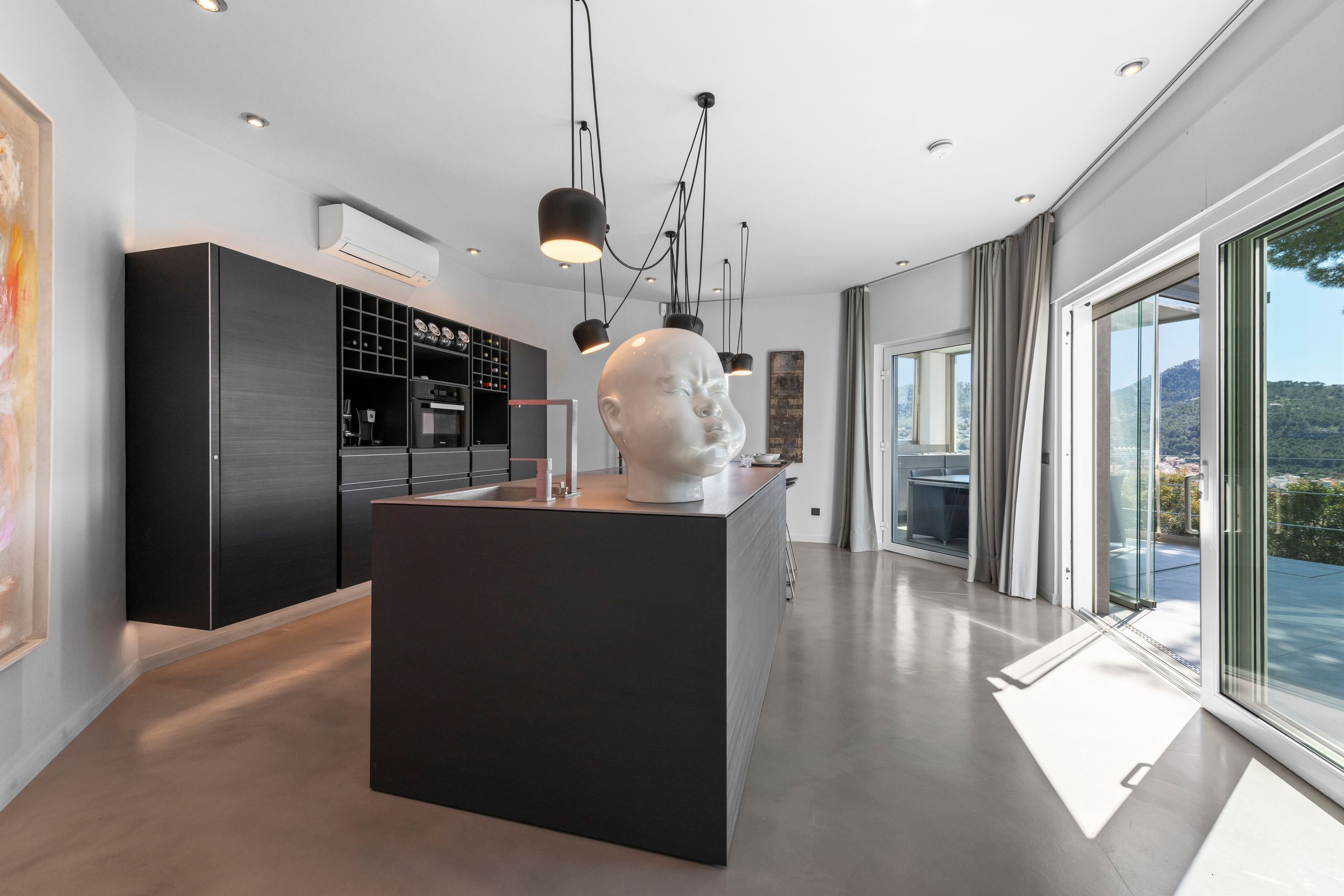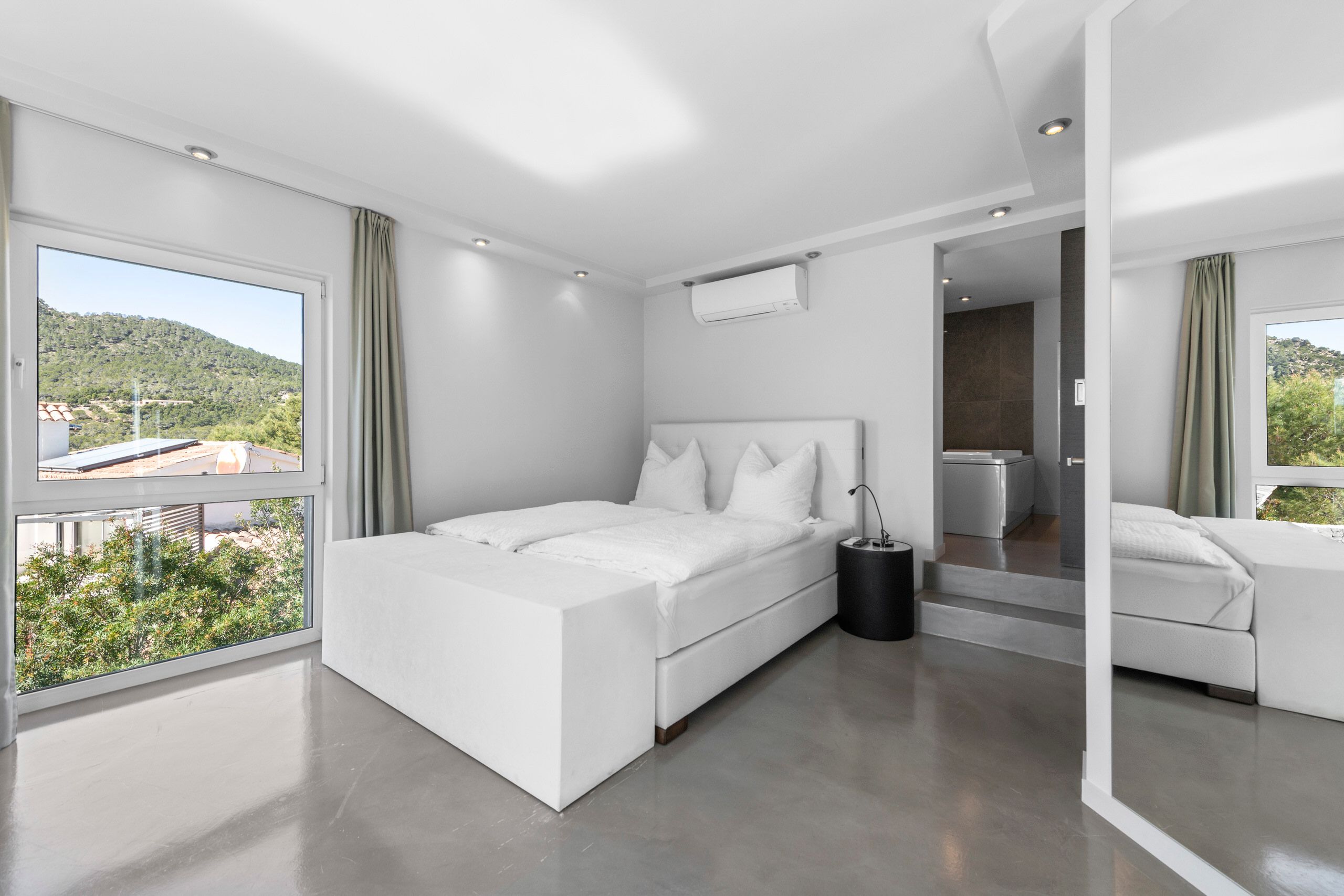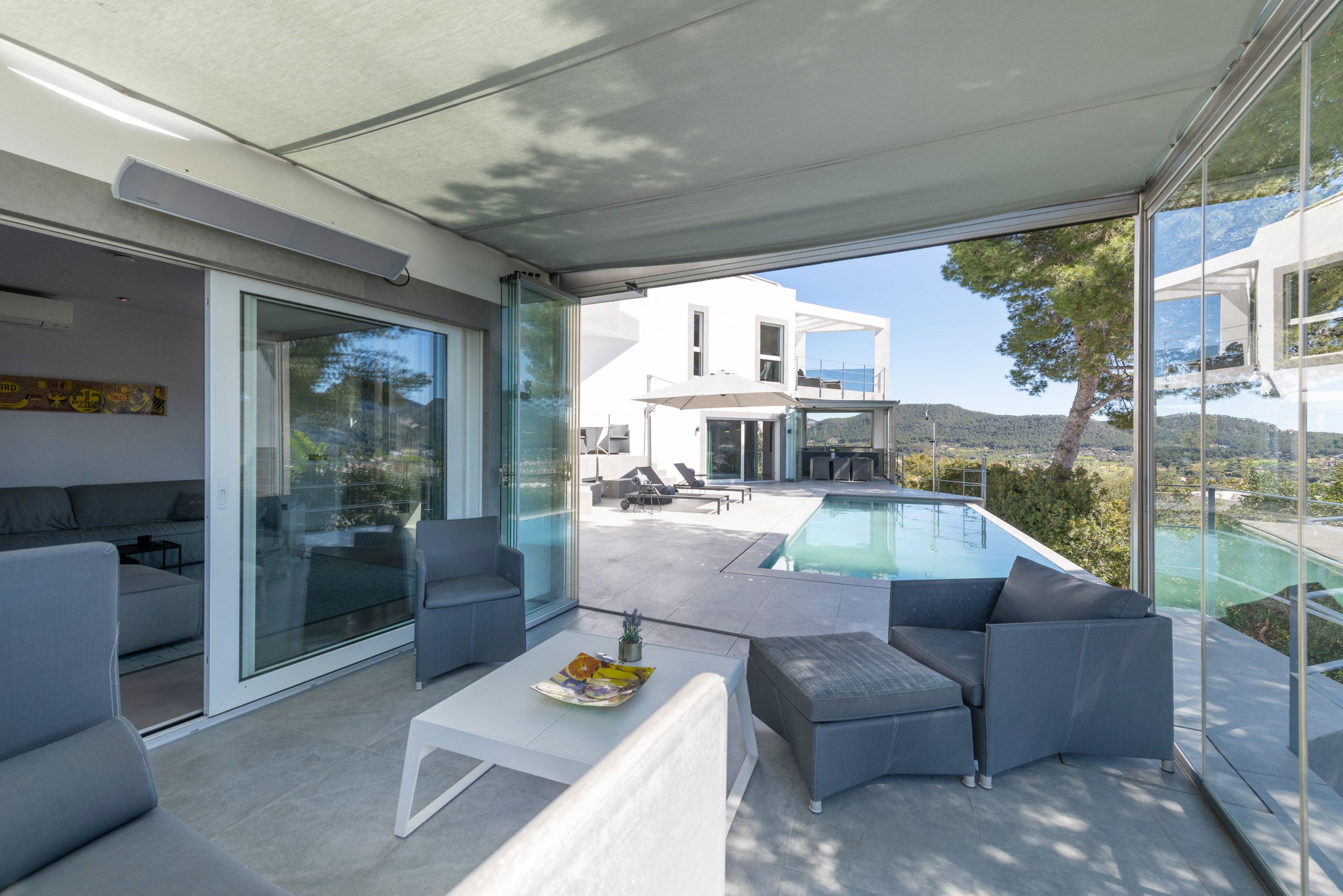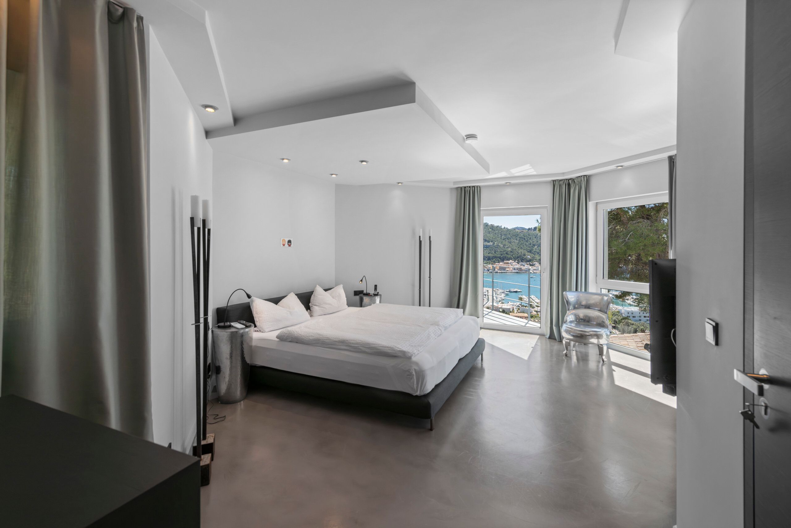 Aquesta vila de disseny a Port Andratx es troba en un vessant orientat al sud per sobre del Club de Vela i ofereix meravelloses vistes al port. A la planta baixa hi ha un ampli saló amb xemeneia, una cuina oberta amb accés al menjador a l'hivernacle i una cuina a l'aire lliure, dos dormitoris amb banys en suite, una neteja i una zona de piscina amb terrassa i zona d'estar coberta. A la planta superior es troba la zona principal amb un ampli dormitori, bany en suite, vestidor i terrassa privada amb vistes al mar. Dos dormitoris més, cadascun amb la seva pròpia cambra de bany, completen aquesta planta. Al soterrani hi ha una sala de fitness, una sauna, un safareig i un traster. Aquesta casa ofereix totes les comoditats per a una vida còmoda i moderna en una de les zones més cobejades de Mallorca. El club nàutic i el costat de Port d'Andratx amb tendes, bars i restaurants estan a poca distància. La ubicació ofereix total privacitat i vistes parcials al port d'Andratx i al mar.
