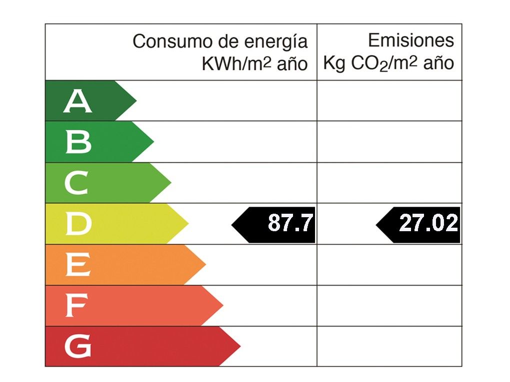 Any de construcció: 1998 • Valor de consum energètic: 87.76 kWh/(m2*a) • Emissions CO2: 27.02 kg/m2 • Escala de Emissions de CO2: D • Tipus de calefacció: Gasoil • Classe d'eficiència energètica: D