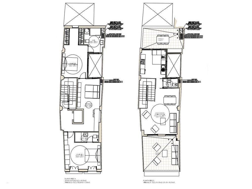 Aquest àtic dúplex de 165 m2 sense moblar està situat en un edifici històric completament renovat al costat de l'emblemàtic Passeig del Borne, en el cor de Palma. La propietat es distribueix en el nivell superior, que és molt lluminós, amb un saló/menjador obert i amb un tercer dormitori incorporat que també pot usar-se com a oficina o vestidor i una terrassa molt àmplia amb privacitat. Al costat es troba la cuina moderna de DICA totalment equipada, que dóna accés a una de les terrasses on es pot gaudir del sol del matí. En aquest nivell també trobem una neteja de cortesia per als convidats. Els dos amplis dormitoris, ambdós amb banys en suite i armaris encastats, es troben una planta més avall, conjunt amb un rebedor que podria ser utilitzat com a segon saló o oficina. Els materials són d'alta qualitat com a sòl de ceràmica, pedra Porcelanosa, finestres climalit i aire condicionat. Les finestres grans, els detalls de pedra de mars i detalls de caràcter mallorquí es combinen per crear un ambient elegant i acollidor. L'ascensor amb accés directe a la propietat, culmina aquesta oferta per a aquells que desitgen gaudir del més alt confort en ple centre de Palma.