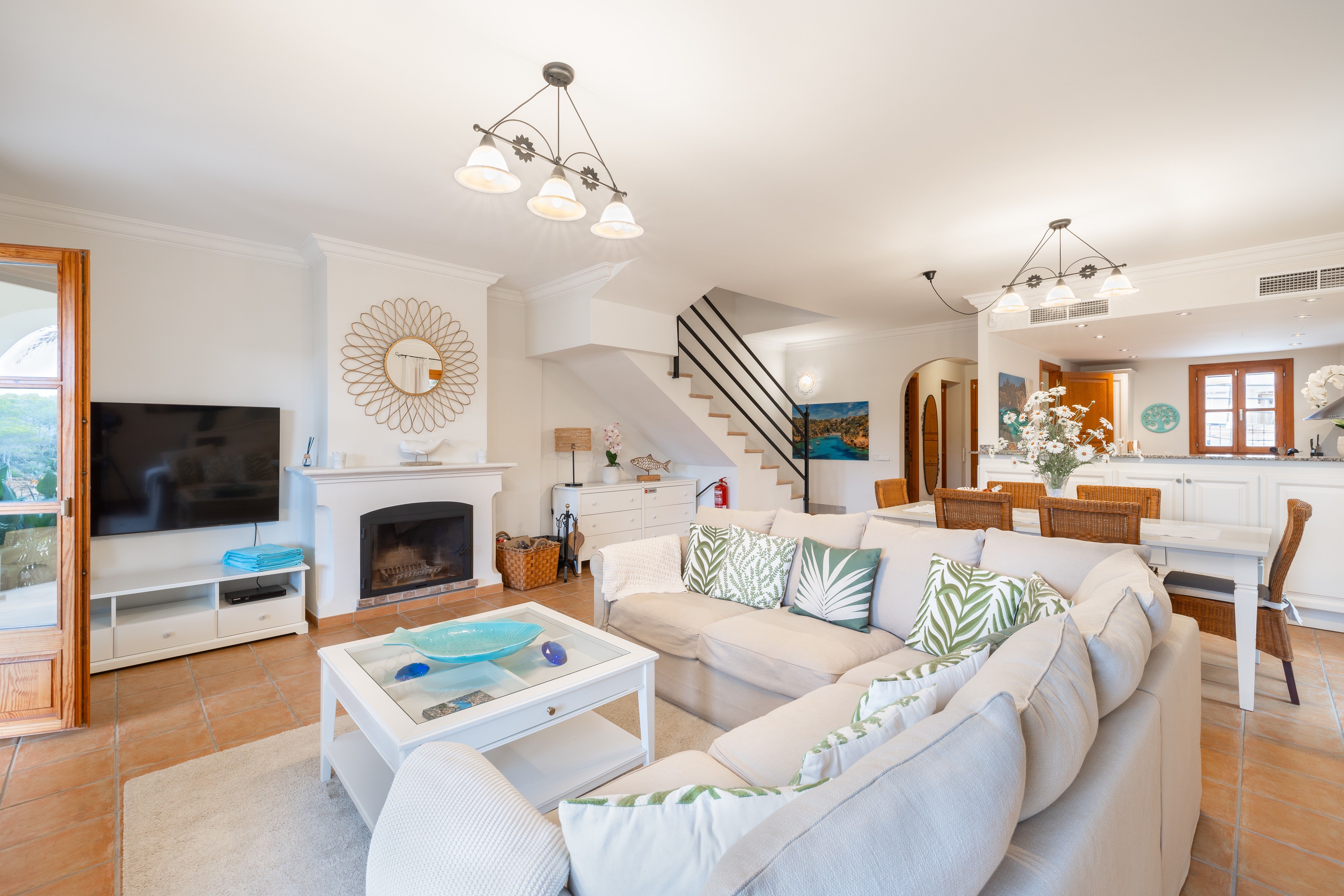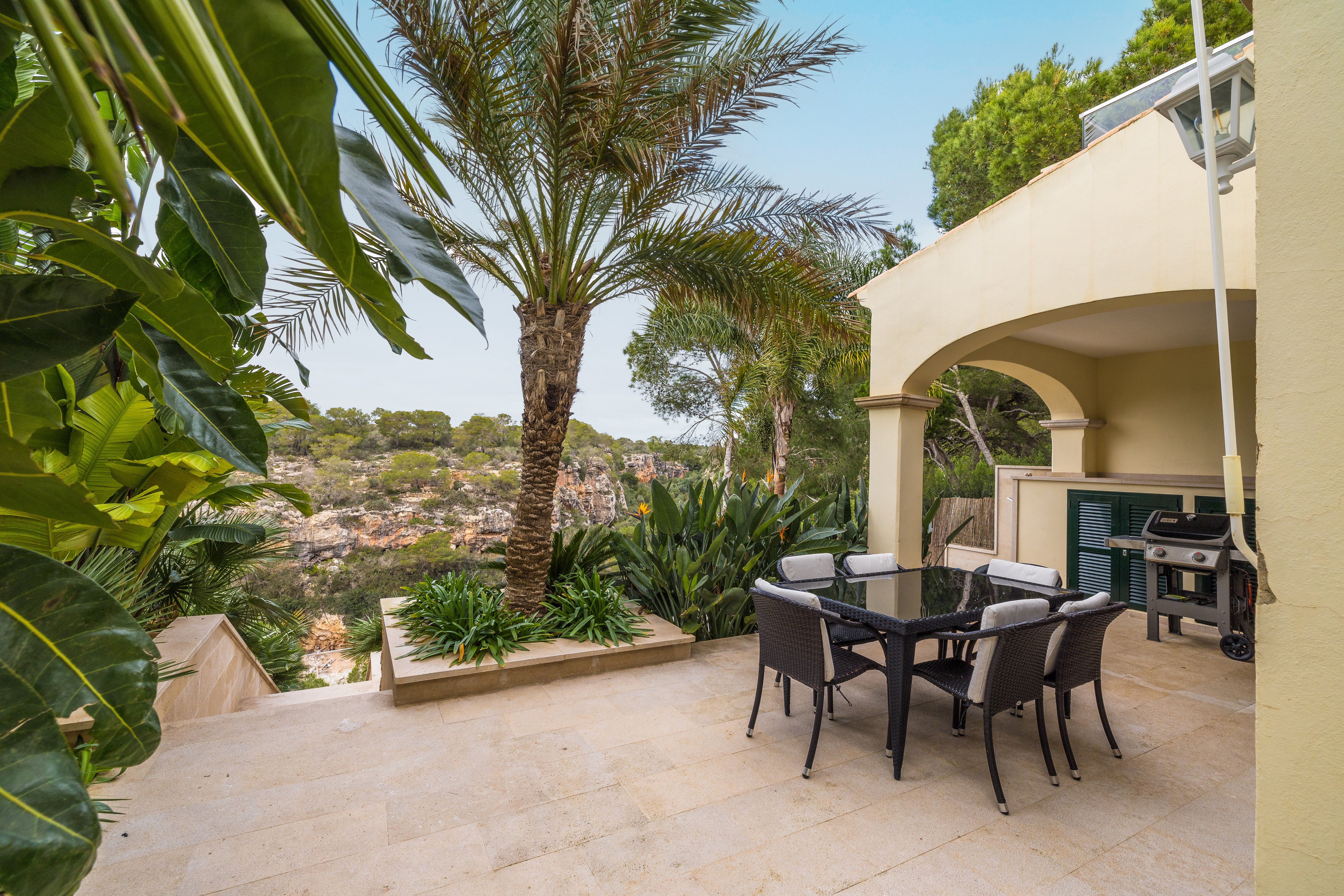 Aquest encantador aparellat mediterrani, situat sobre la pintoresca badia de Cala Pi, compta amb vistes increïbles a la platja i es troba a dos passos. A més, disposa de llicència de lloguer vacacional (ETV), la qual cosa ho converteix en una excel·lent oportunitat d'inversió. L'ampli i lluminós xalet es distribueix en dues plantes. A la planta baixa, trobem un saló-menjador de concepte obert amb xemeneia, que connecta directament amb la terrassa, creant un espai ideal per gaudir de l'exterior. La cuina, també oberta, inclou una pràctica barra americana, mentre que una condícia per a convidats i una bugaderia completen aquesta planta. A la planta superior, s'ubiquen dos còmodes dormitoris que comparteixen un bany i el dormitori principal, que destaca pel seu vestidor, bany en suite i una terrassa privada amb vistes impressionants. Totes les habitacions estan equipades amb aire condicionat fred/calor, garantint confort durant tot l'any. La ubicació privilegiada d'aquesta propietat, a pocs passos del mar, ofereix espectaculars vistes de la badia a través d'un protegit bosc de pins, assegurant un entorn natural. A més, podrà gaudir de les vistes mentre es relaxa en el còmode jacuzzi del qual disposa aquest habitatge. Característiques addicionals: primera línia, vistes al mar, jacuzzi, terrat, jardí, xemeneia, aire condicionat central, bugaderia, pàrking i llicència ETV per a 6.