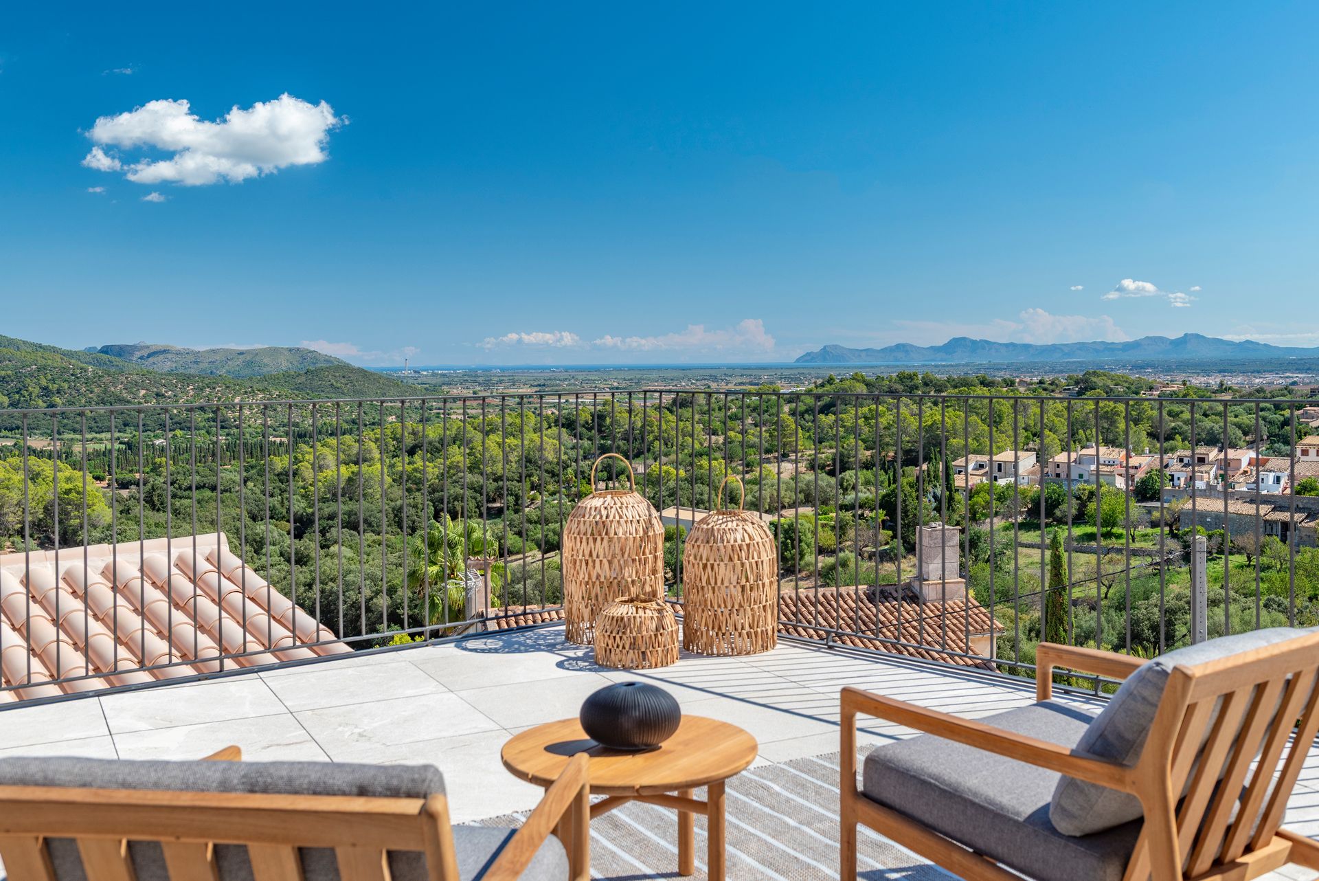 L'àrea de descans alberga tres generoses habitacions dobles, cadascuna amb la seva cambra de bany en suite i accés directe a la piscina. En un nivell superior, es troba la suite amb vestidor i un ampli bany amb dutxa i doble lavabo. Sens dubte, la joia de la corona és la terrassa amb vistes panoràmiques al mar. !Simplement espectacularS Des d'allí també es pot apreciar el poble de Campanet, amb les seves cases de pedra i carrerons, que li donen un toc súper autèntic i encantador. Una àmplia terrassa, amb unes vistes d'infart, perfecta per a desconnectar, gaudir del sol i el bon temps, o passar rats genials amb els seus sers estimats. Un veritable luxeUn