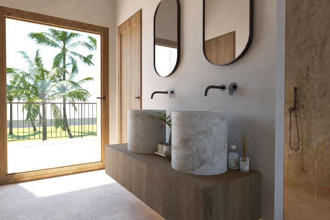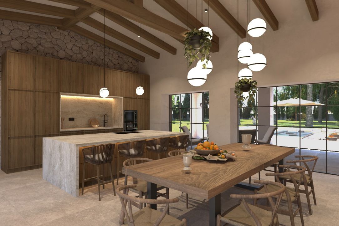 La casa es distribueix en quatre amplis dormitoris i quatre banys. La joia de la casa és el gran saló amb cuina integrada en un ampli espai obert i lluminós envoltat de terrasses que connecten directament amb l'exterior.