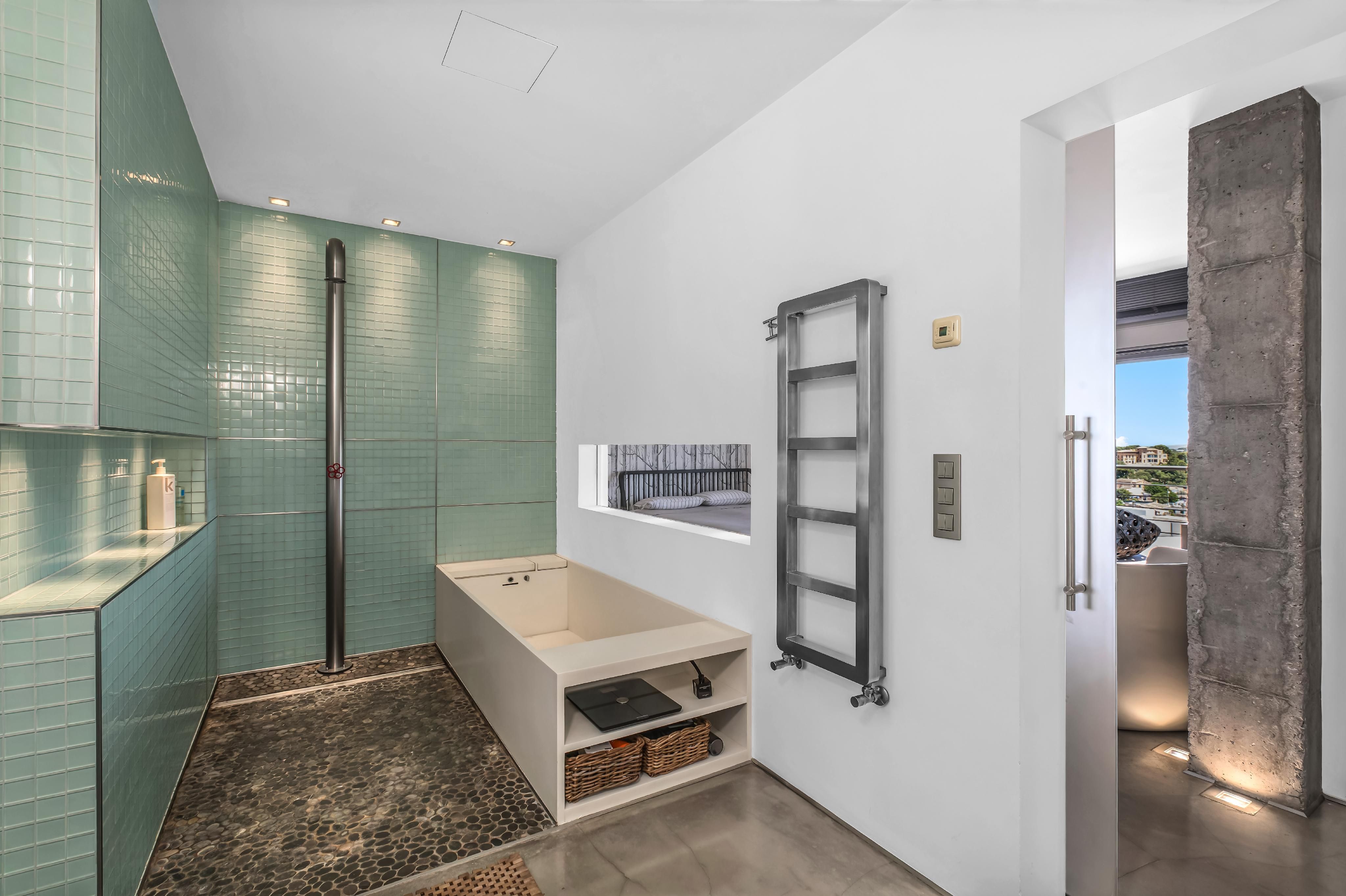Benvingut a Vila C5 - una joia arquitectònica en els assolellats turons de Gènova, el barri residencial més encantador i exclusiu de Palma. Aquí, les vistes espectaculars, l'elegància moderna i l'estil de vida mediterrani es fusionen per crear una llar inigualable. Amb més de 343 m2 d'espai útil, aquesta extraordinària vila ofereix espai per a tot el que fa que la vida sigui bella: àmplies habitacions amb finestres de sòl a sostre que li ofereixen una vista ininterrompuda de 180 bahía, des del Castell de Bellver sobre la badia de Palma fins al mar. Ja sigui esmorzar a la terrassa, prenent una copa de vi a la nit o gaudint d'una tarda de relax al costat de la piscina, la vista al mar l'acompanya cada moment del dia. A la planta superior trobarà una lluminosa sala d'estar, una cuina oberta amb accés a la terrassa, així com un dormitori principal amb vestidor i luxós bany en suite. La planta inferior ofereix altres quatre dormitoris, un elegant estudi, una petita zona de gimnàs privada i un safareig. El jardí mediterrani amb llimoners i tarongers és un oasi de tranquil·litat que envolta la piscina amb coberta de fusta, creant un entorn ideal per prendre el sol, relaxar-se o simplement contemplar el reflex de la llum sobre el mar. La tecnologia sostenible, la calefacció per sòl radiant en tots els banys, la moderna calefacció central amb panells solars i un garatge per a dos vehicles completen aquesta incríble oferta. Aquí viurà en un lloc tranquil però prop de la ciutat -a poca distància del centre de Palma, dels millors restaurants de Gènova i a pocs minuts del mar. Ja sigui com a elegant residència principal o com a luxosa segona residència: Vila C5 és més que una llar - és un estil de vida. Viva de nou la màgia de Mallorca en una vila que no deixa res a desitjar.