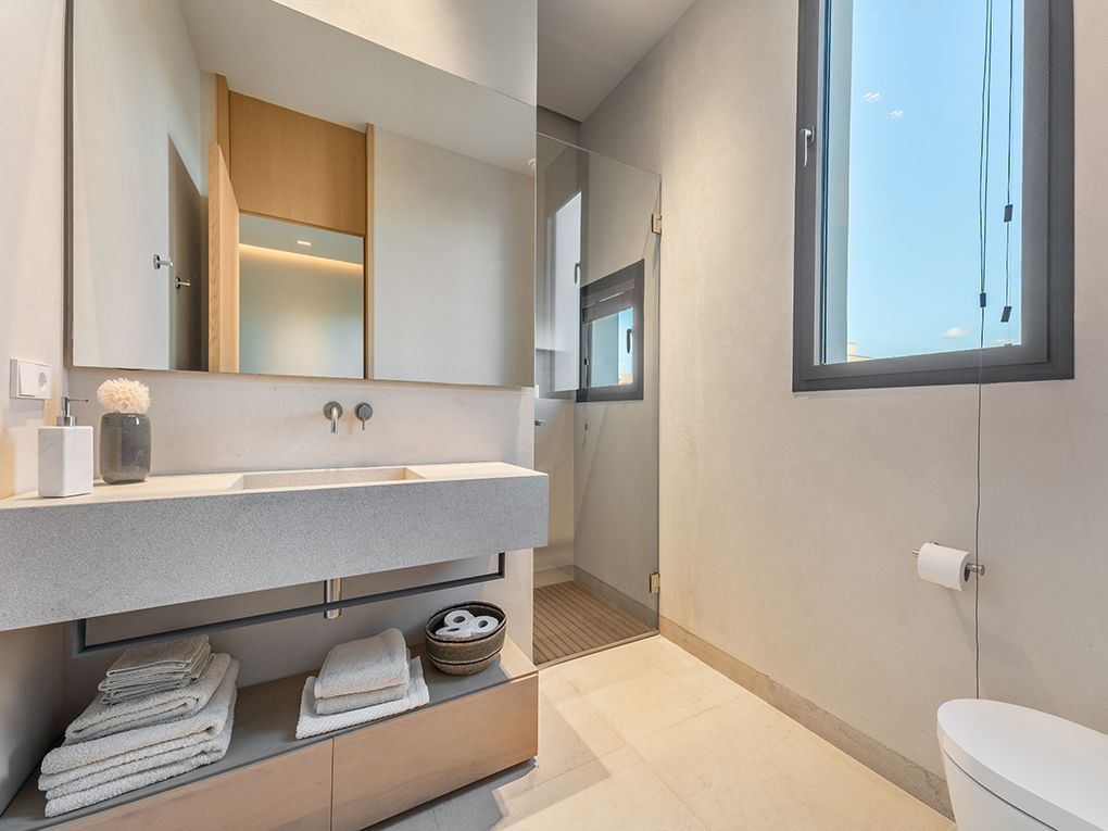 Mar i Cel (Mar i Cel) és molt més que una casa, és un estil de vida. Un projecte exclusiu a Cala Figuera, on l'artesania, la naturalesa i el luxe s'uneixen en perfecta harmonia per crear una veritable obra mestra de disseny i autenticitat. Cada detall ha estat dissenyat amb la màxima cura per oferir confort, qualitat i bellesa en perfecta sintonia amb l'entorn. Inspirat en l'artesania, el natural i l'autèntic, Mar i Cel redefini el concepte de la vida mediterrània contemporània. Els sòls de fusta massissa de roure en els dormitoris, les parets i sostres pintats amb color a calç i els sòls de pedra natural treballats a mà atorguen a cada espai una sensació única de calidesa i puresa. La cuina de luxe, equipada amb els electrodomèstics més moderns, combina funcionalitat i disseny. Les aixetes ICONICO i la fusteria artesanal amb portes sense marc i tancaments magnètics reflecteixen l'amor pel detall que caracteritza tota la casa. El doble envidrament amb càmera d'aire, les finestres oscil·lobatents i corredisses amb perfils ocults, així com la construcció tradicional de maó, garanteixen un excel·lent aïllament tèrmic i acústic, així com la màxima durabilitat. Un ascensor interior connecta còmodament els tres nivells de la casa, proporcionant el màxim confort. A l'exterior, una cuina a l'aire lliure amb zona de barbacoa convida a moments de convivència, mentre que la piscina d'aigua salada s'integra perfectament en l'entorn natural. Les superfícies de guix finament treballades i el revestiment Mortex en els banys i la zona de TV aporten estructura, elegància i un caràcter modern a l'interior. Mar i Cel és el resultat d'una visió: crear una llar que respiri artesania, autenticitat i luxe natural, en un dels llocs més bells de Mallorca.