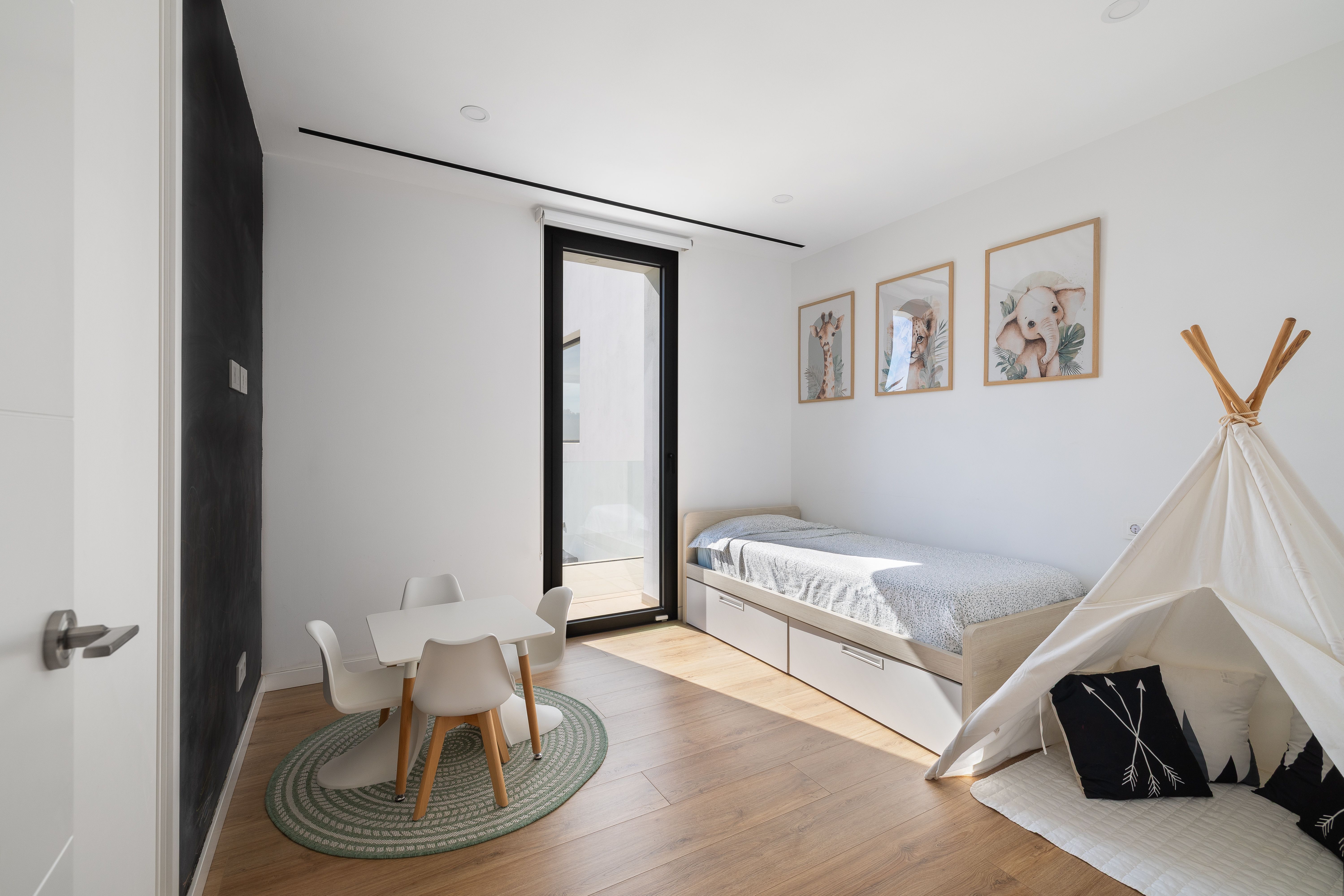 La zona de descans està separada de la zona d'estar per una porta de seguretat, que no sols proporciona seguretat, sinó també tranquil·litat per a un descans reparador. En total hi ha tres dormitoris i dos banys, un d'ells en suite. Cada dormitori disposa d'armaris encastats i accés a un balcó. Per als convidats hi ha una condícia de cortesia situat a la zona d'estar. A més, hi ha una petita oficina a la qual s'accedeix des del saló.